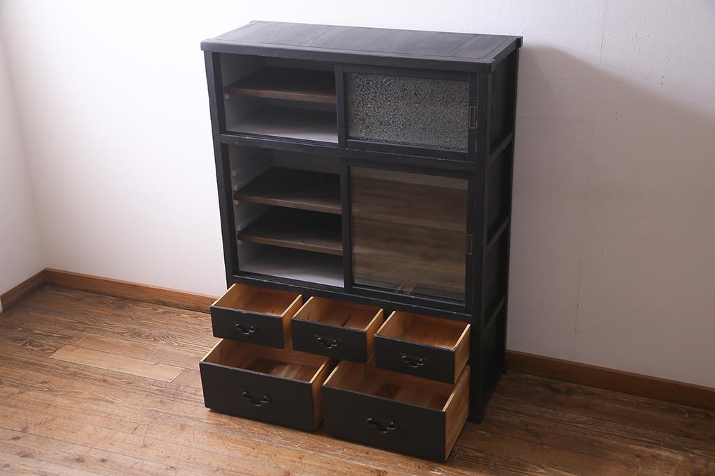 キャビネット・戸棚 > アンティーク家具 和製アンティーク 結霜ガラス入りのノスタルジックなキャビネット(戸棚、収納棚)(R-038266)