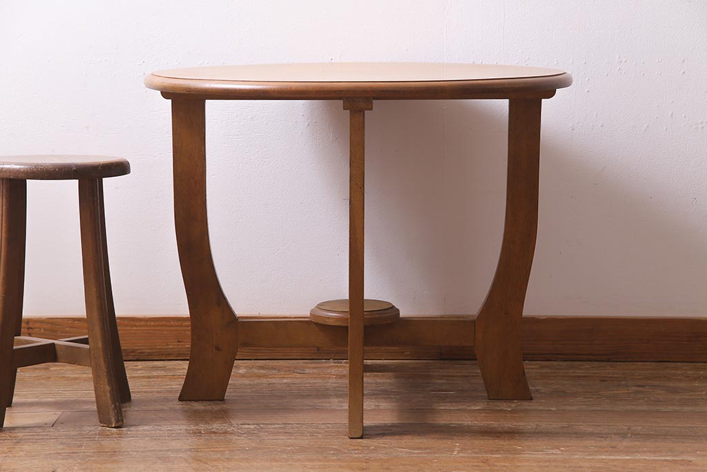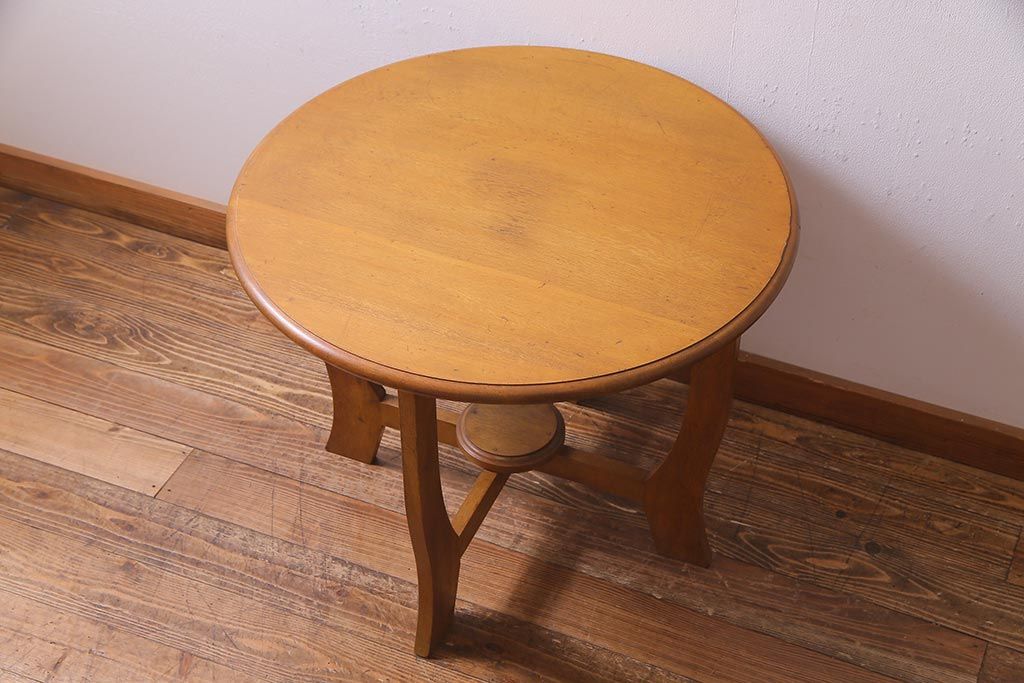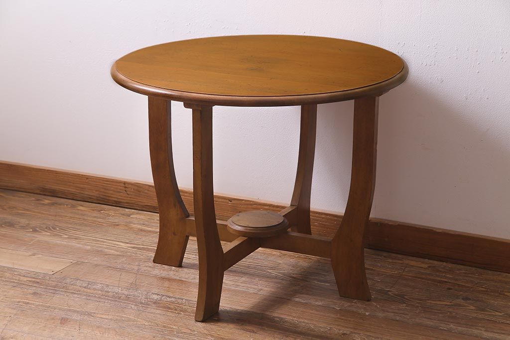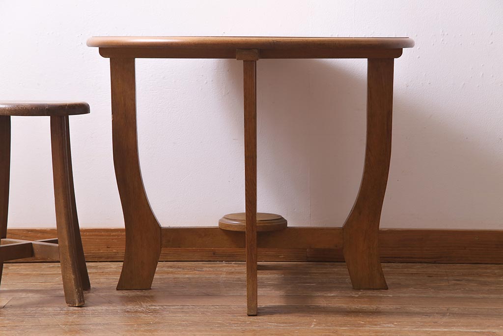 アンティーク家具 ナラ材 レトロなラウンドテーブル(コーヒーテーブル、カフェテーブル)(R-038250)