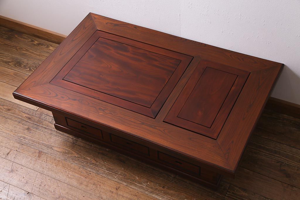 民芸家具 > ビンテージ 総ケヤキ材 四尺 上品かつ重厚感漂う関西長火鉢(木製火鉢、囲炉裏)(R-038243)