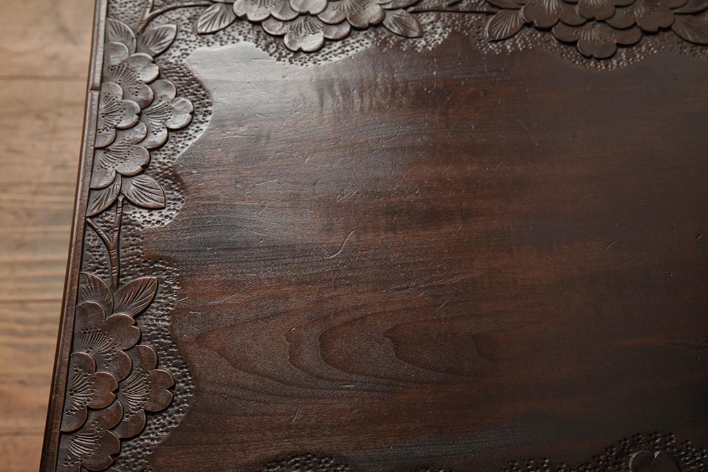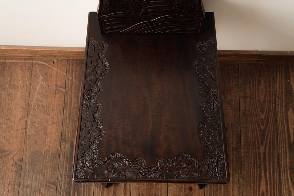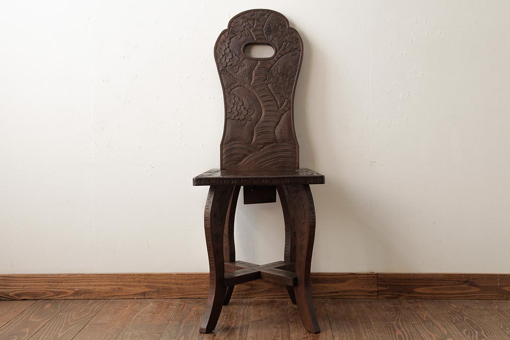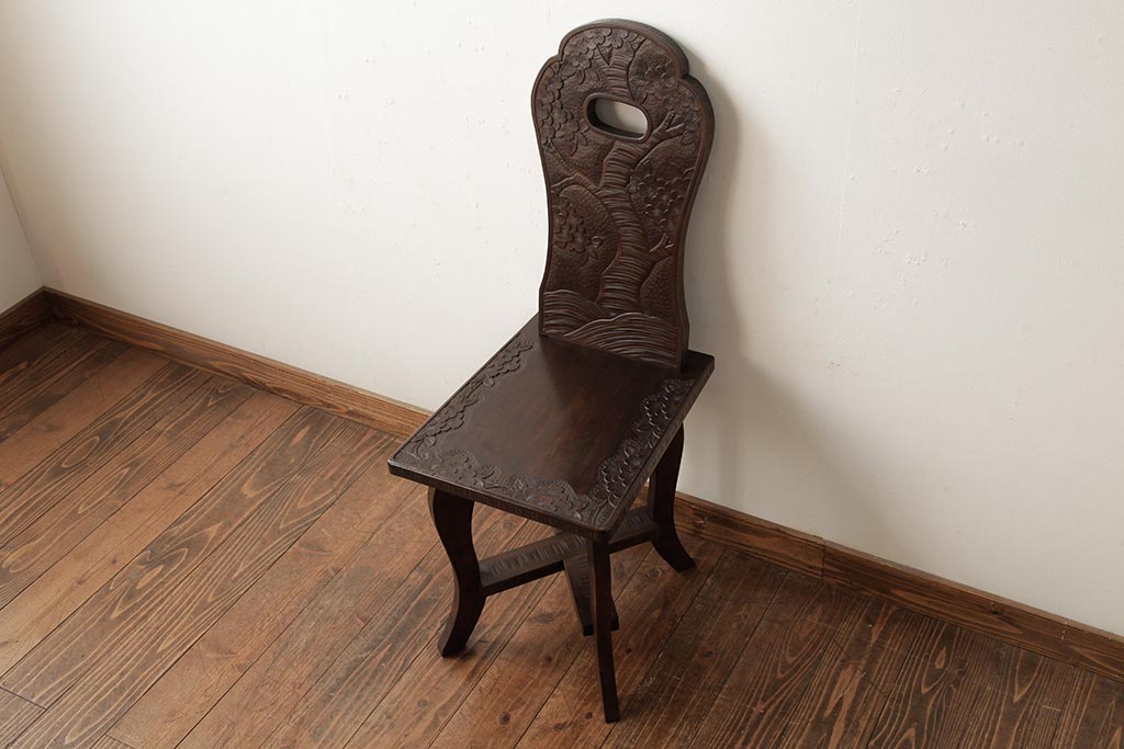 中古 伝統工芸 軽井沢彫り 桜の木の彫刻が印象的なダイニングチェア(椅子、イス)(R-038237)です。