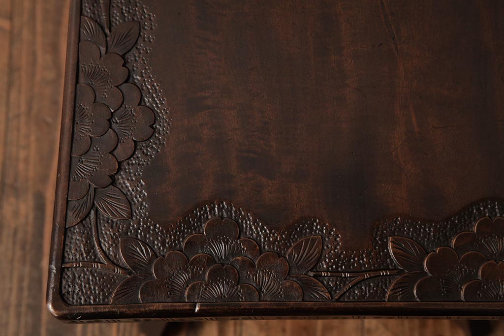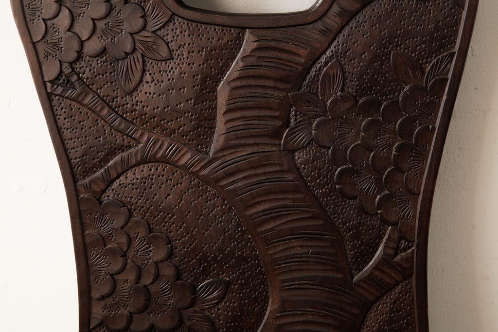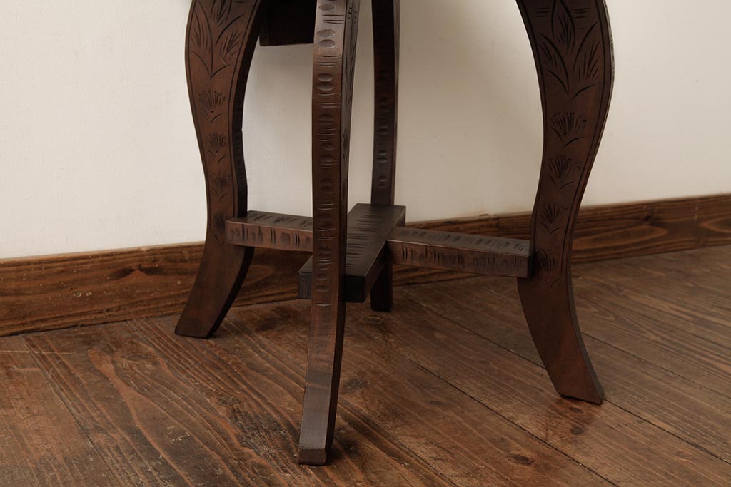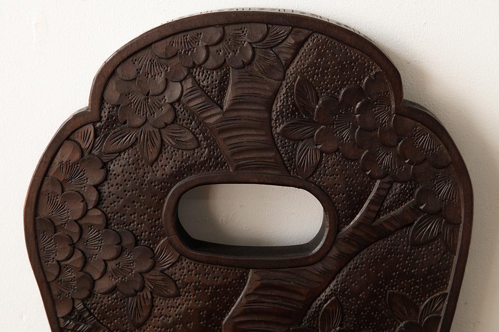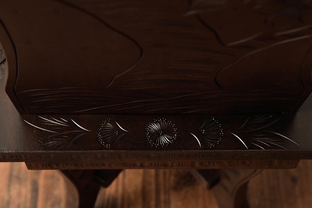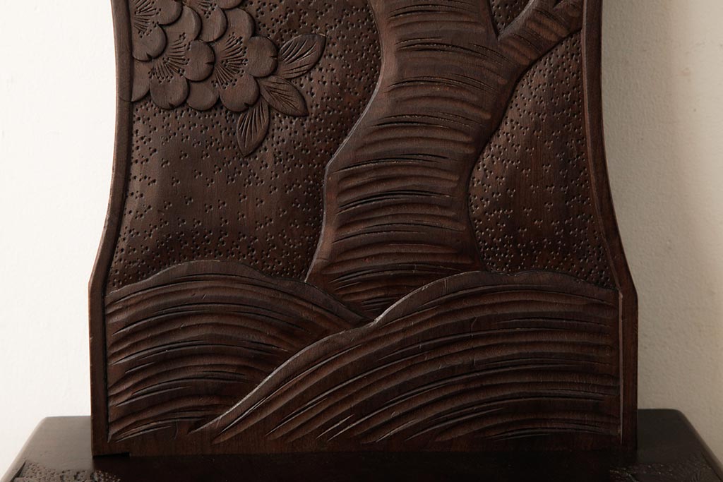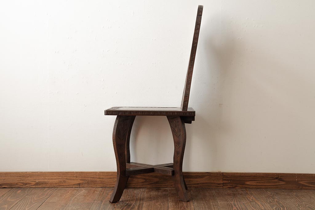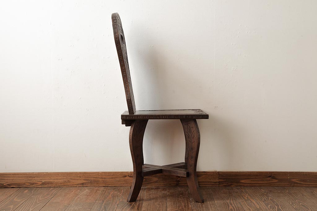 中古 伝統工芸 軽井沢彫り 桜の木の彫刻が印象的なダイニングチェア(椅子、イス)(R-038237)