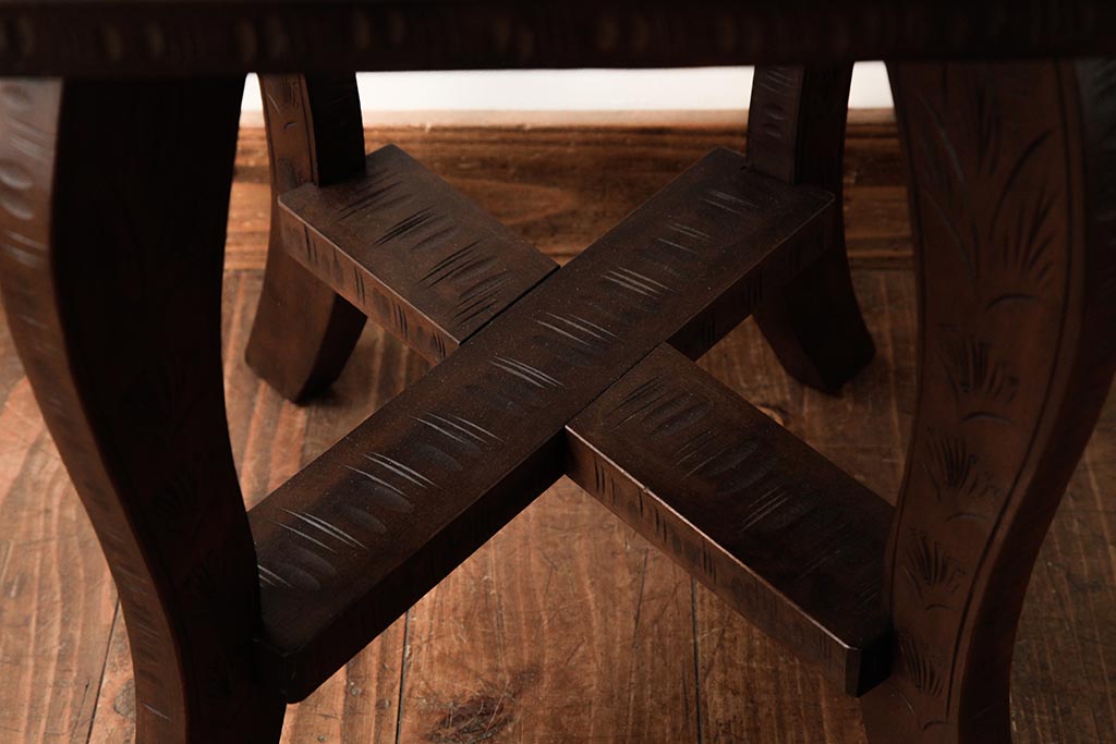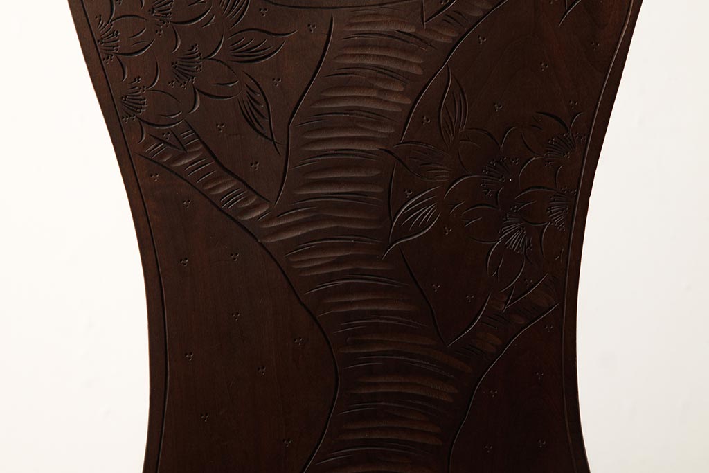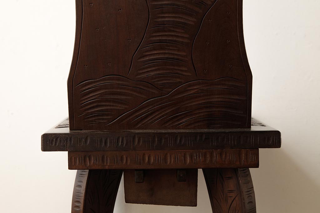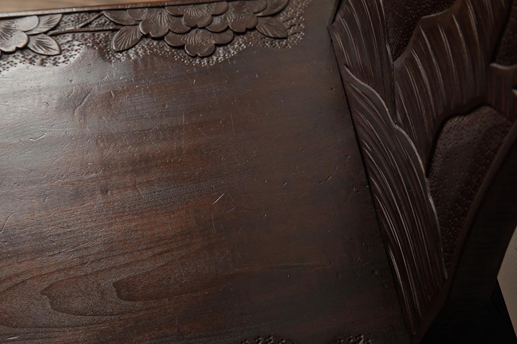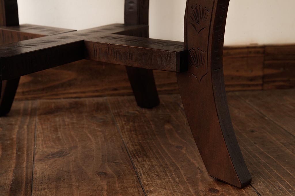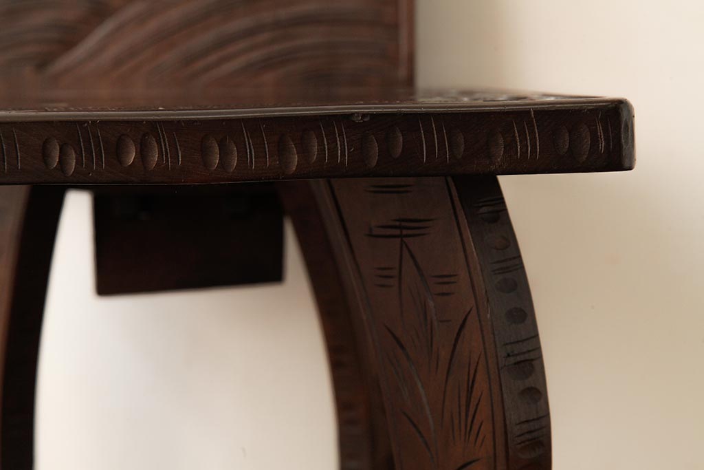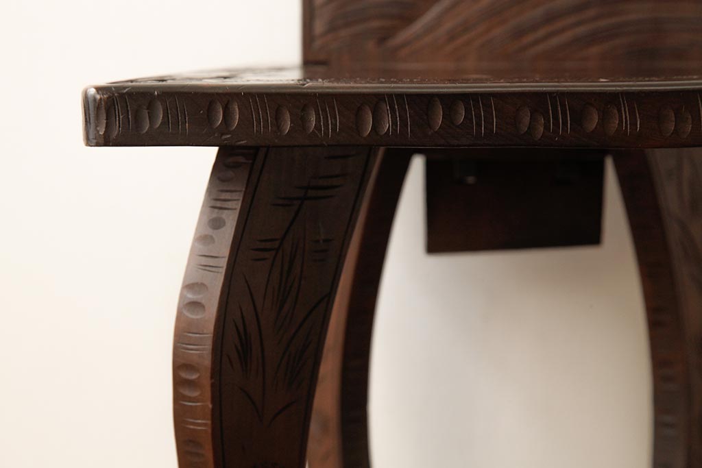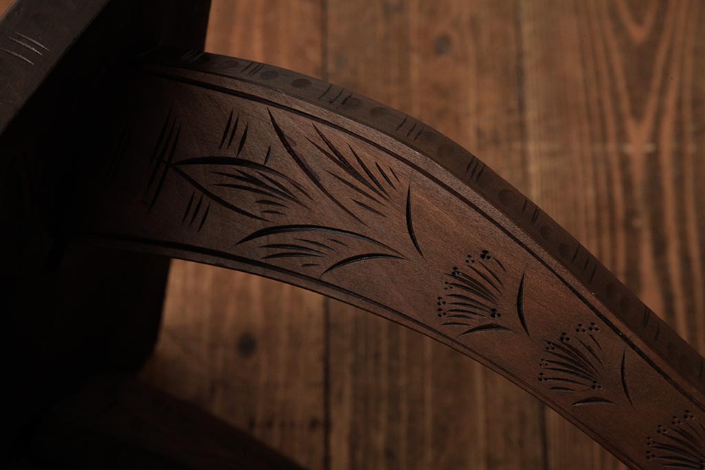 正面から見る背もたれや座面の立体的な彫りはもちろん、