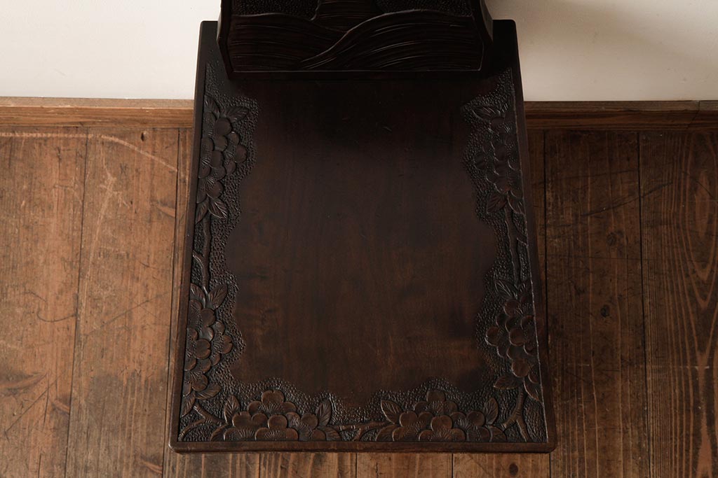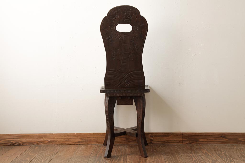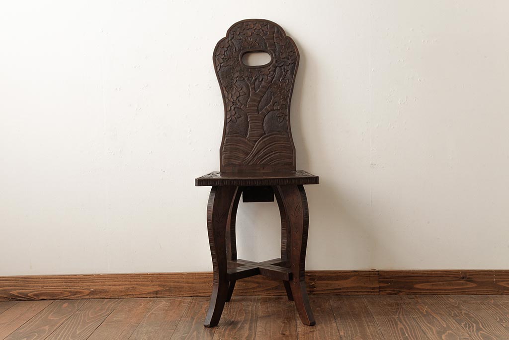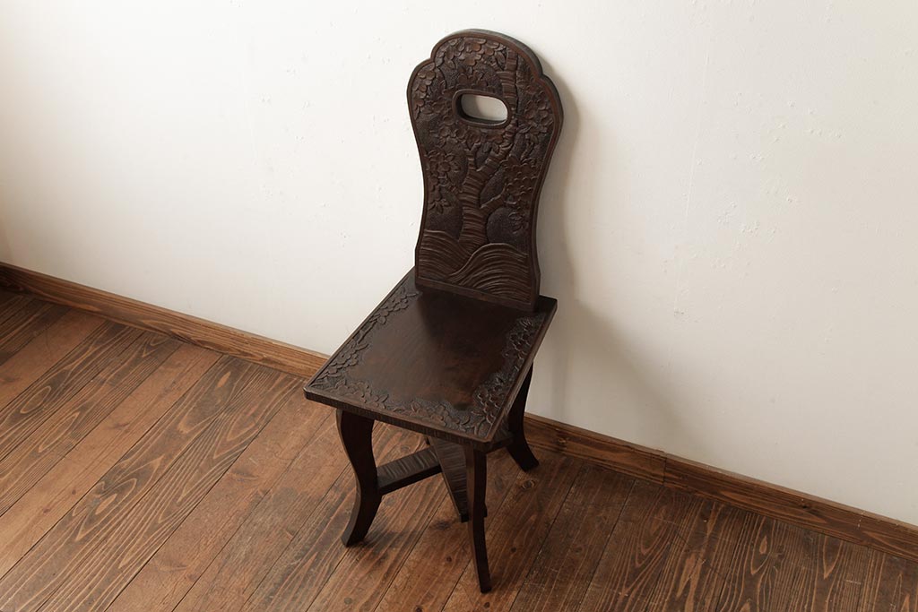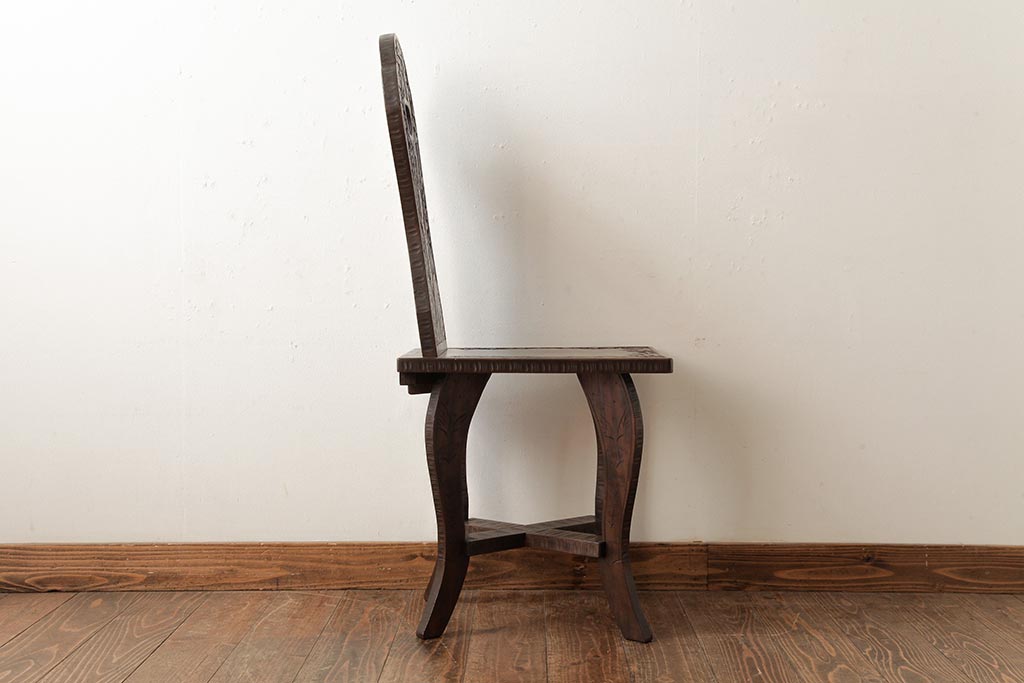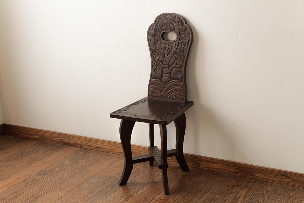 中古 伝統工芸 軽井沢彫り 桜の木の彫刻が印象的なダイニングチェア(椅子、イス)(R-038238)です。