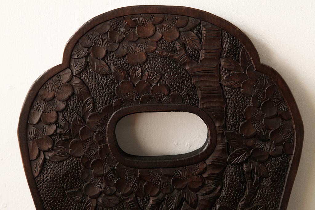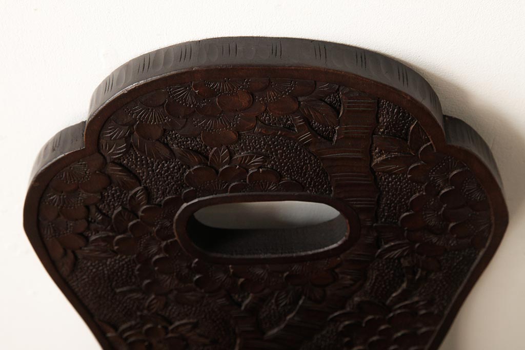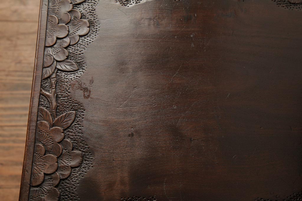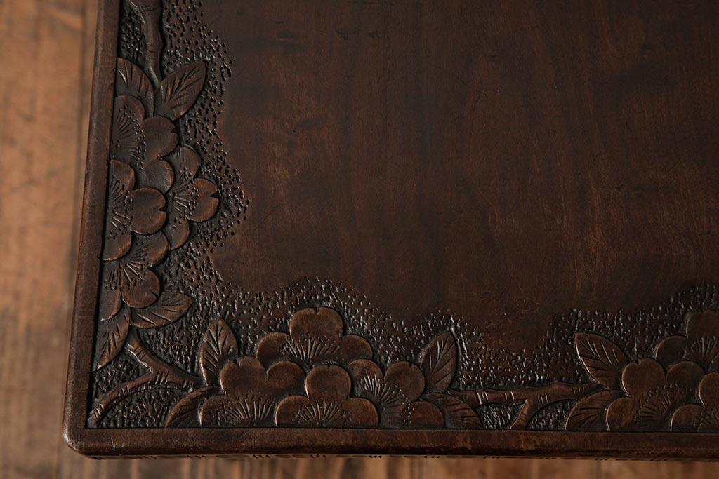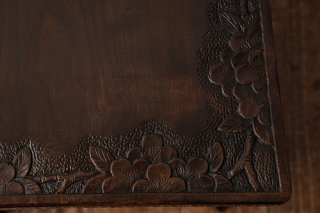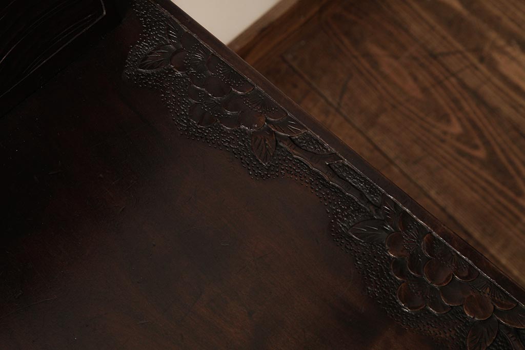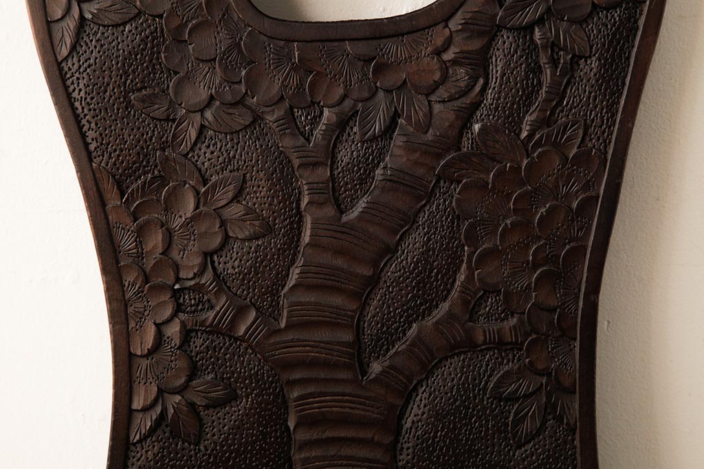 中古 伝統工芸 軽井沢彫り 桜の木の彫刻が印象的なダイニングチェア(椅子、イス)(R-038238)