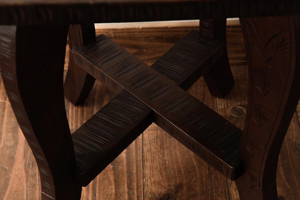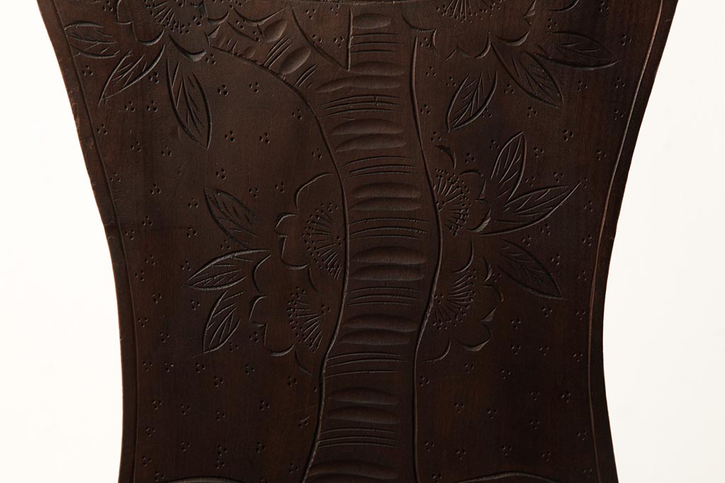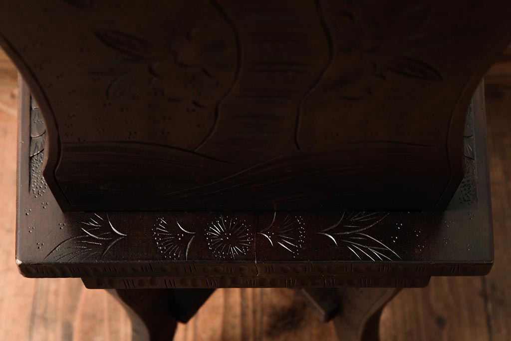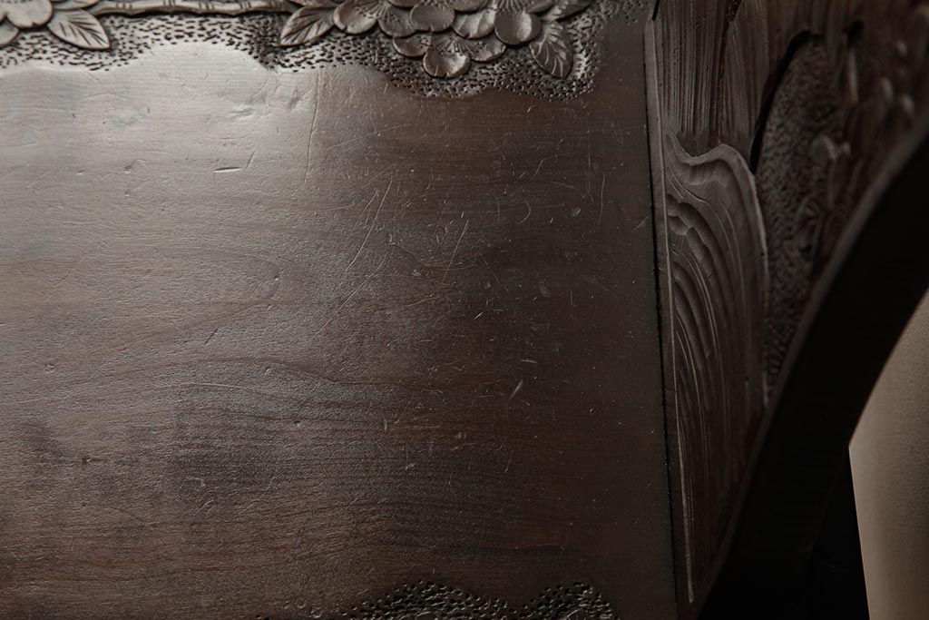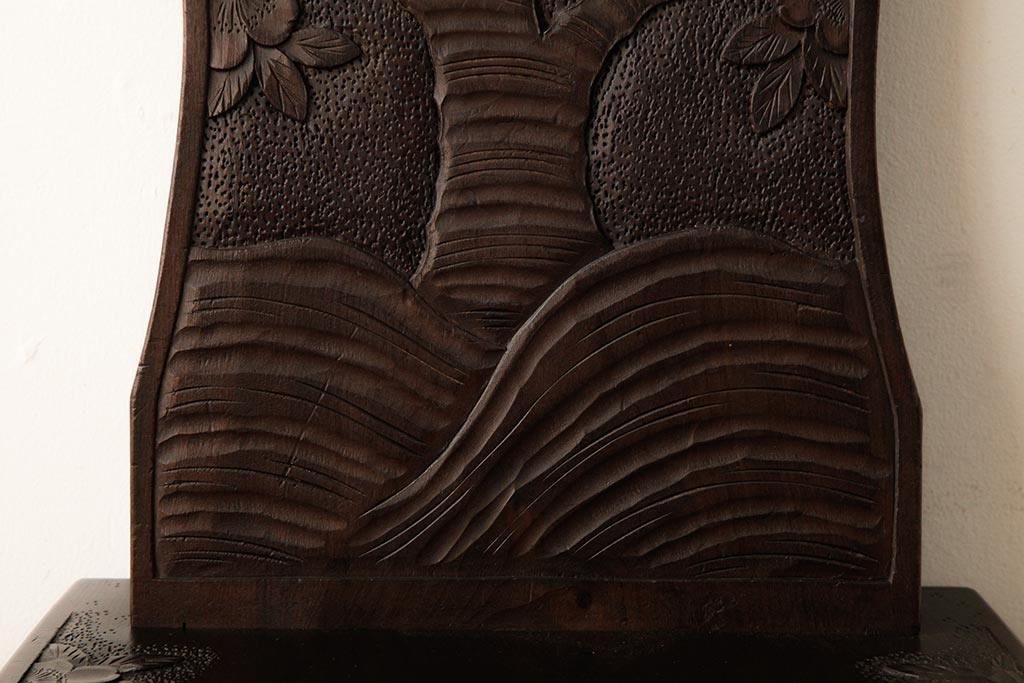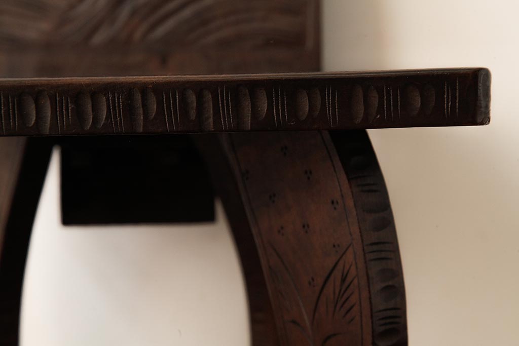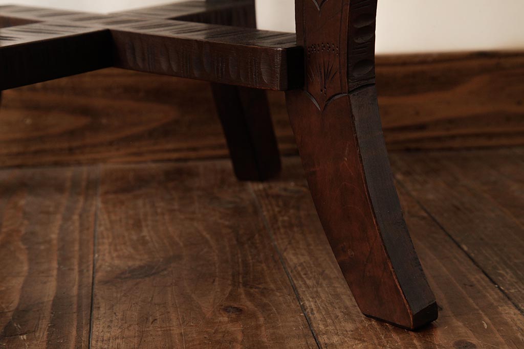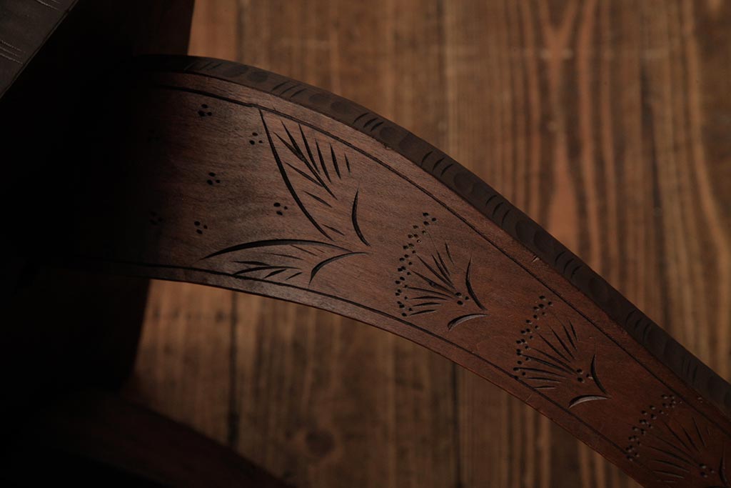 正面から見る背もたれや座面の立体的な彫りはもちろん、