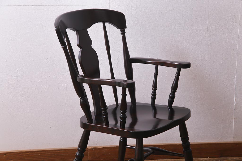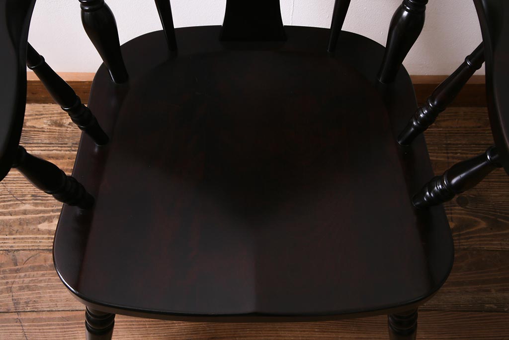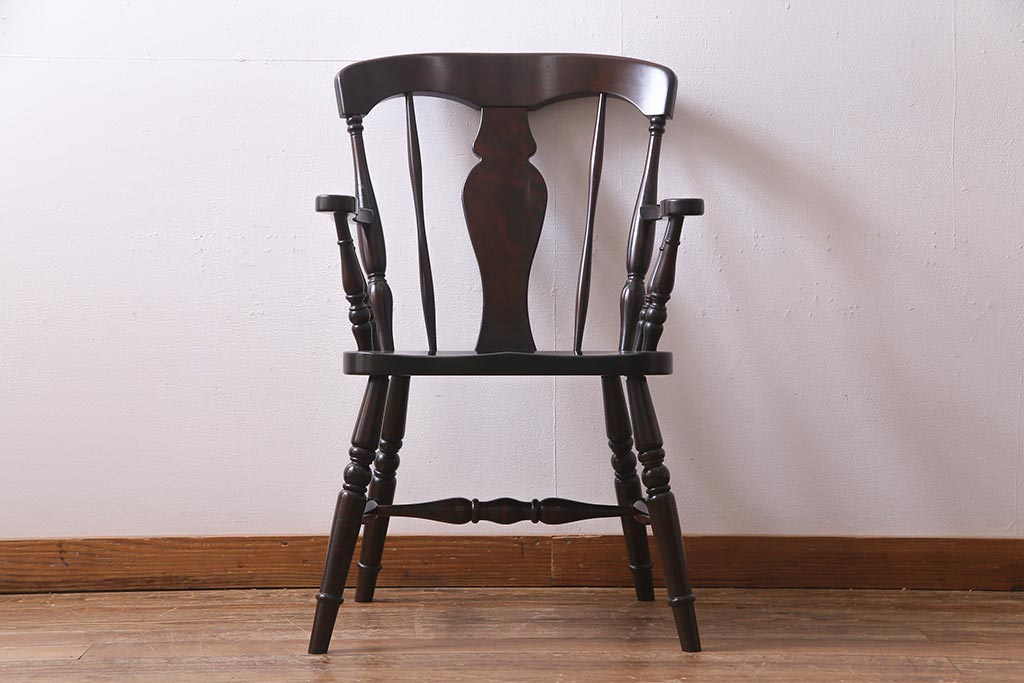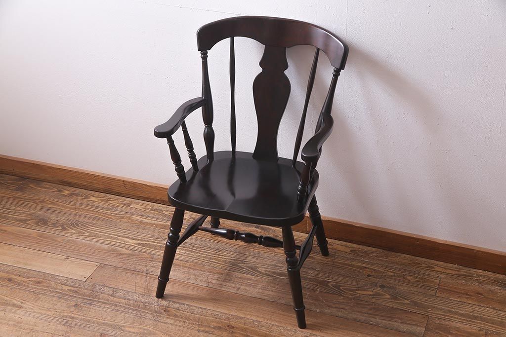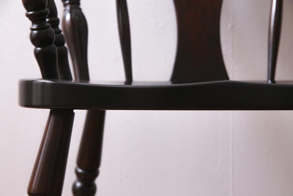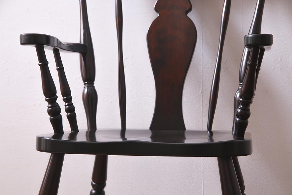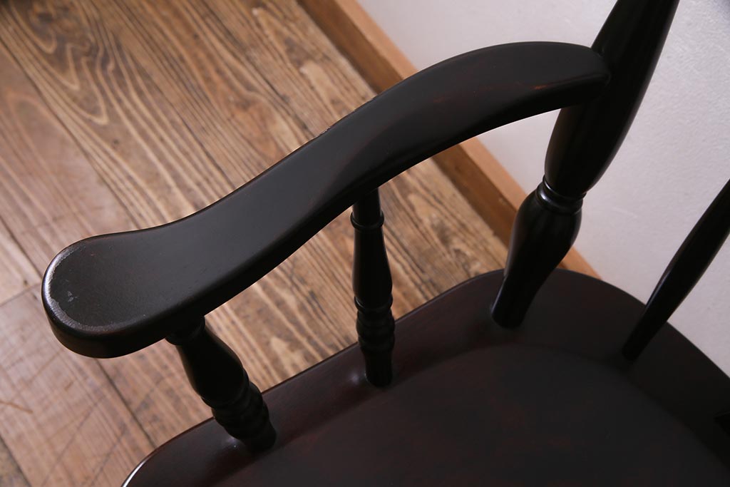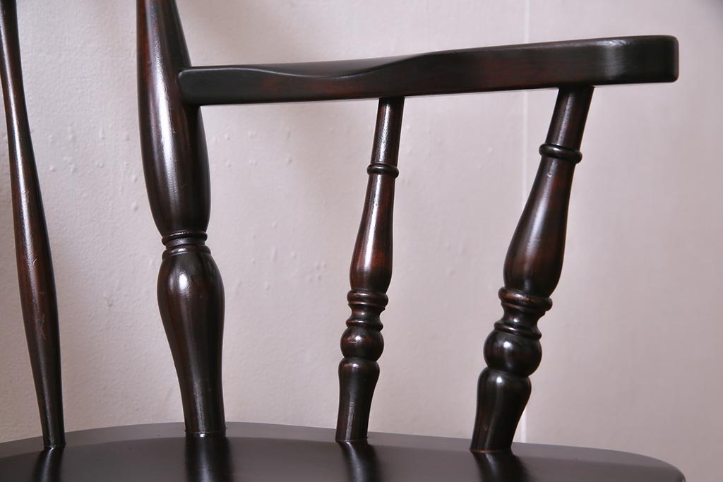 椅子・ベンチ> ダイニングチェア > 中古 北海道民芸家具 上品な雰囲気漂うアームチェア(ウィンザーチェア、ダイニングチェア、椅子、ウインザーチェア)(R-038274)