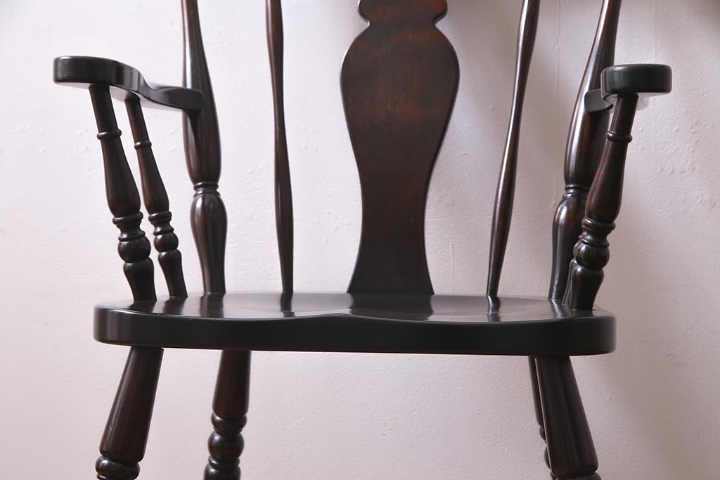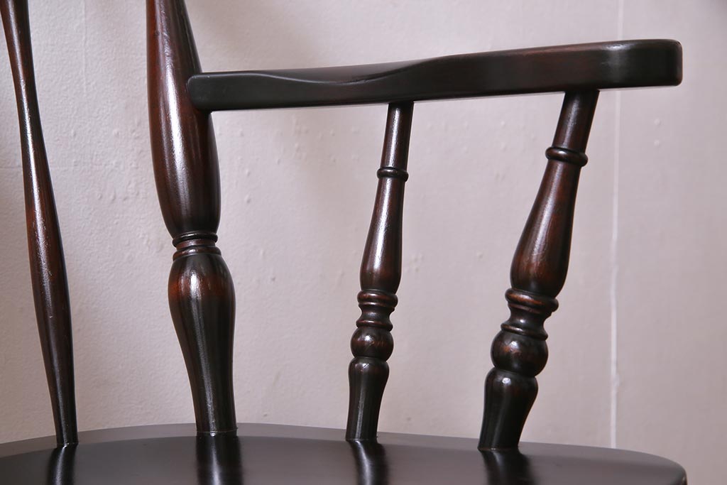 椅子・ベンチ> ダイニングチェア > 中古 北海道民芸家具 上品な雰囲気漂うアームチェア(ウィンザーチェア、ダイニングチェア、椅子、ウインザーチェア)(R-038275)