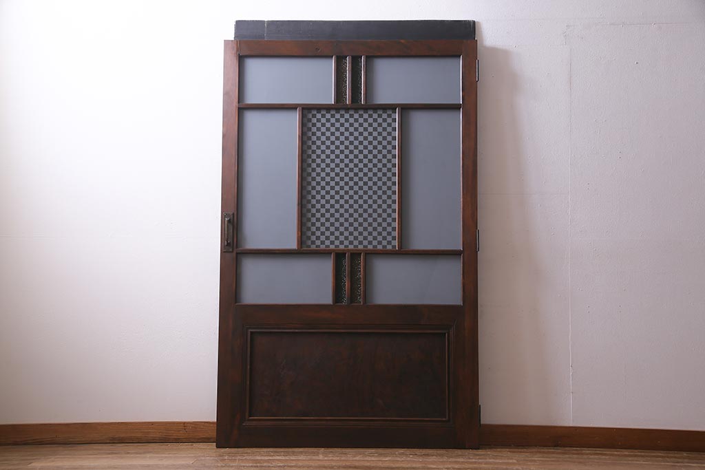 和製アンティーク 大正期 当時物色ガラス・当店オリジナルガラス レトロモダンなガラスドア(建具、扉)(R-038211)