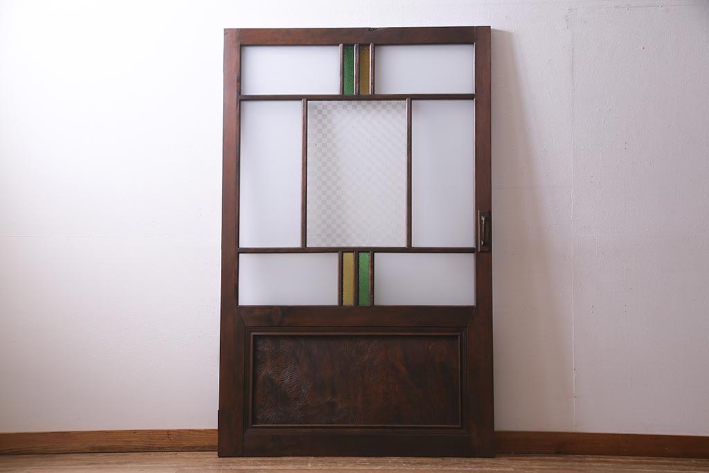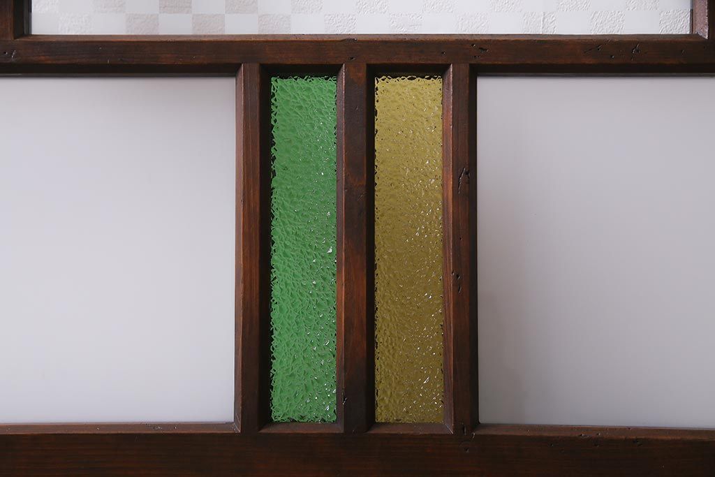 レトロな色合いが魅力的な大正期のガラスドアです。