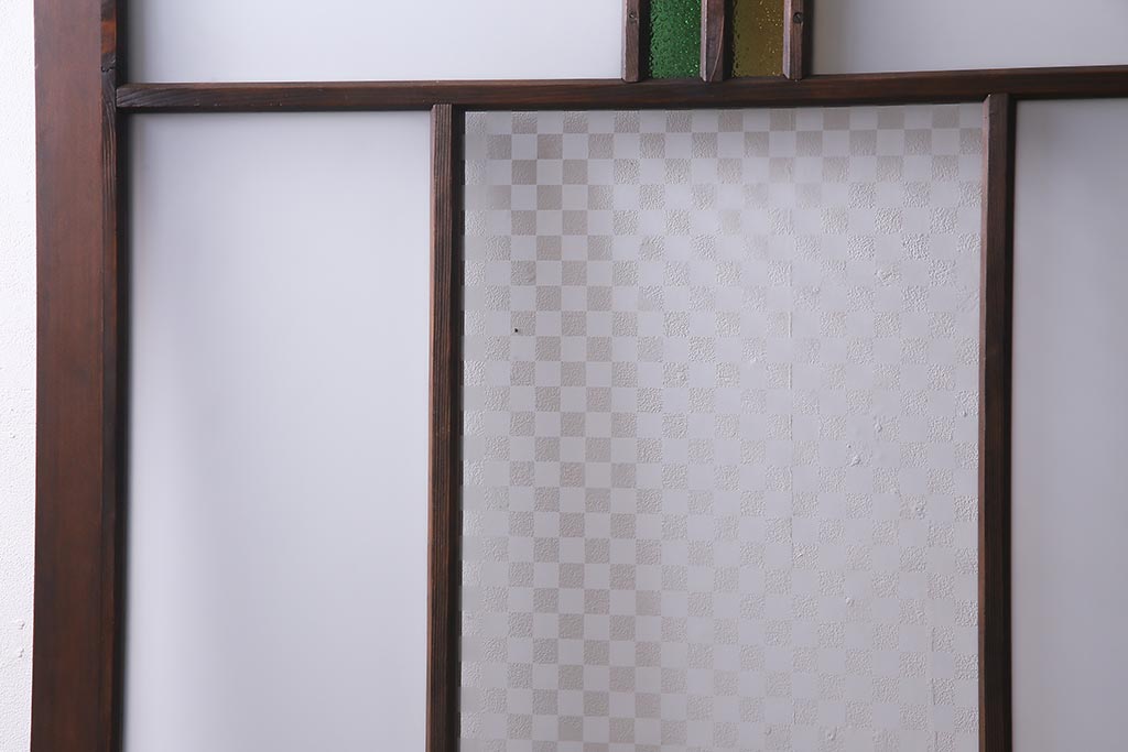 和製アンティーク 大正期 当時物色ガラス・当店オリジナルガラス レトロモダンなガラスドア(建具、扉)(R-038211)です。