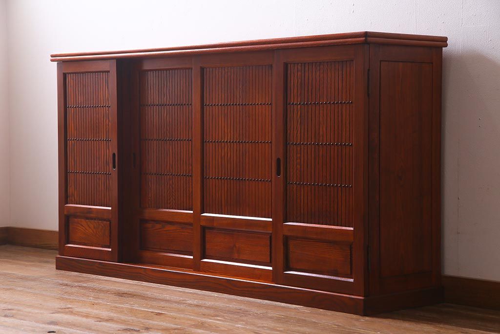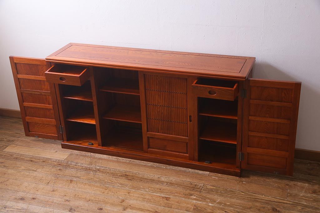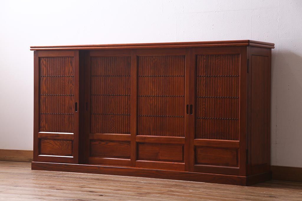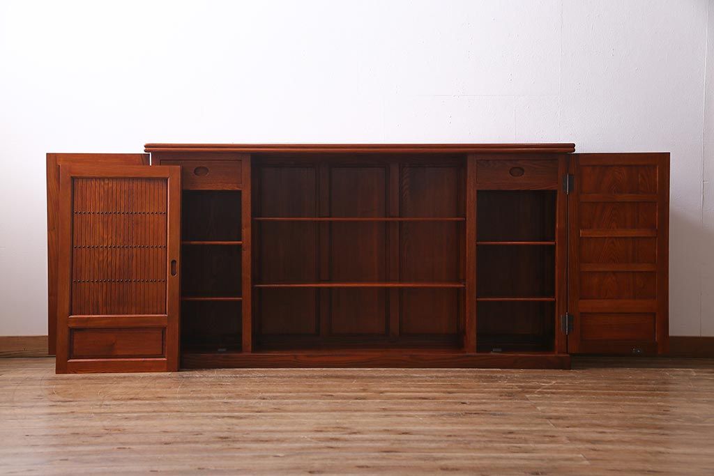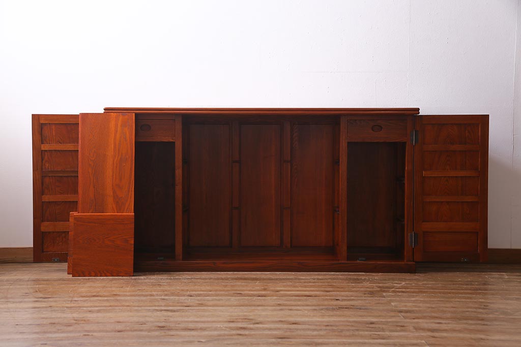 新古品 民芸家具 楡(ニレ)材総無垢 凛とした佇まいが趣ある水屋箪笥サイドボード(収納棚、下駄箱)(R-038290)