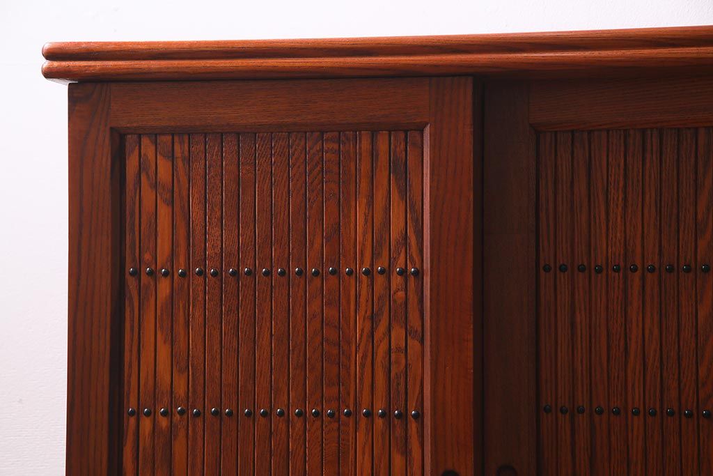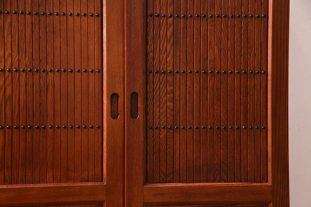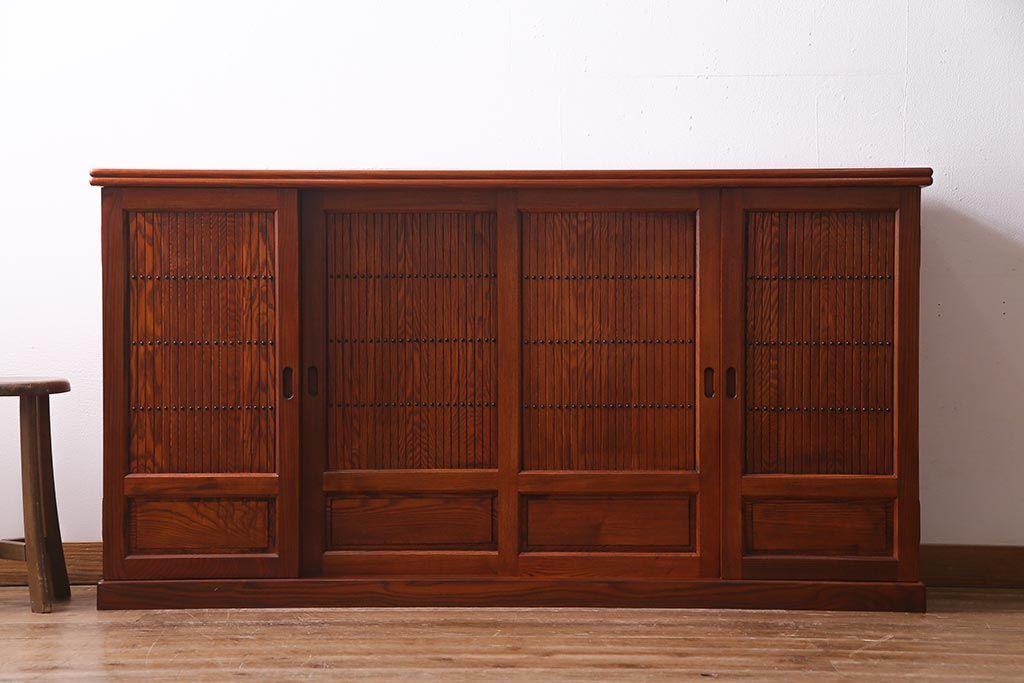 キャビネット・戸棚> 下駄箱 > 新古品 民芸家具 楡(ニレ)材総無垢 凛とした佇まいが趣ある水屋箪笥サイドボード(収納棚、下駄箱)(R-038290)