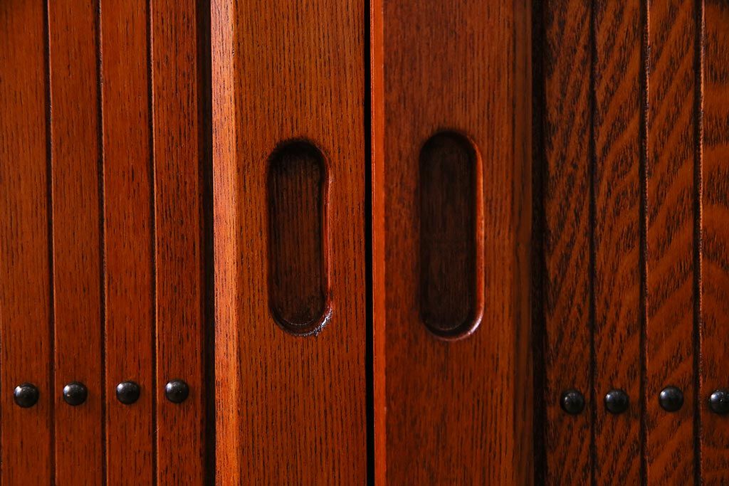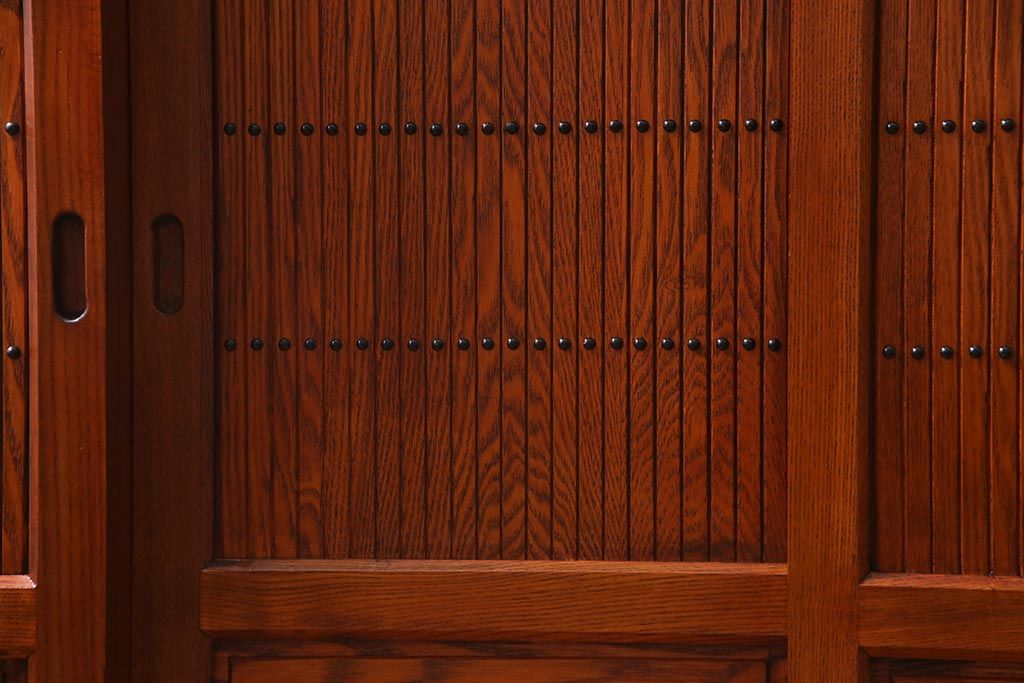 和箪笥 > 新古品 民芸家具 楡(ニレ)材総無垢 凛とした佇まいが趣ある水屋箪笥サイドボード(収納棚、下駄箱)(R-038290)
