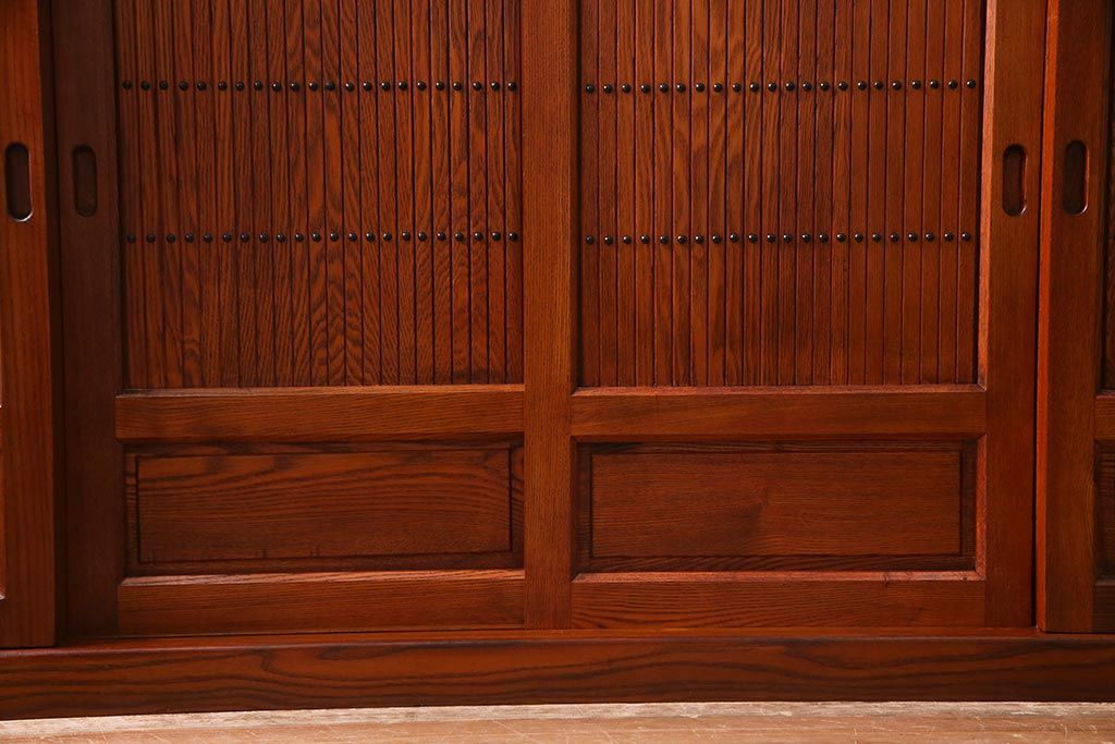 和箪笥> 水屋箪笥 > 新古品 民芸家具 楡(ニレ)材総無垢 凛とした佇まいが趣ある水屋箪笥サイドボード(収納棚、下駄箱)(R-038290)
