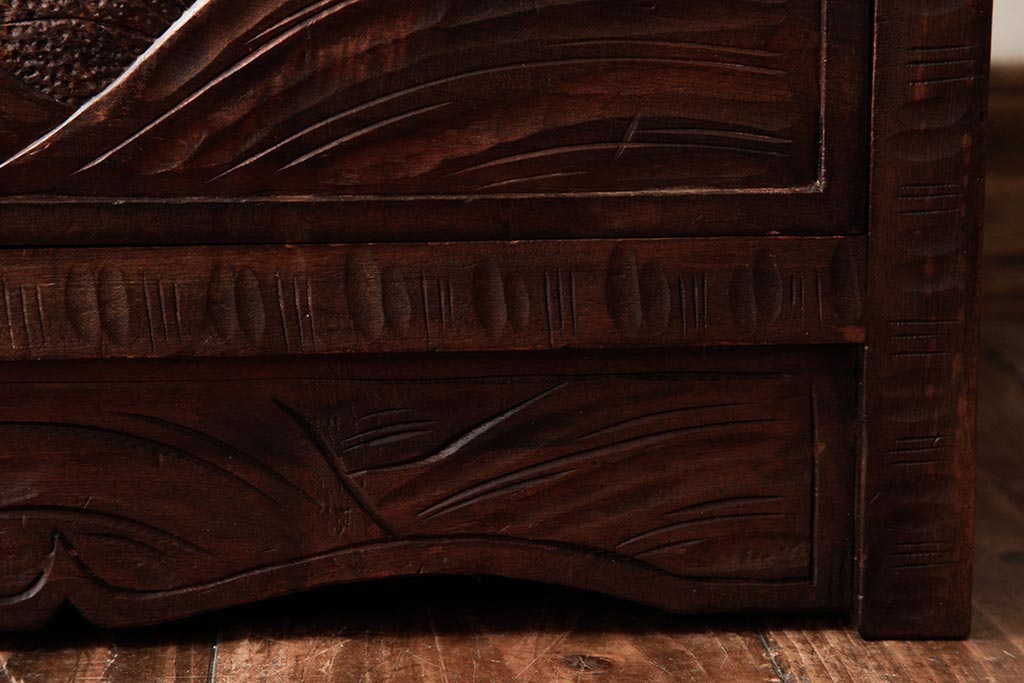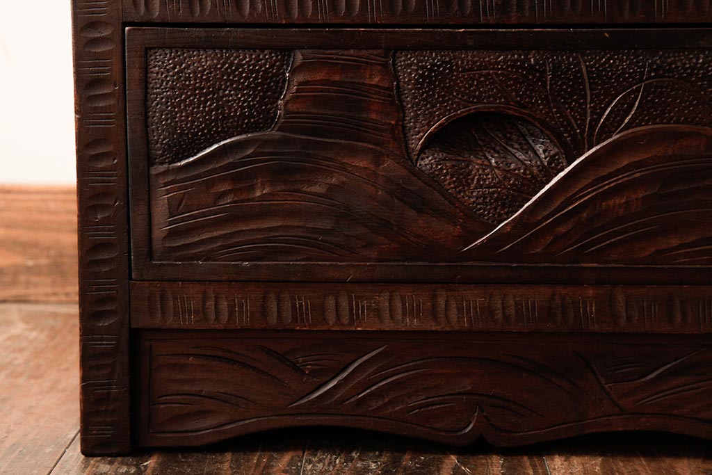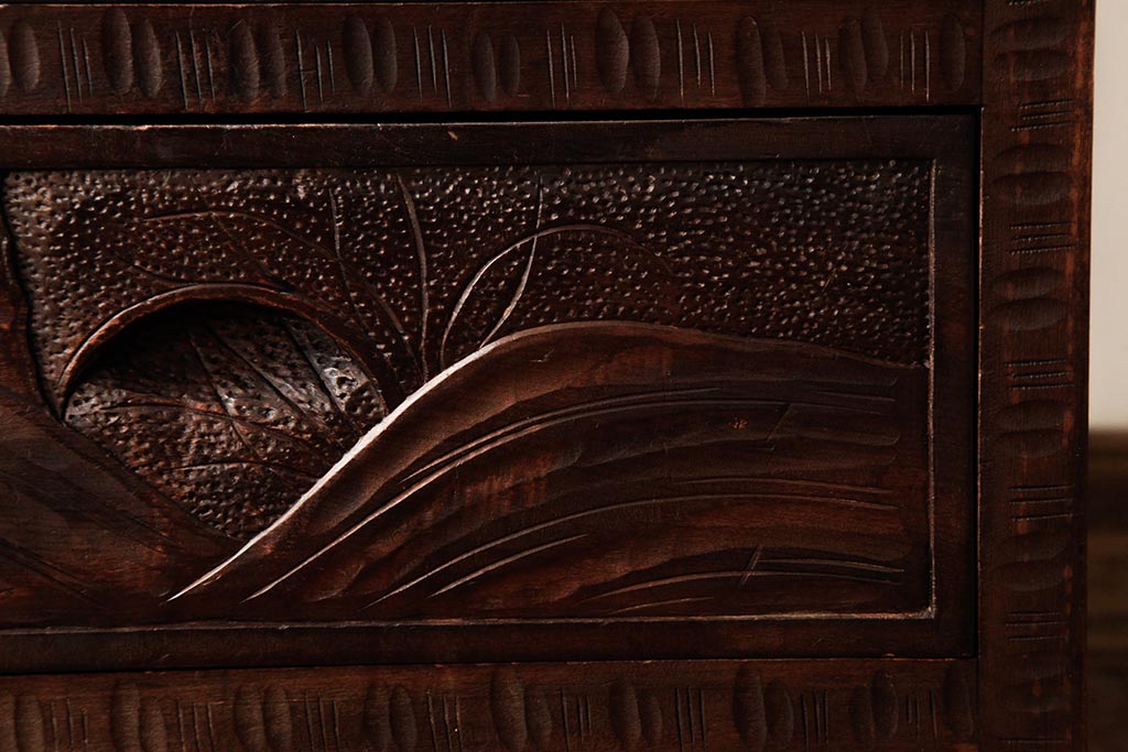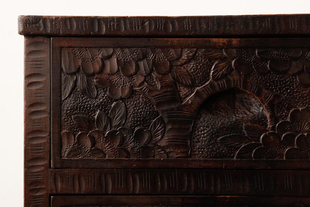 ビンテージ家具 伝統工芸 軽井沢彫り 桜の彫りが優美なチェスト(引き出し)(R-038298)です。