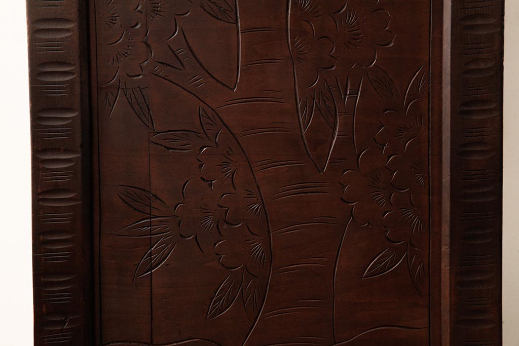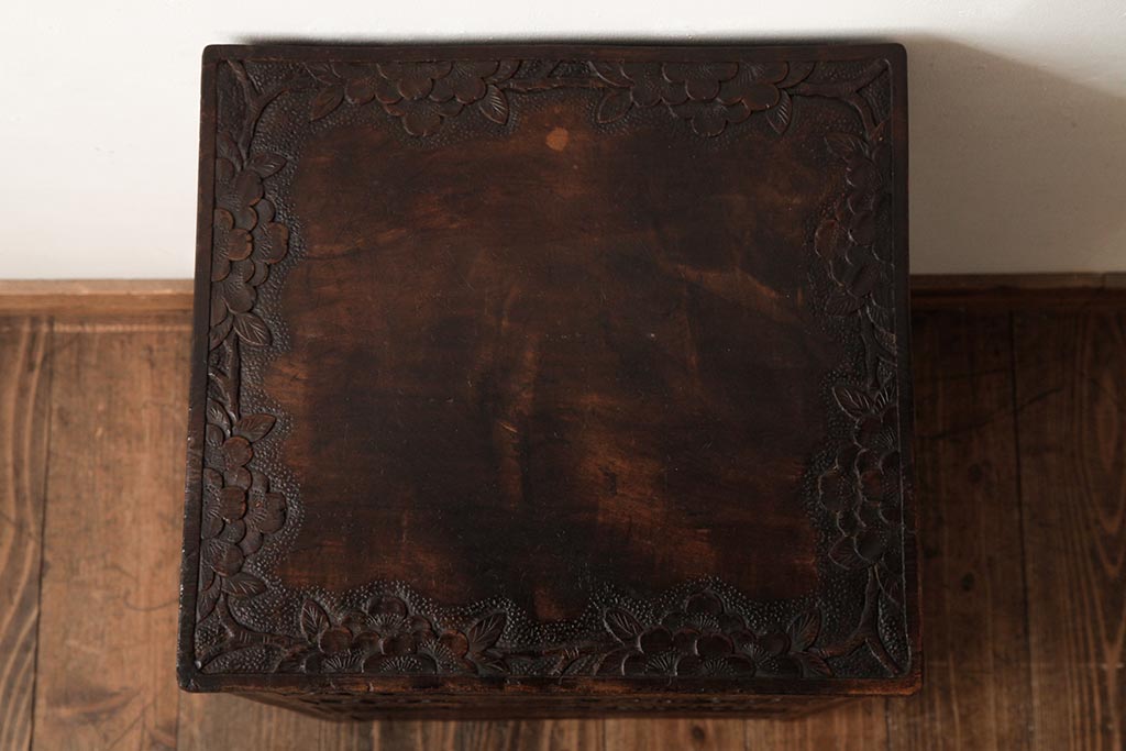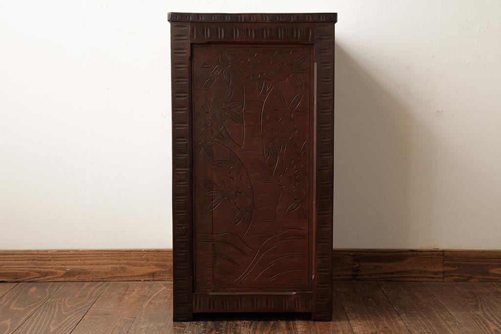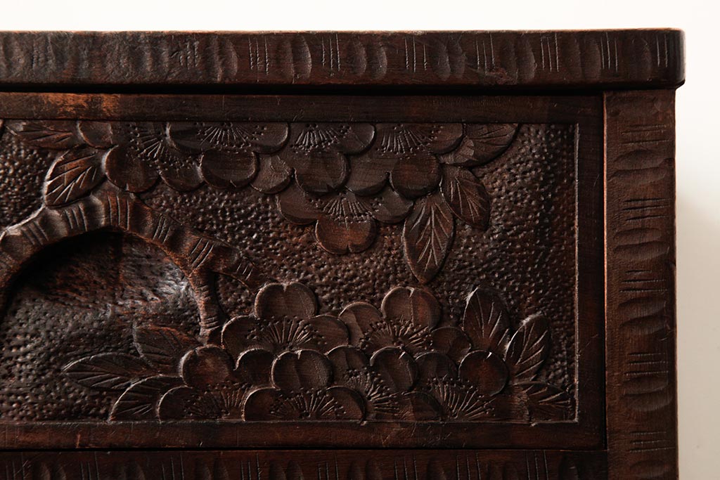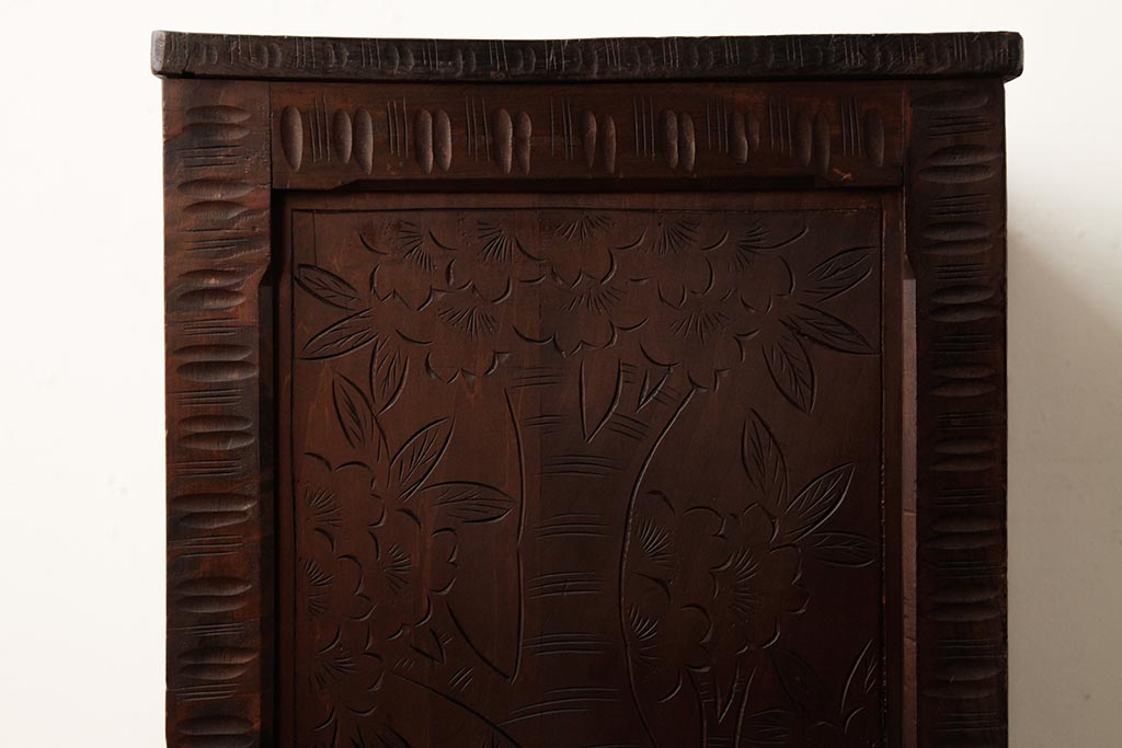 ビンテージ家具 伝統工芸 軽井沢彫り 桜の彫りが優美なチェスト(引き出し)(R-038298)です。