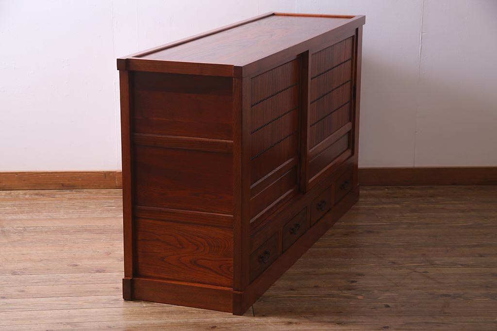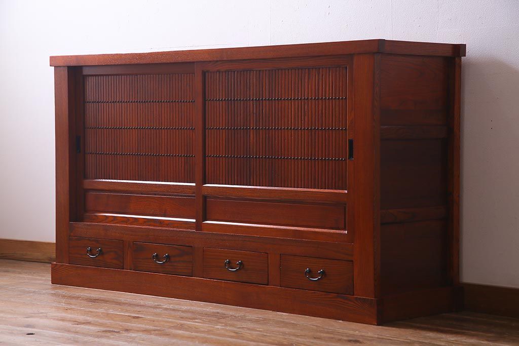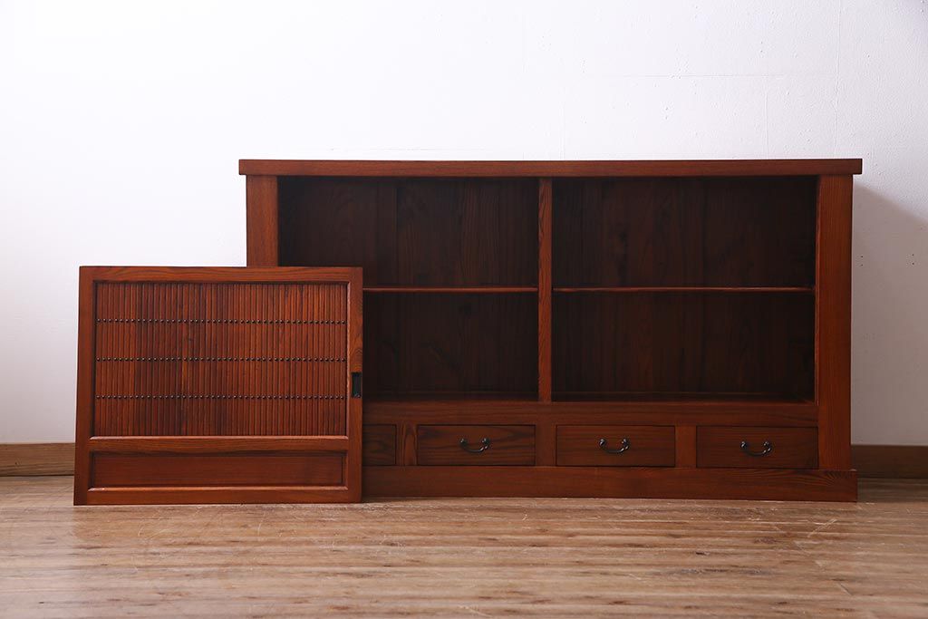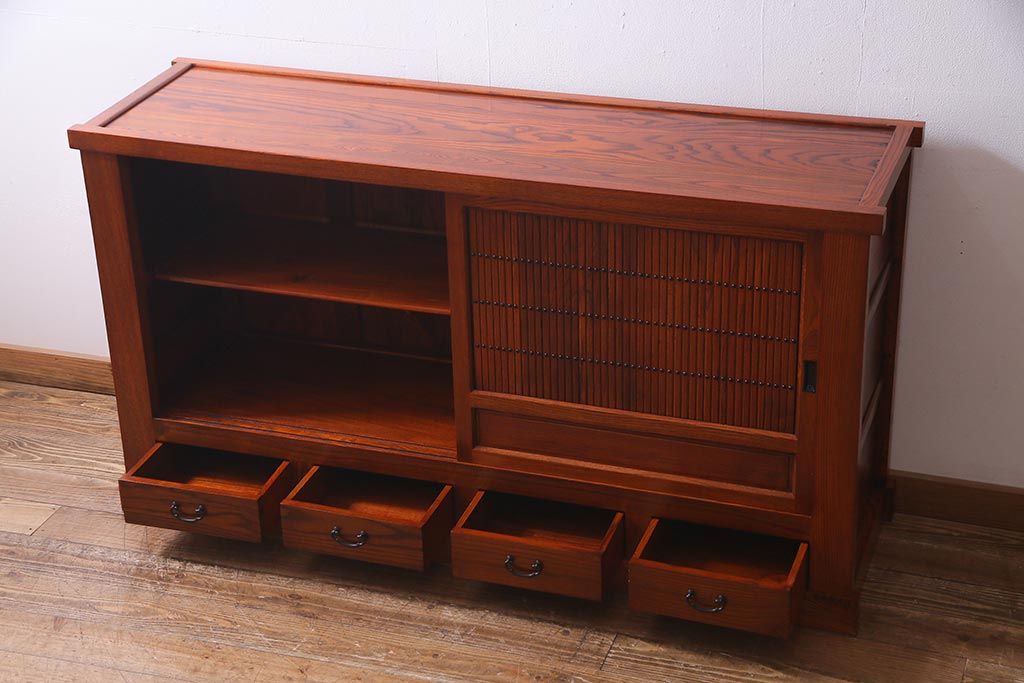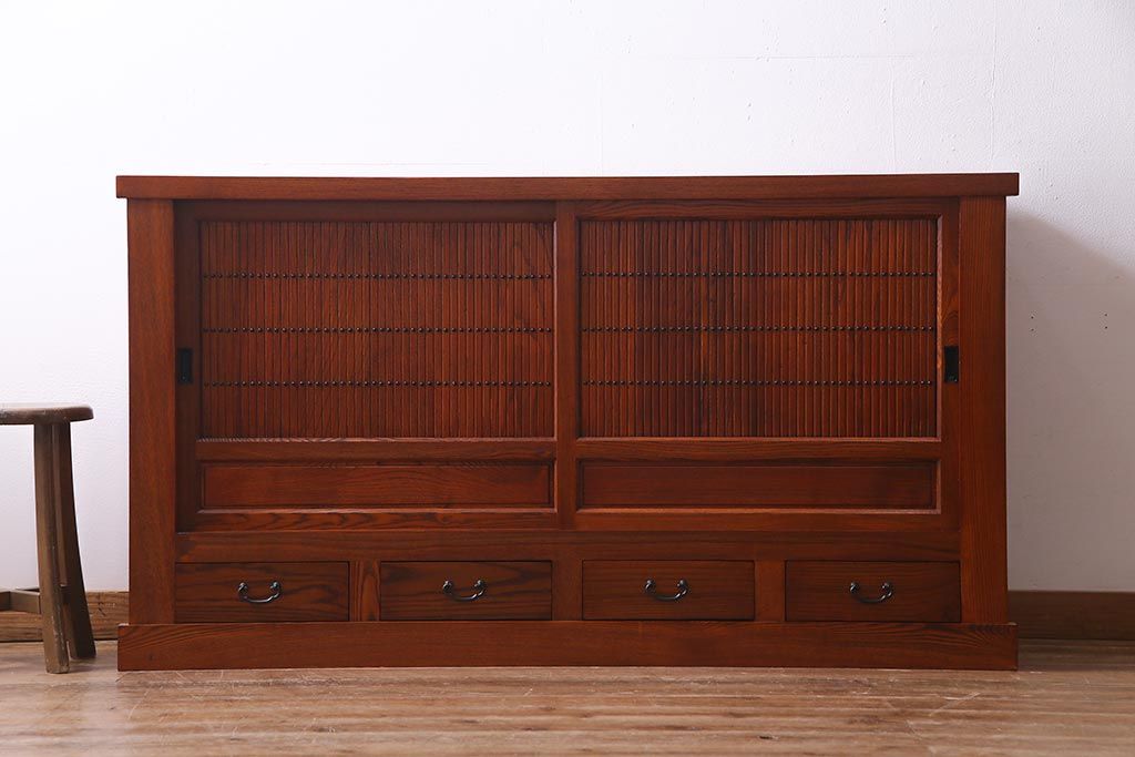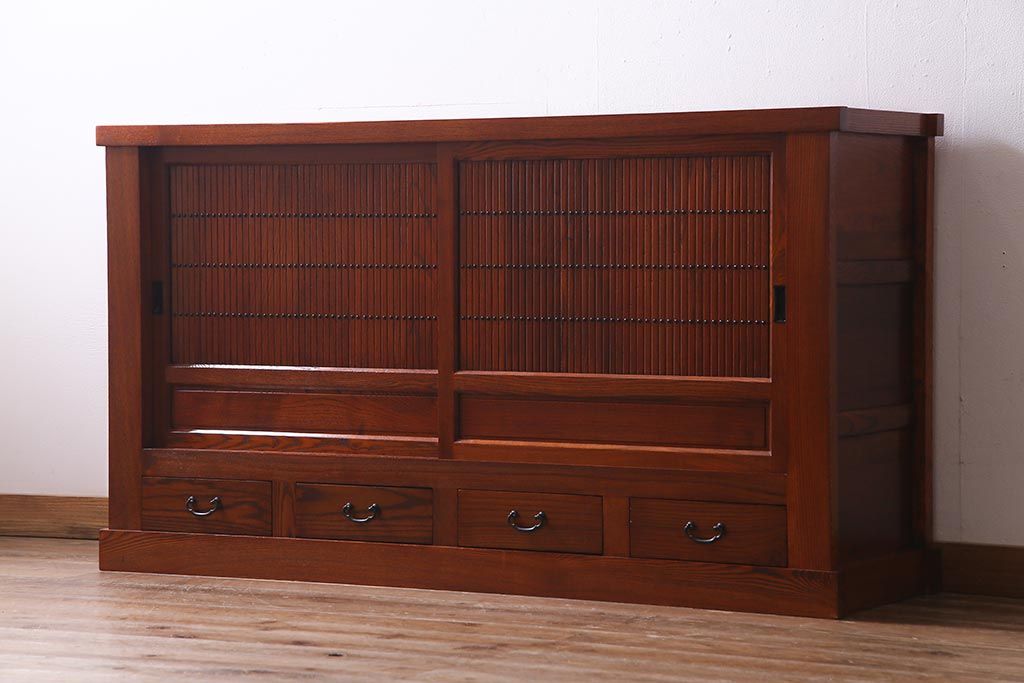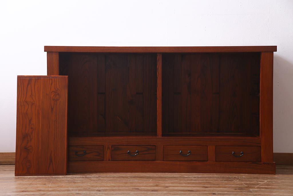 新古品 民芸家具 ニレ無垢材 5尺 上品な雰囲気漂う水屋箪笥・下(収納棚、キャビネット)(R-038309)