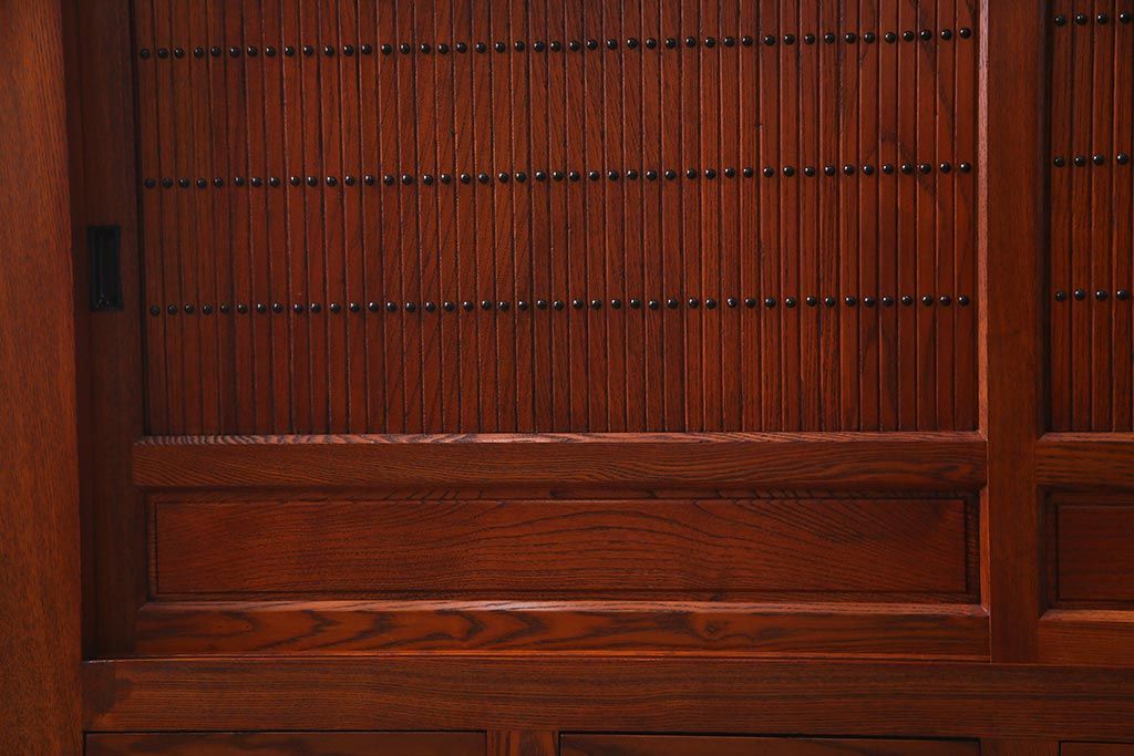 和箪笥 > 新古品 民芸家具 ニレ無垢材 5尺 上品な雰囲気漂う水屋箪笥・下(収納棚、キャビネット)(R-038309)