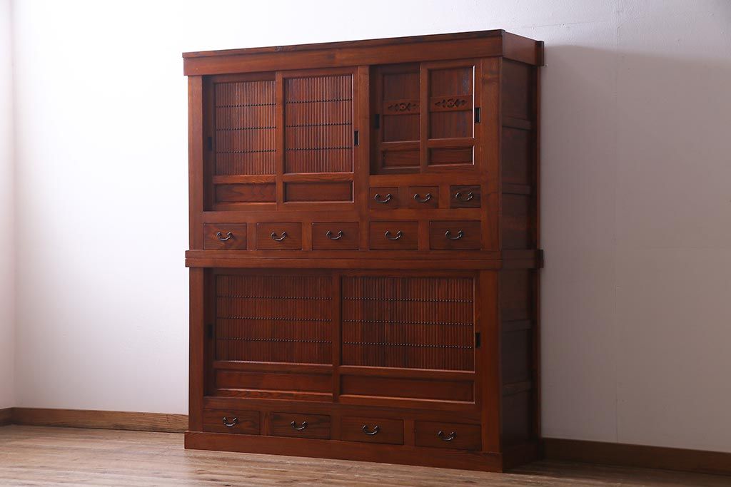 新古品 民芸家具 ニレ無垢材 上品な雰囲気漂う水屋箪笥(収納棚、和箪笥、キャビネット)(R-038310)です。