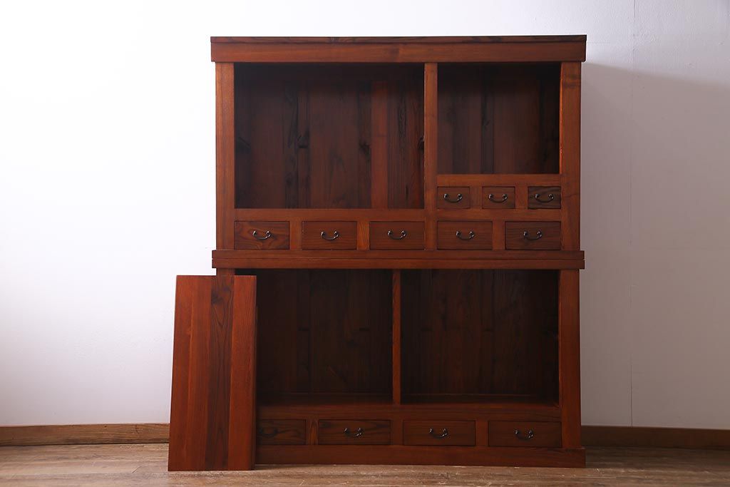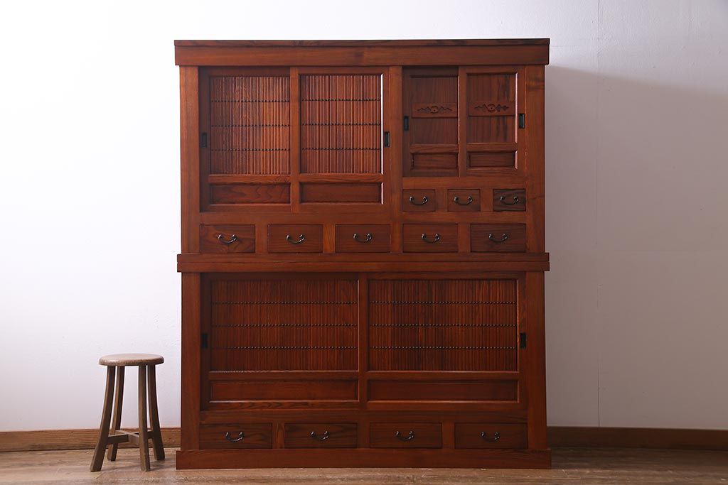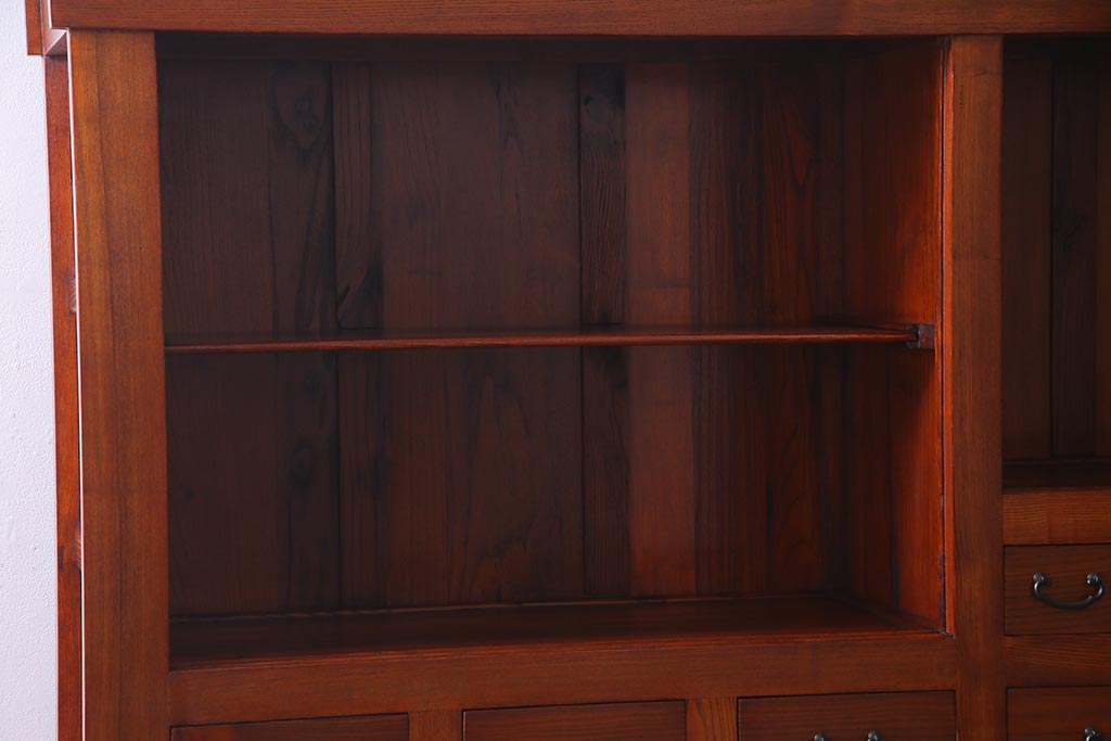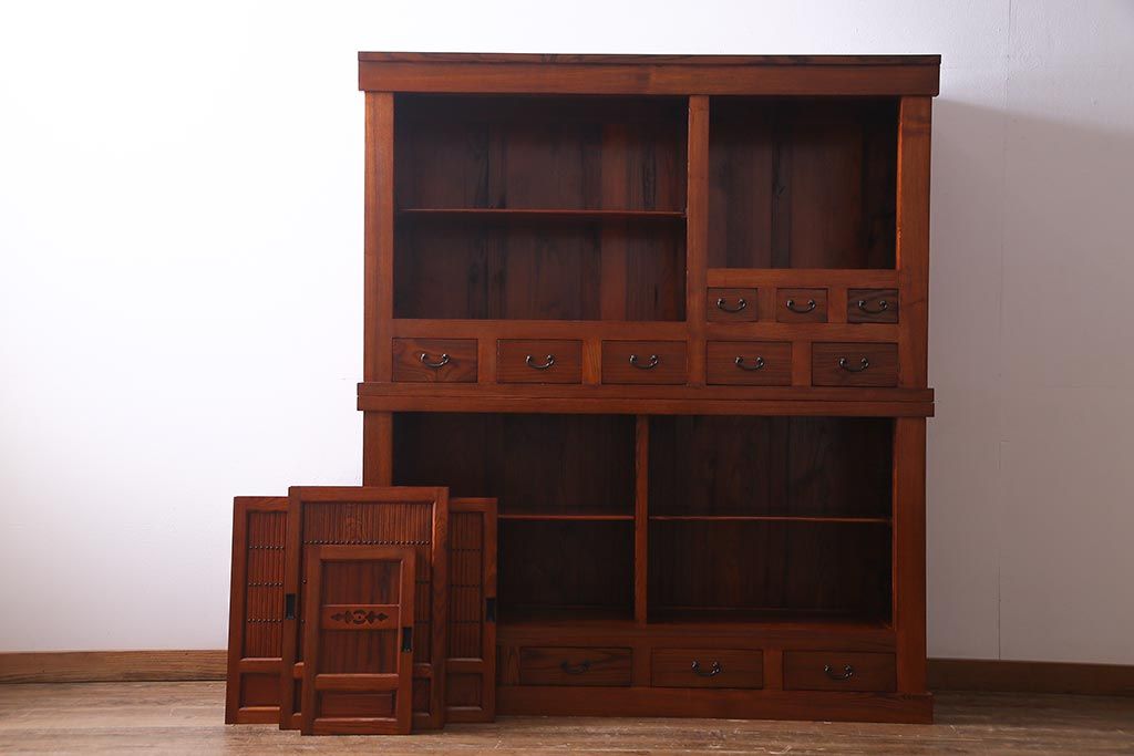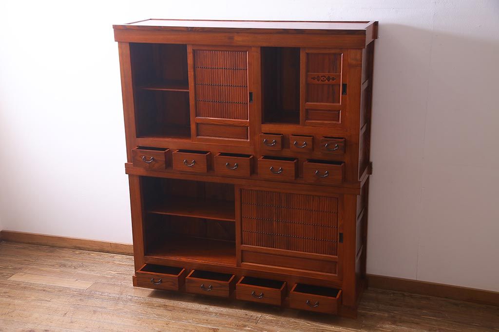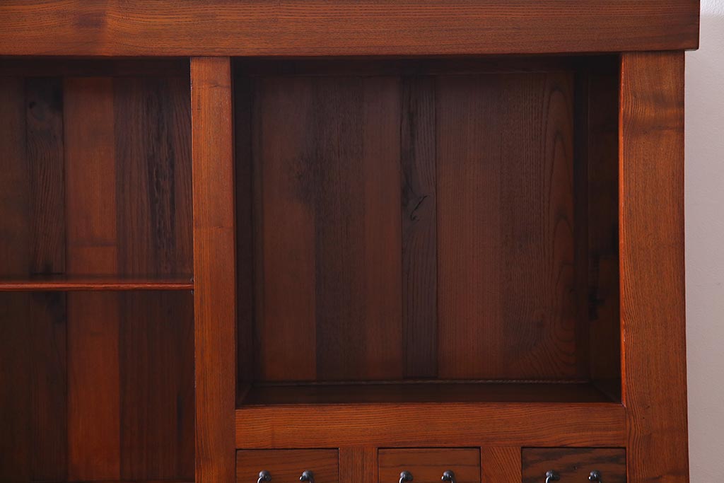 新古品 民芸家具 ニレ無垢材 上品な雰囲気漂う水屋箪笥(収納棚、和箪笥、キャビネット)(R-038310)