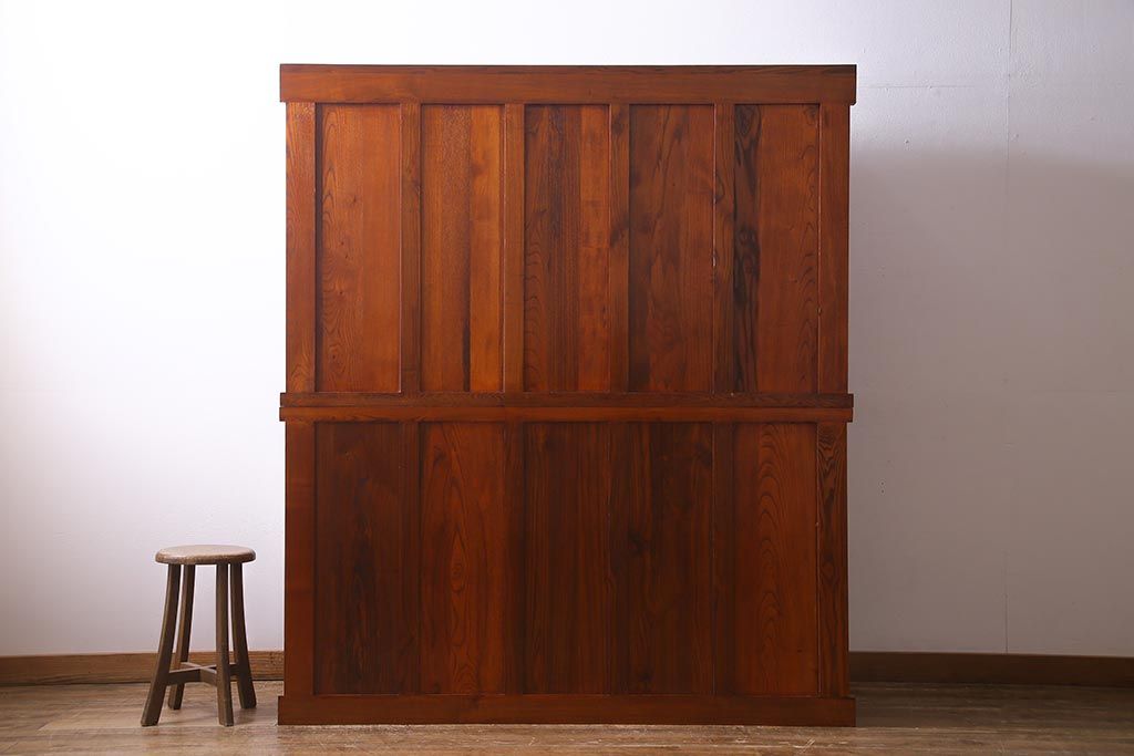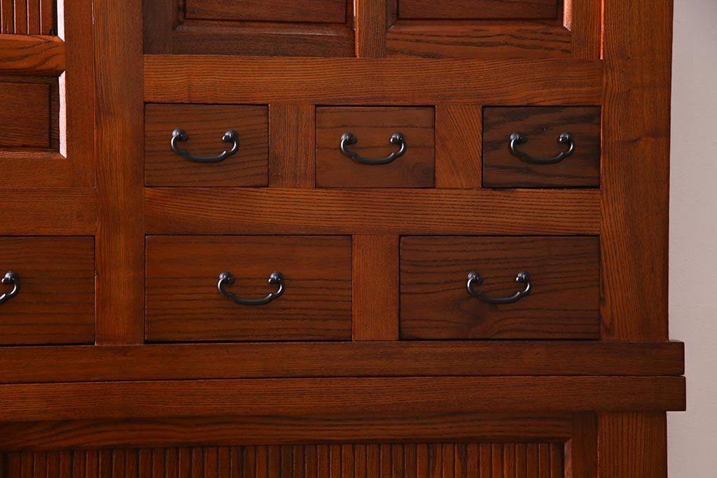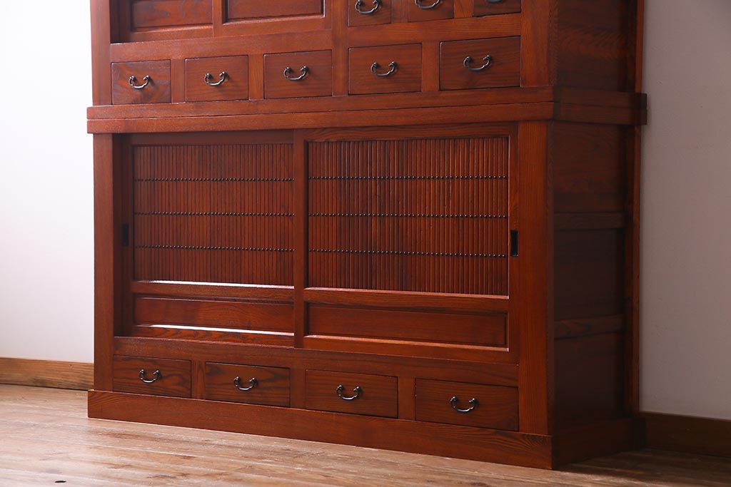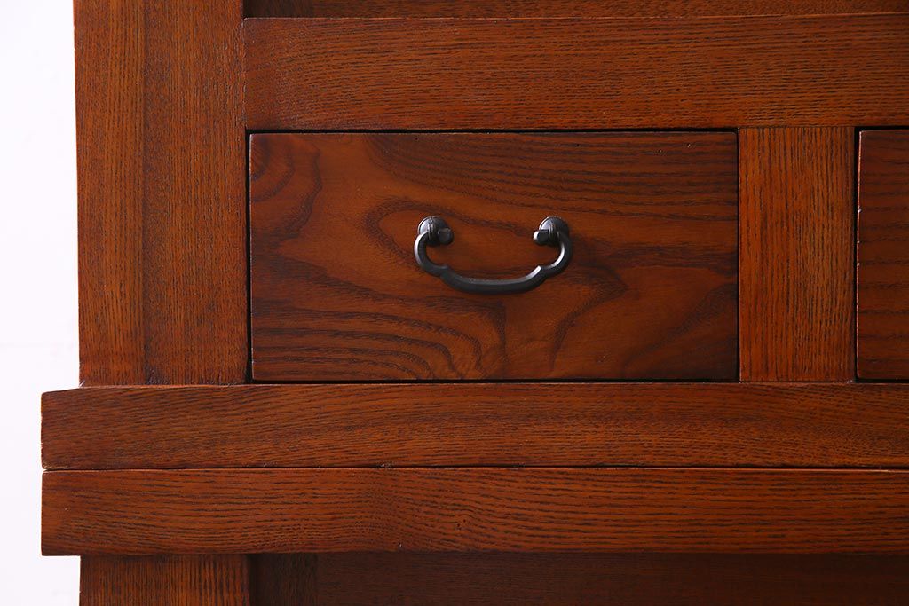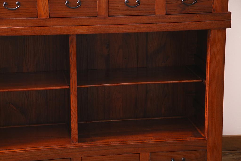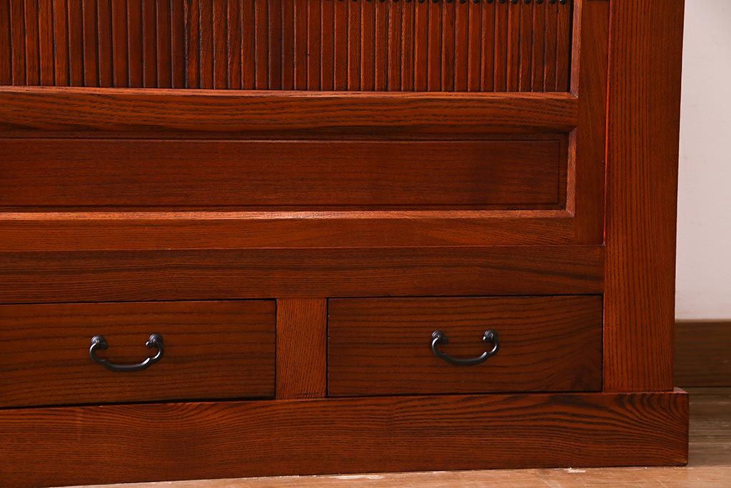 新古品 民芸家具 ニレ無垢材 上品な雰囲気漂う水屋箪笥(収納棚、和箪笥、キャビネット)(R-038310)