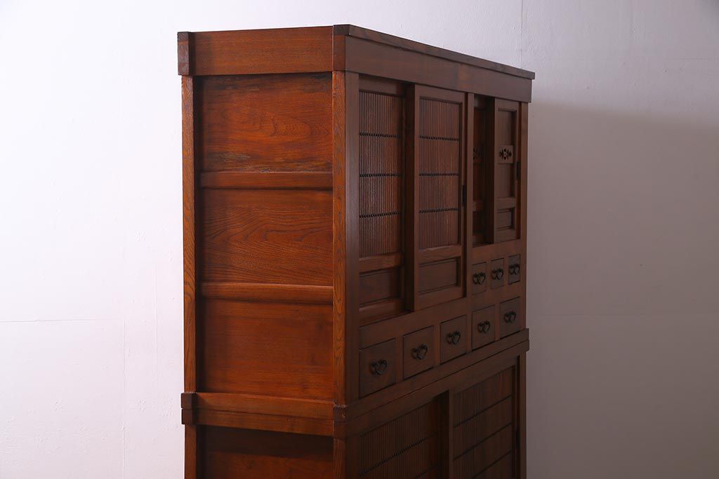 和箪笥> 水屋箪笥 > 新古品 民芸家具 ニレ無垢材 上品な雰囲気漂う水屋箪笥(収納棚、和箪笥、キャビネット)(R-038310)