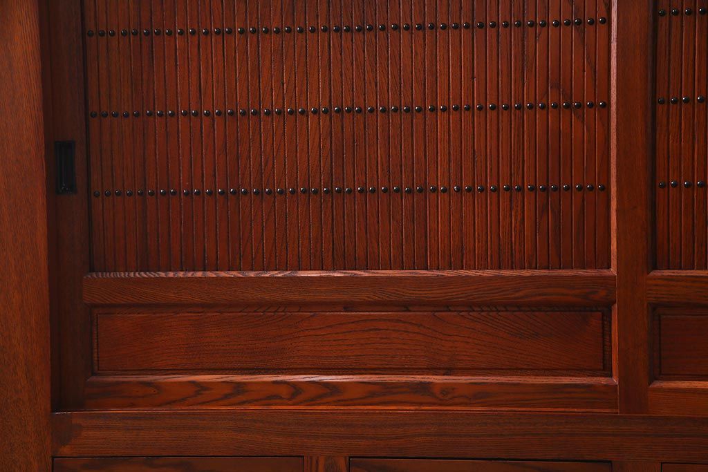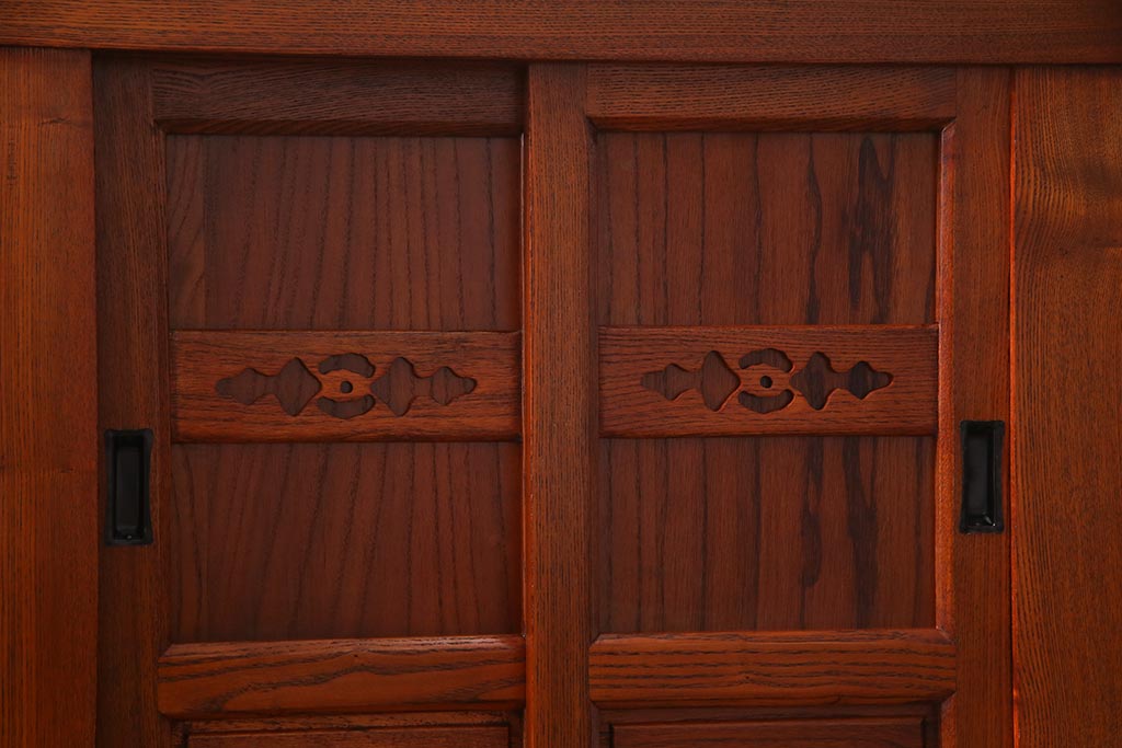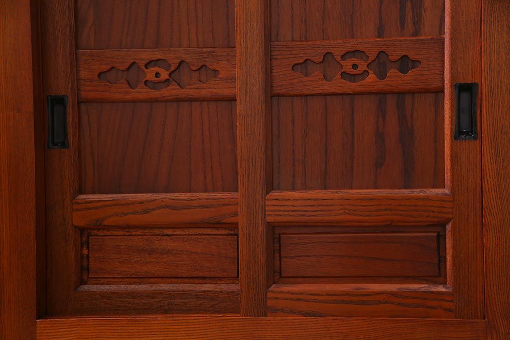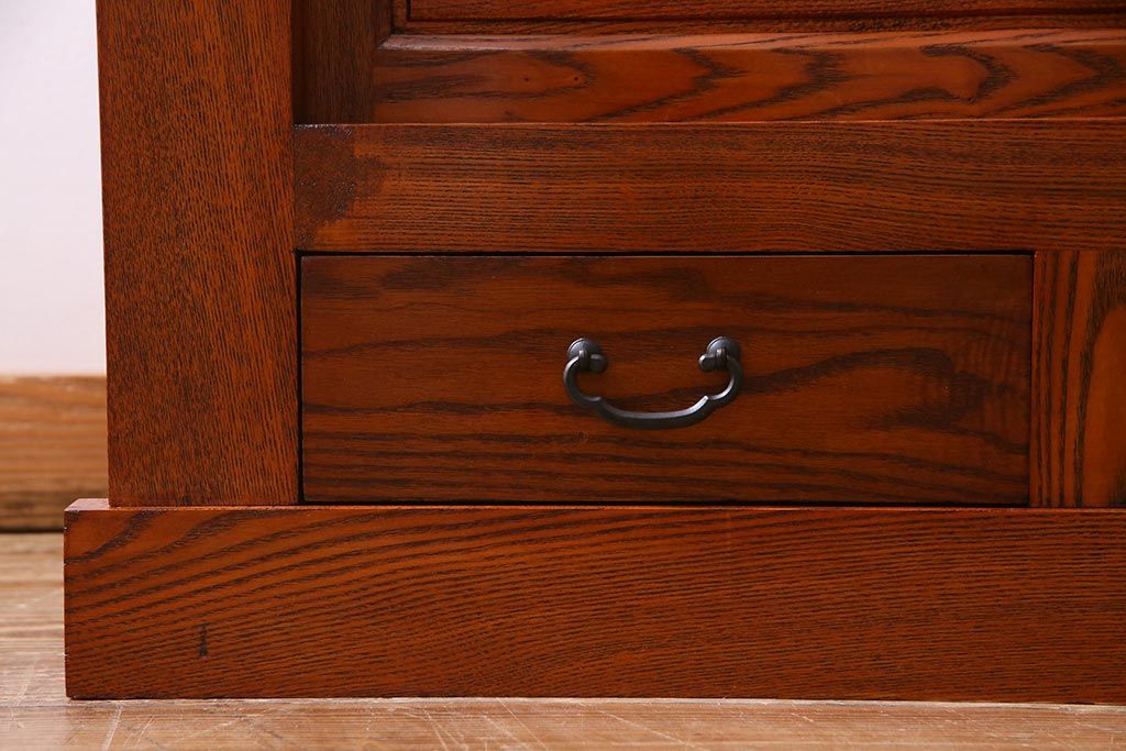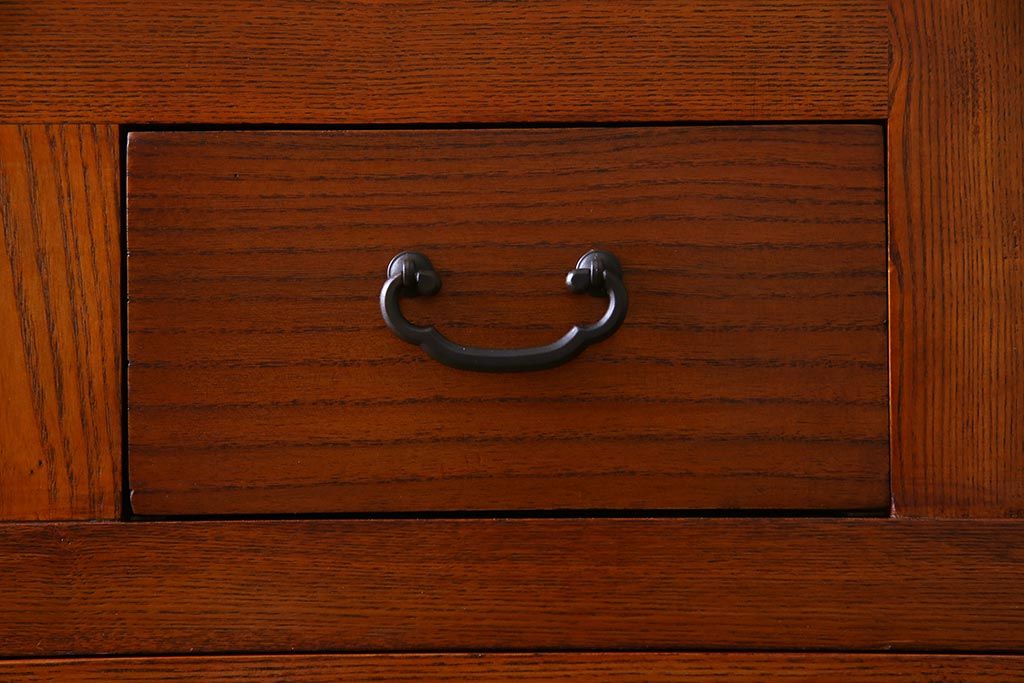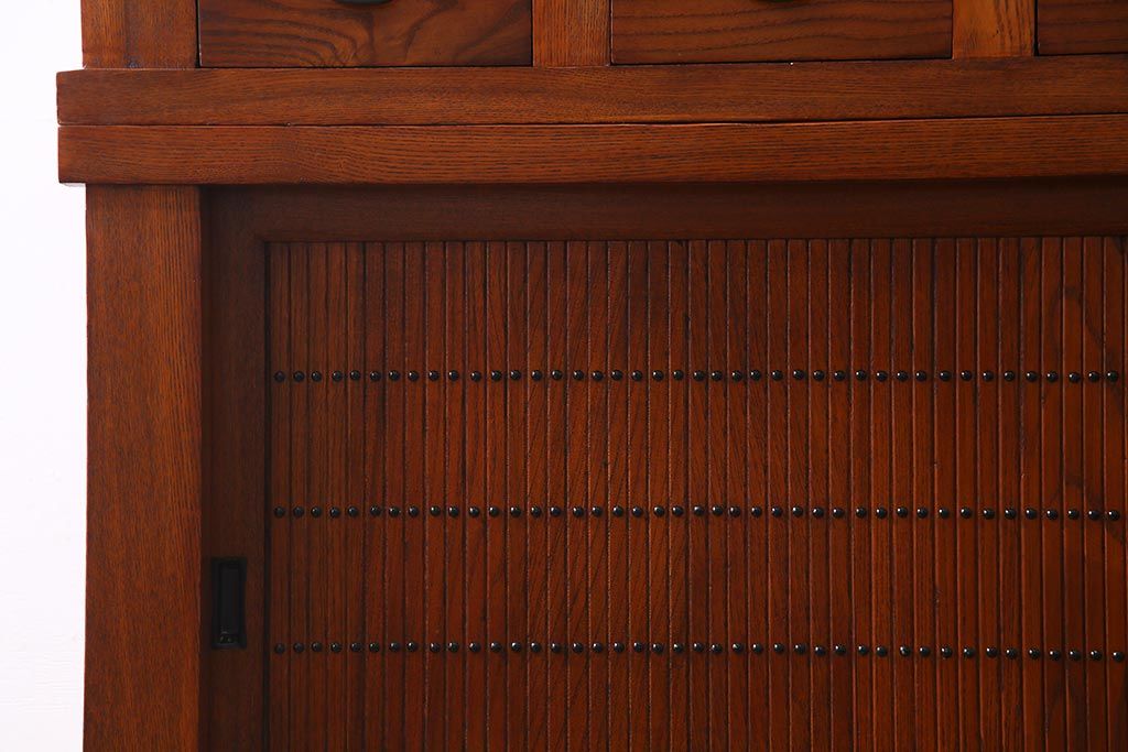 和箪笥 > 新古品 民芸家具 ニレ無垢材 上品な雰囲気漂う水屋箪笥(収納棚、和箪笥、キャビネット)(R-038310)