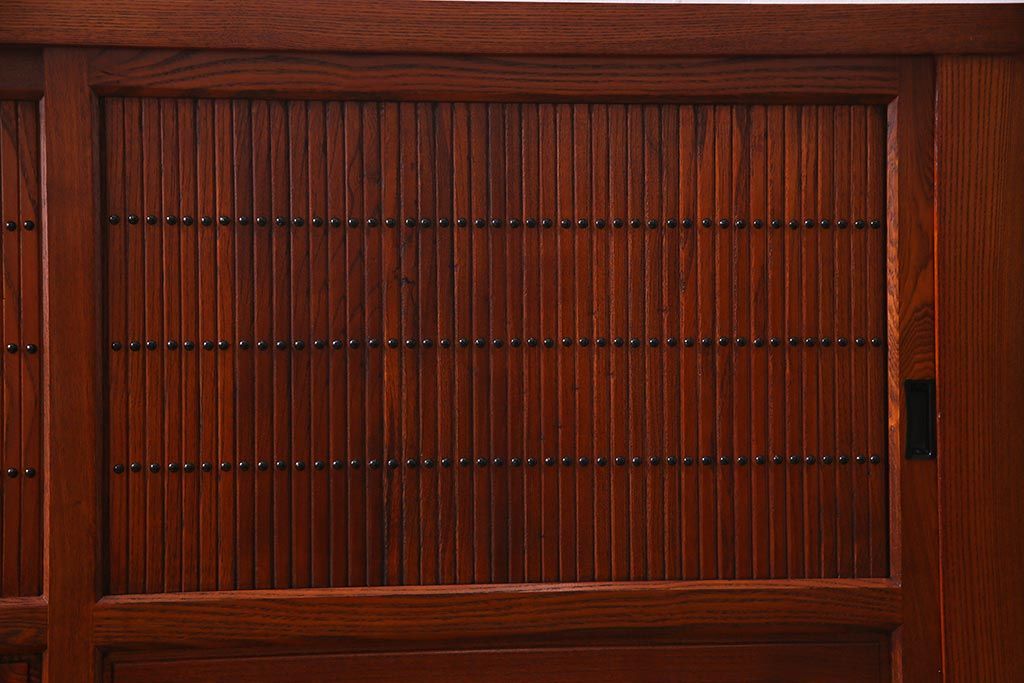 民芸家具 > 新古品 民芸家具 ニレ無垢材 上品な雰囲気漂う水屋箪笥(収納棚、和箪笥、キャビネット)(R-038310)