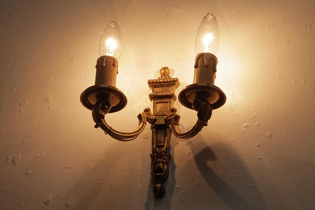 照明・ランプ> ウォールライト > アンティーク照明 フランスアンティーク 真鍮製 オリエンタルな雰囲気が魅力的なウォールランプ(壁掛け照明、壁付け照明)(R-038312)