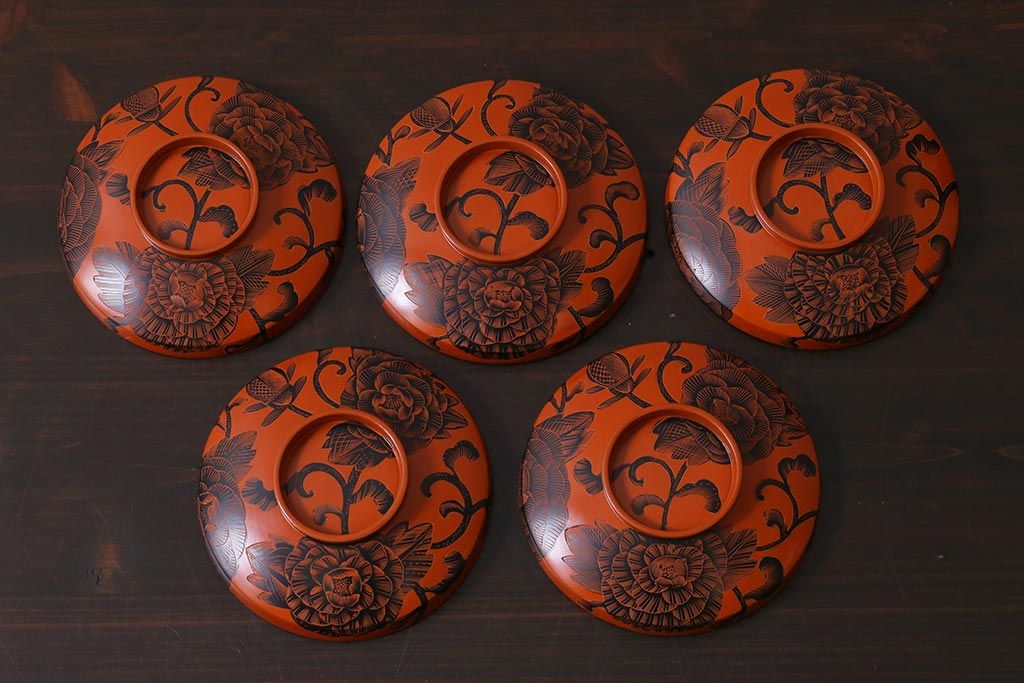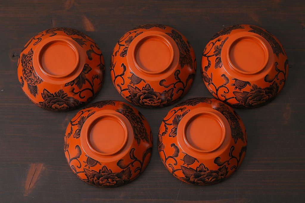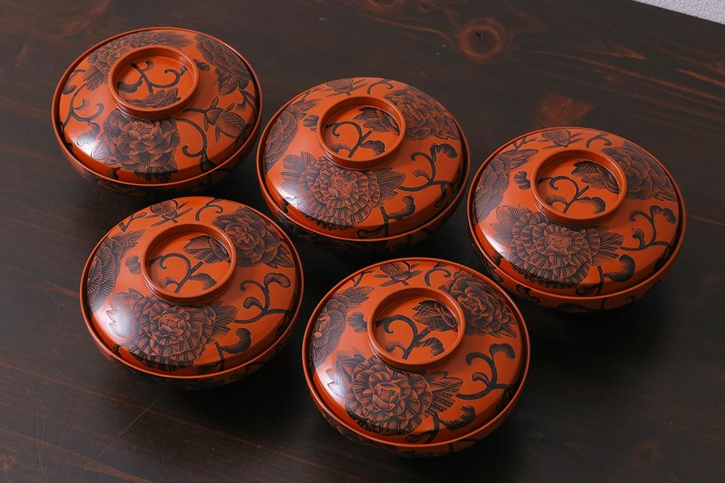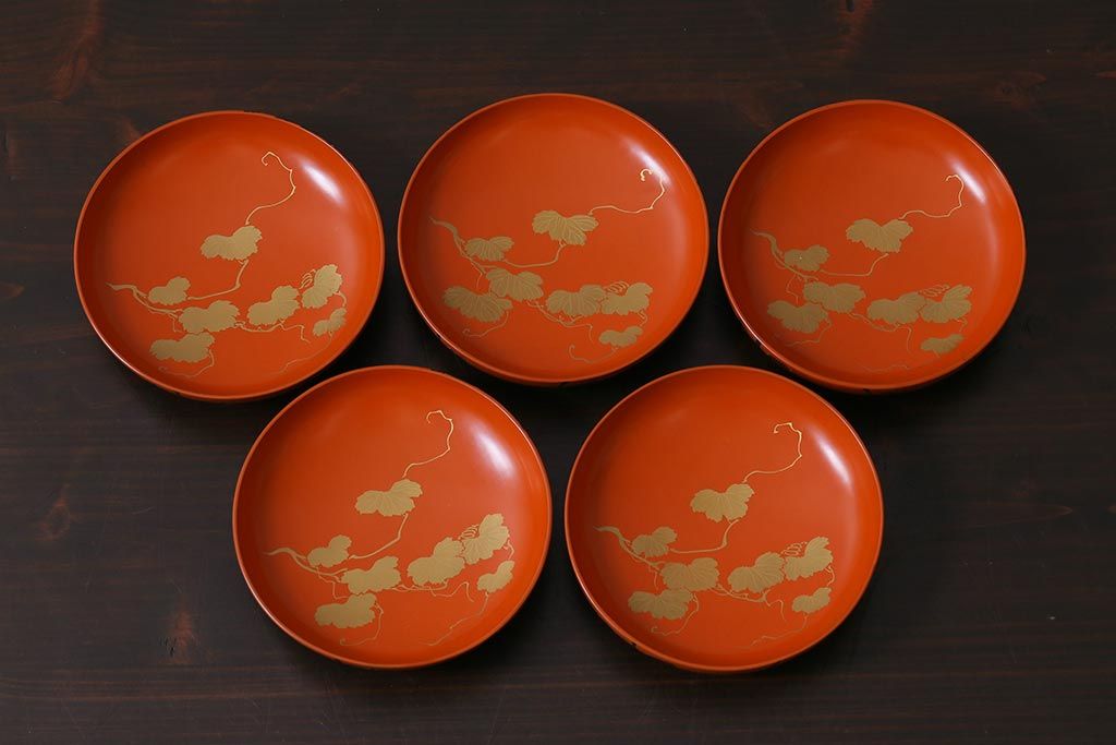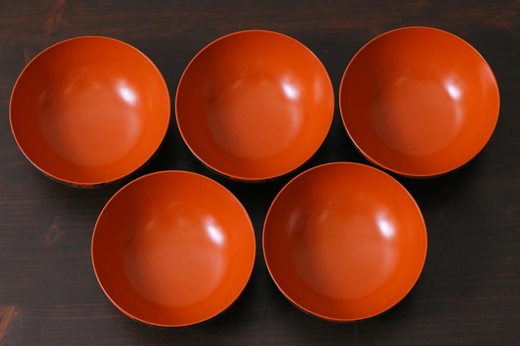 ラフジュ工房> 和食器・茶道具> お椀・茶碗 > アンティーク雑貨 大正期 漆塗り 沈黒・金蒔絵が贅沢な蓋付き木製椀5客セット(漆器、和食器)(R-038050)