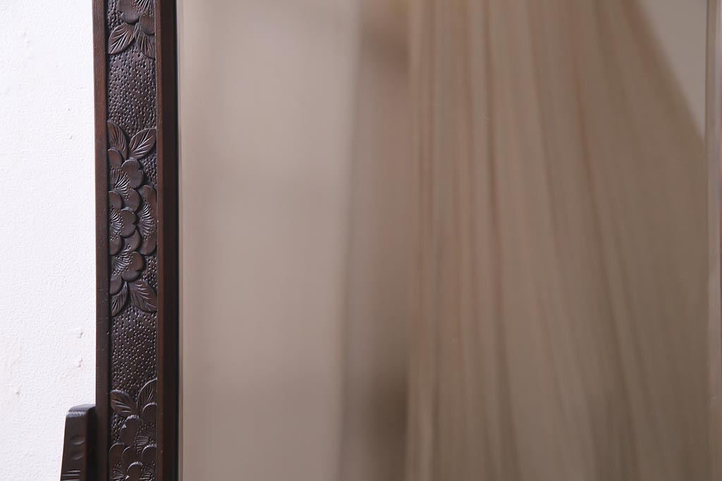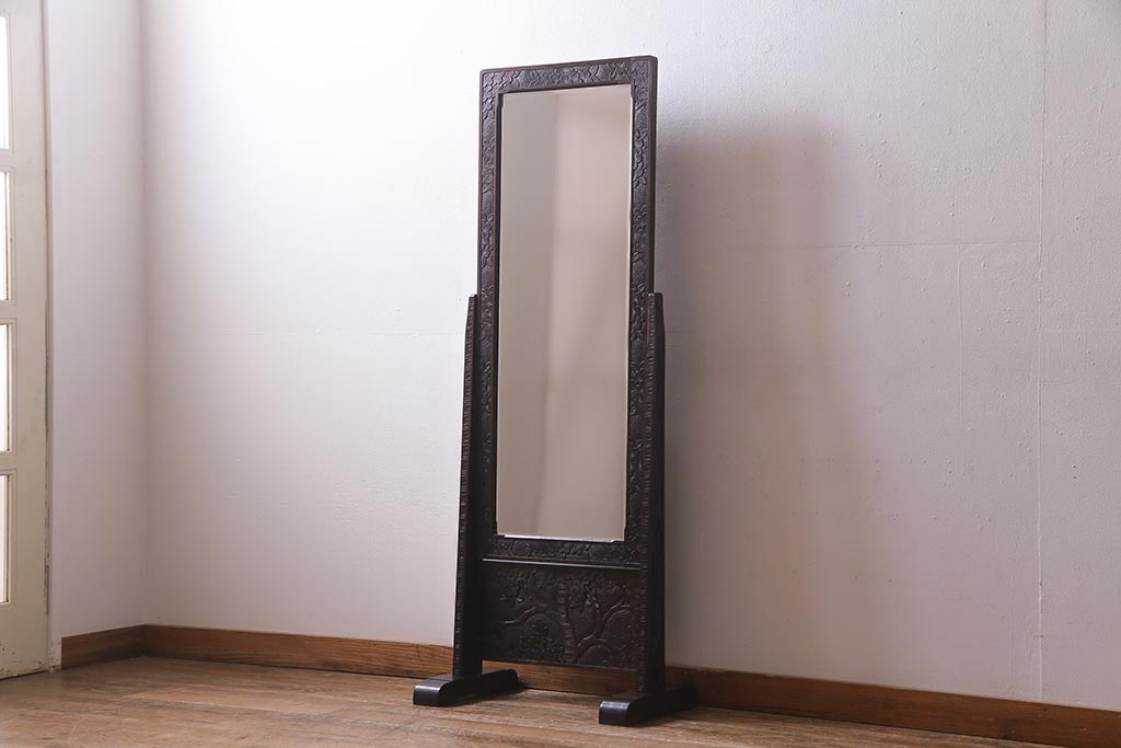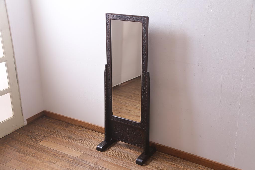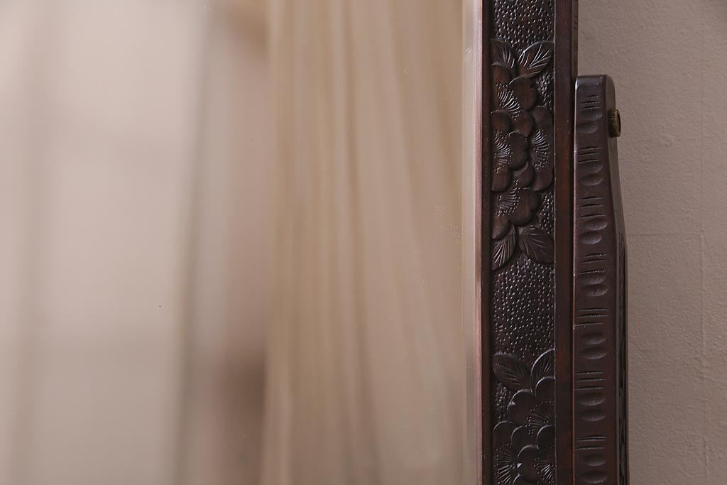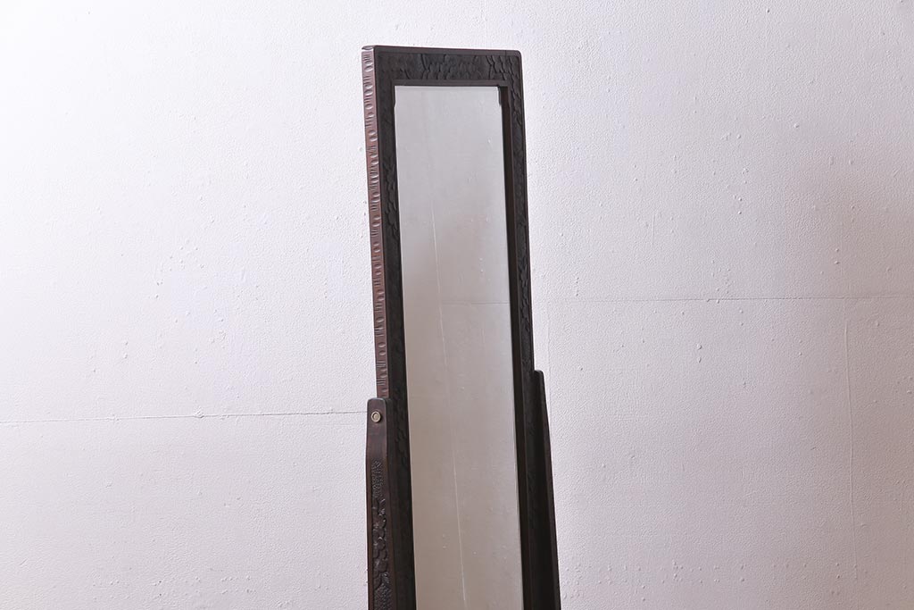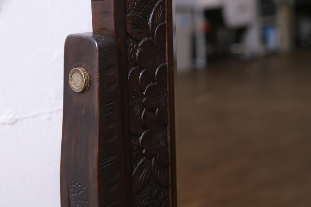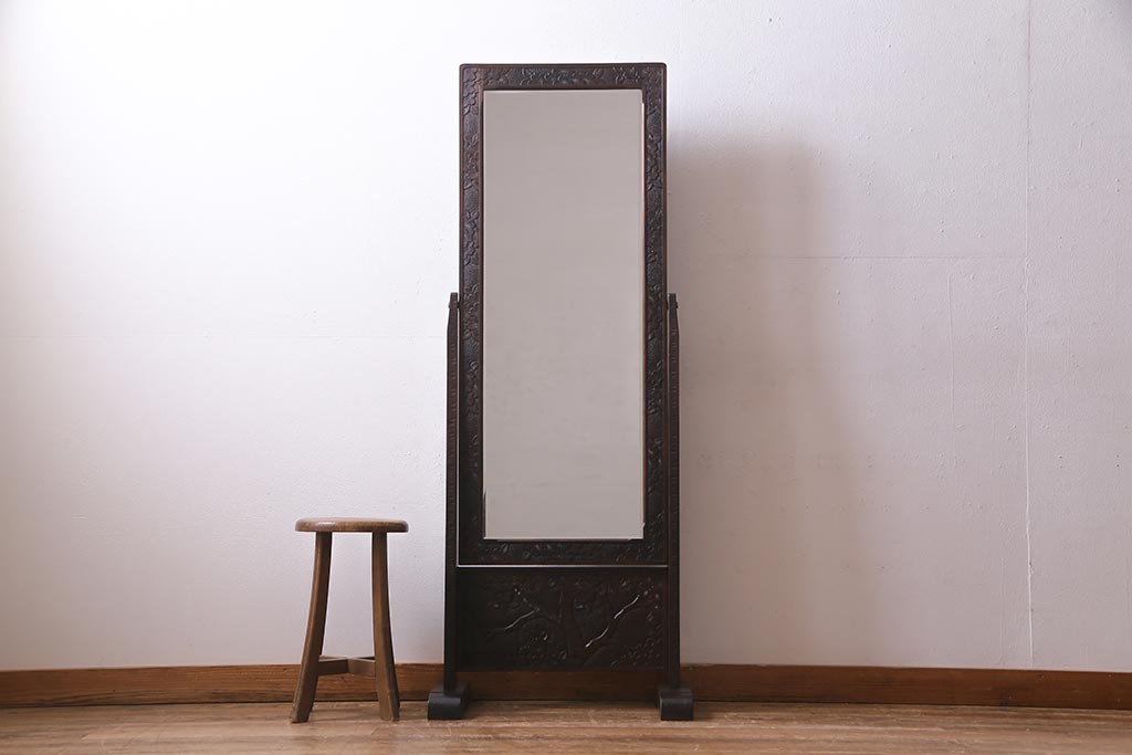 ラフジュ工房> 民芸家具 > ビンテージ家具 伝統工芸 軽井沢彫り 昭和中期 繊細な桜の彫りが目を引く姿見(鏡、ミラー)(R-038305)