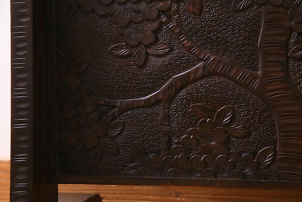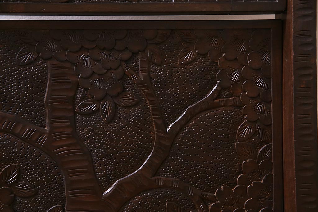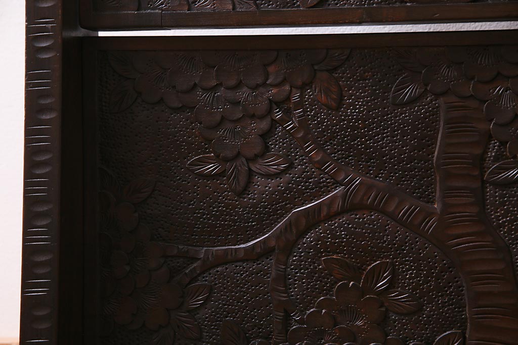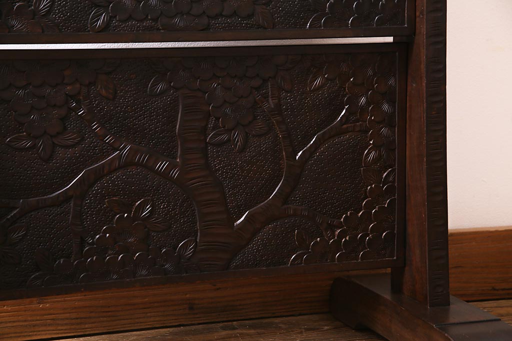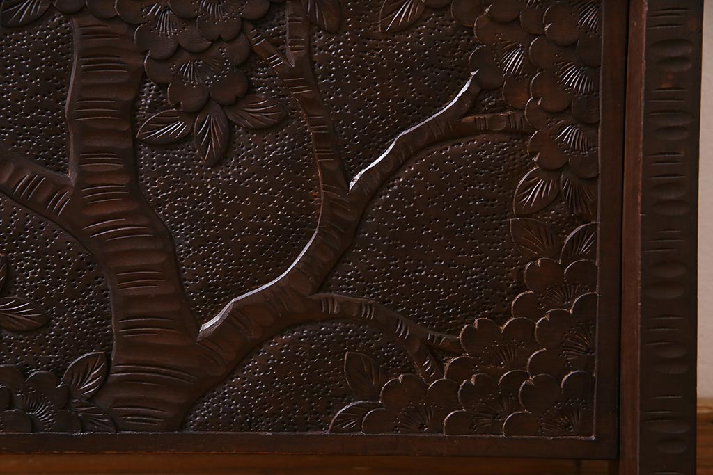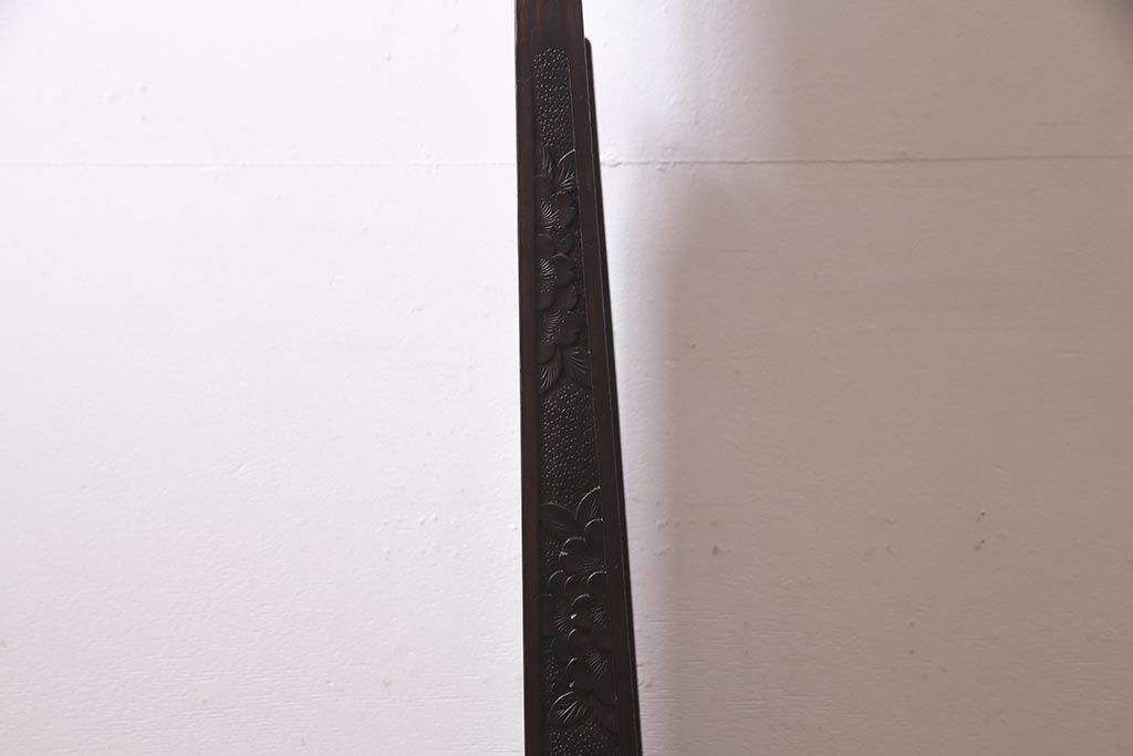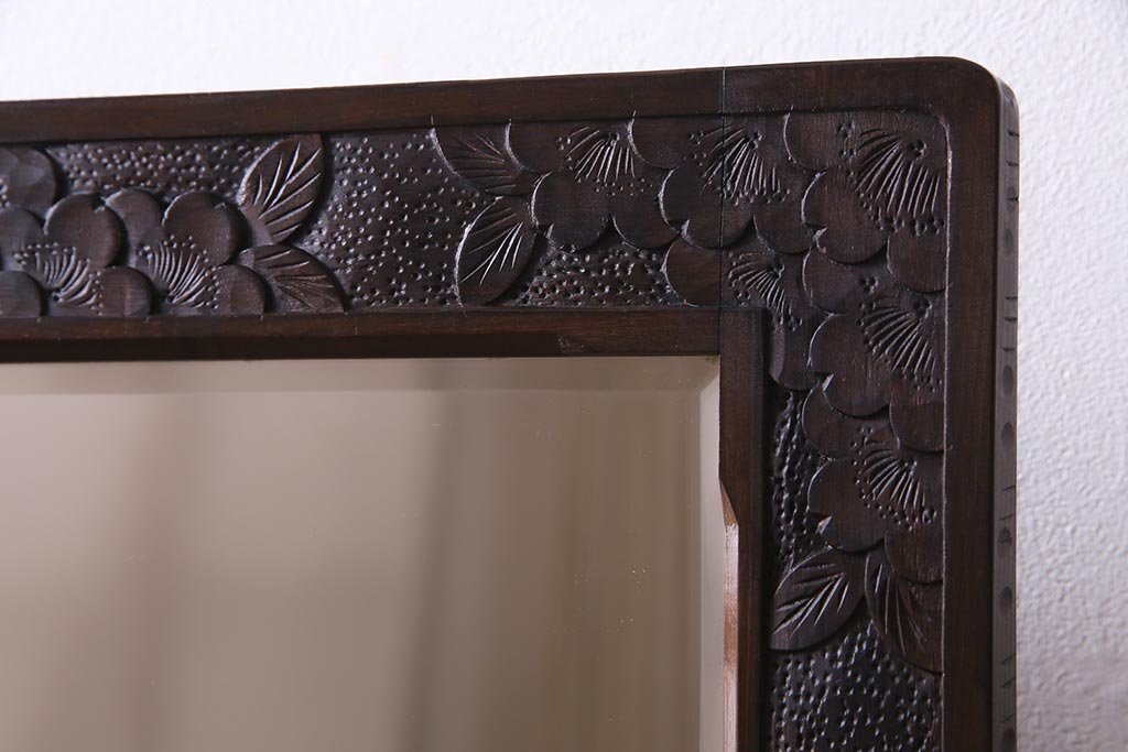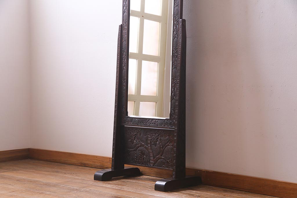 ラフジュ工房> 民芸家具 > ビンテージ家具 伝統工芸 軽井沢彫り 昭和中期 繊細な桜の彫りが目を引く姿見(鏡、ミラー)(R-038305)