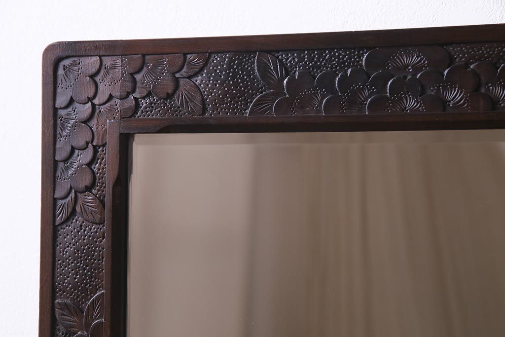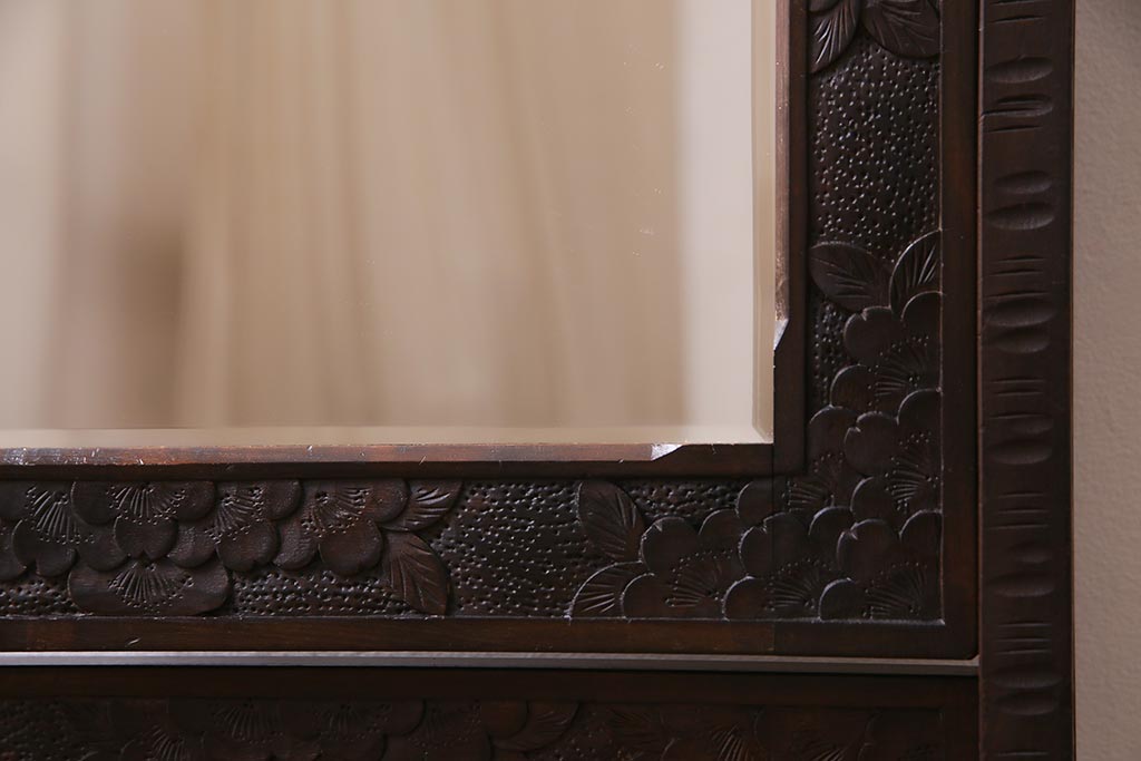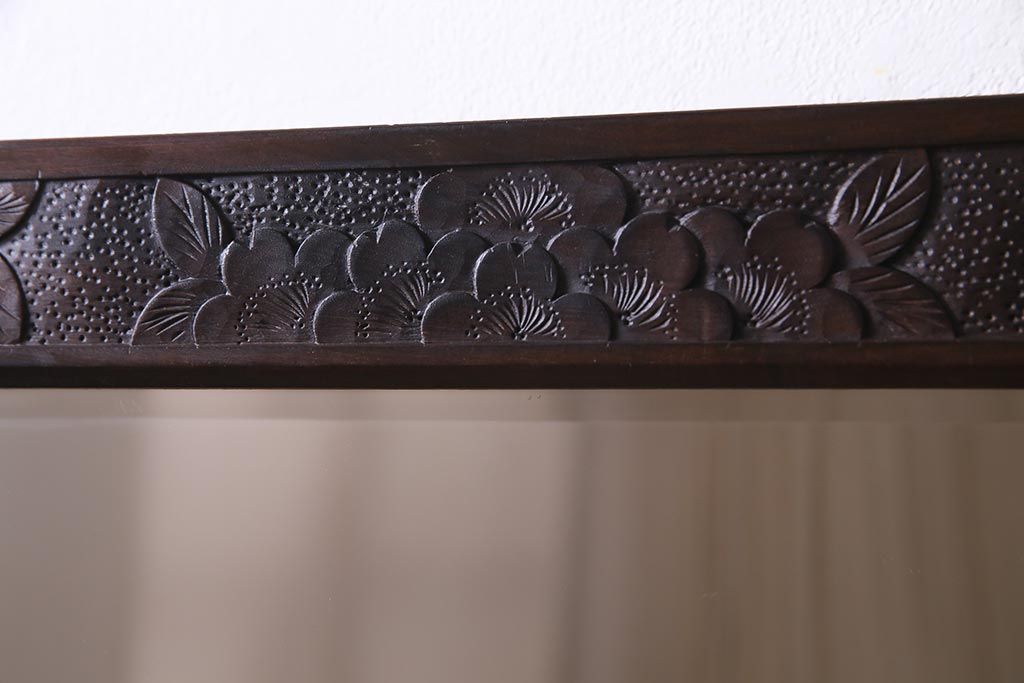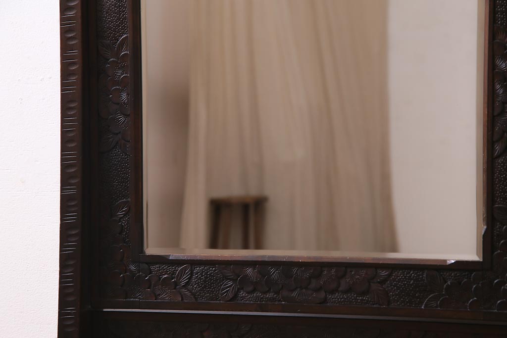 ラフジュ工房> 鏡 > ビンテージ家具 伝統工芸 軽井沢彫り 昭和中期 繊細な桜の彫りが目を引く姿見(鏡、ミラー)(R-038305)