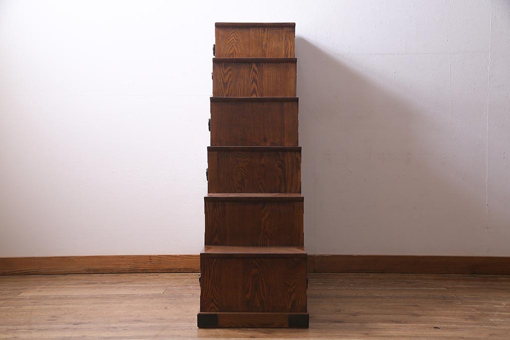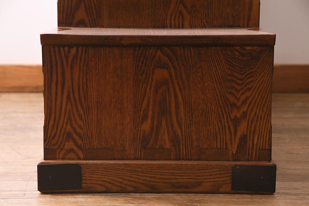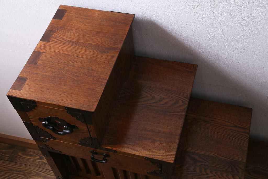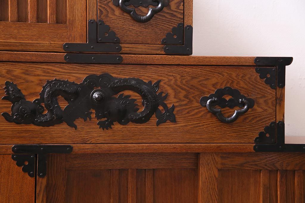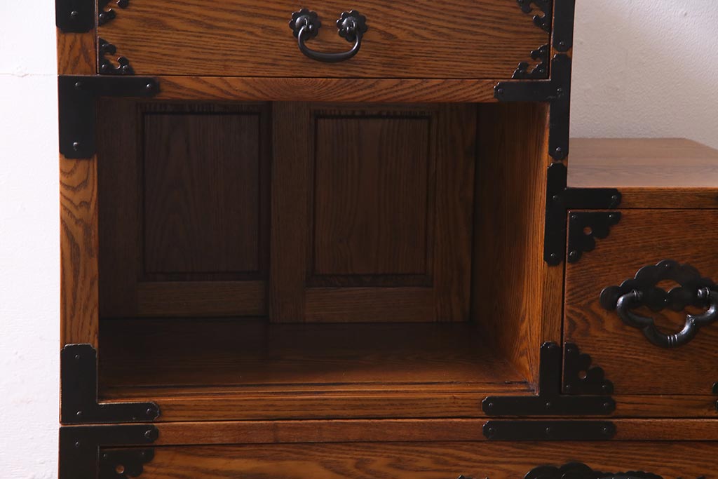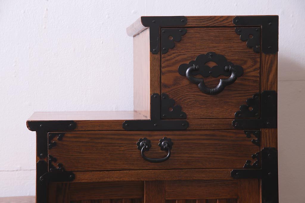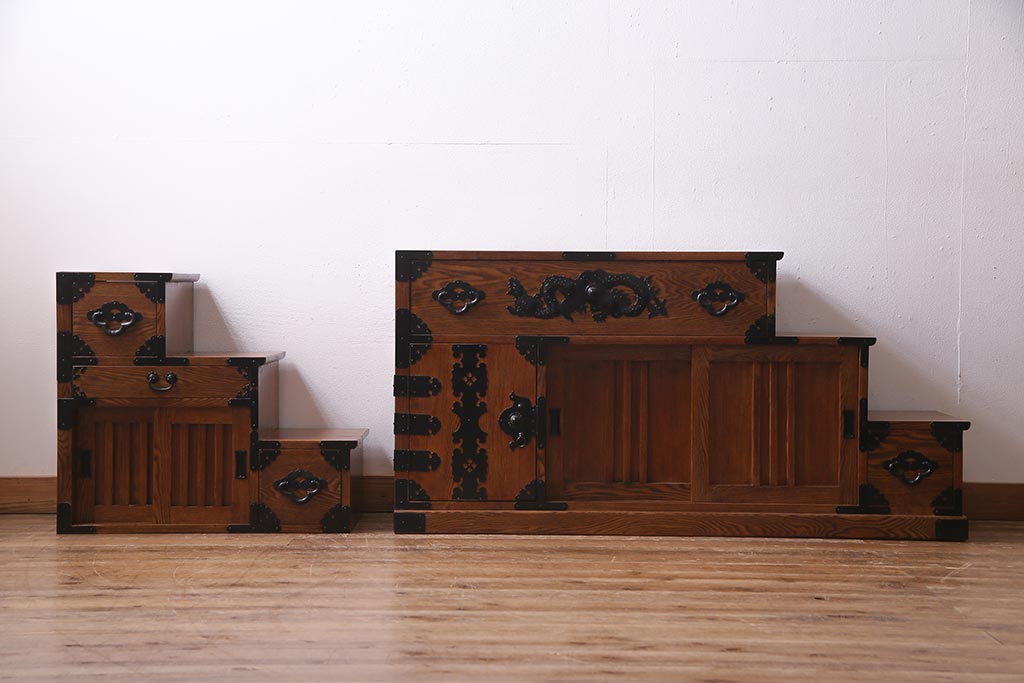 新古品 民芸家具 ニレ無垢材 雲竜金具 両面使い!ユニット型階段箪笥(和タンス)(R-038322)
