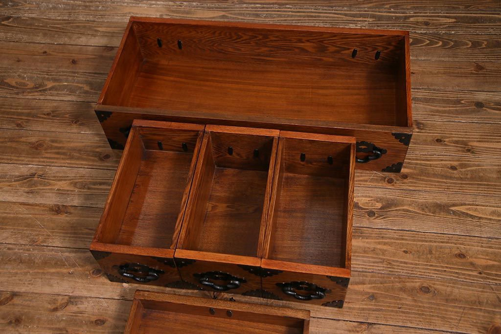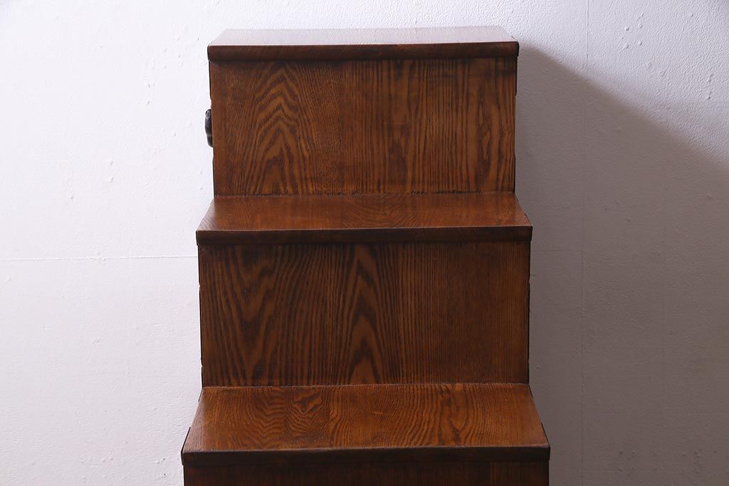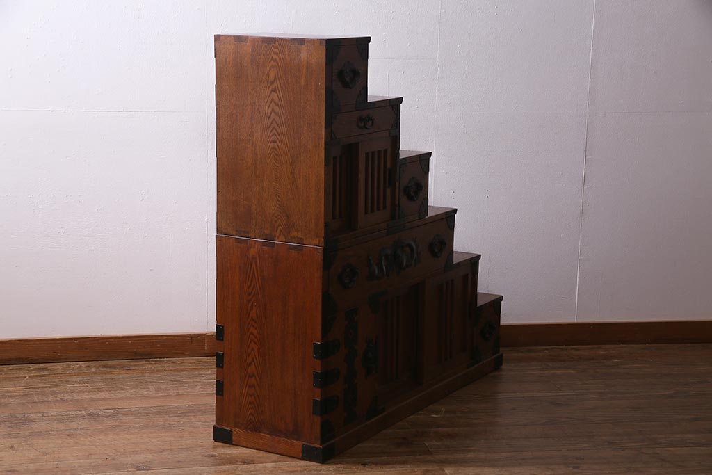 ラフジュ工房> 民芸家具 > 新古品 民芸家具 ニレ無垢材 雲竜金具 両面使い!ユニット型階段箪笥(和タンス)(R-038322)