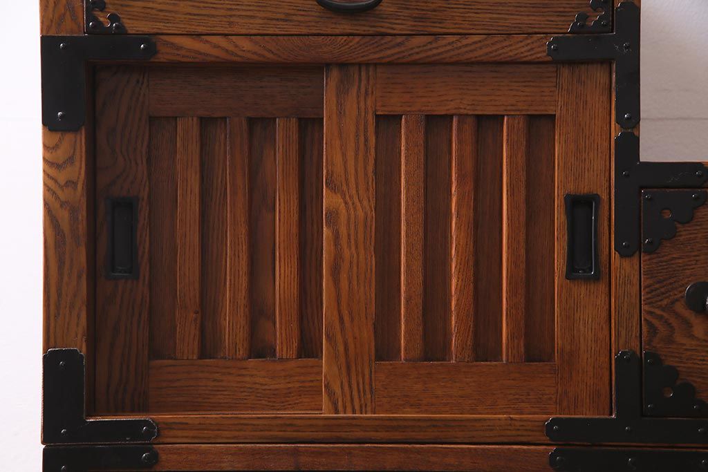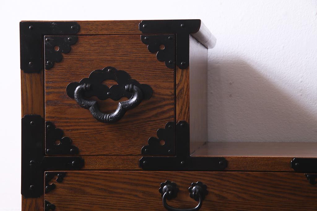 ラフジュ工房> 和箪笥 > 新古品 民芸家具 ニレ無垢材 雲竜金具 両面使い!ユニット型階段箪笥(和タンス)(R-038322)