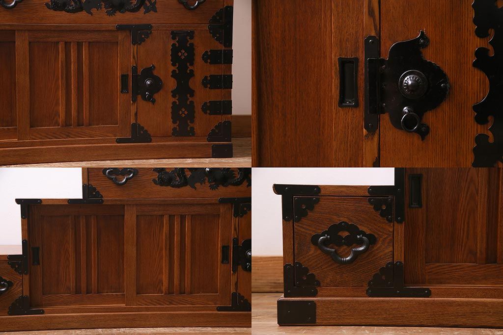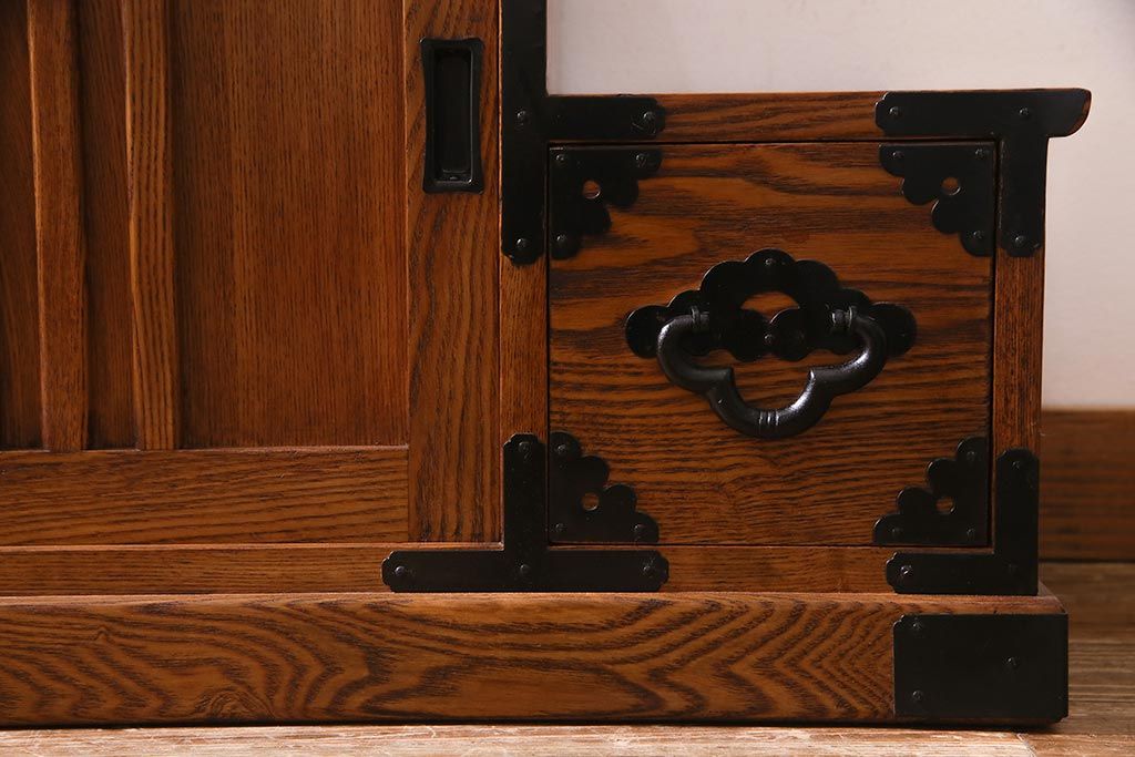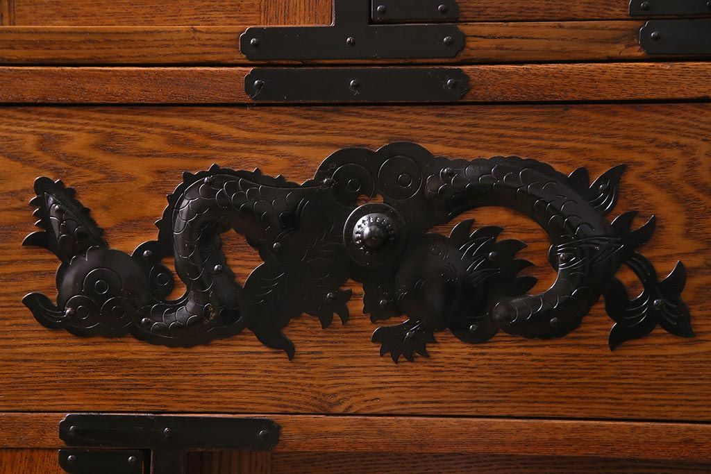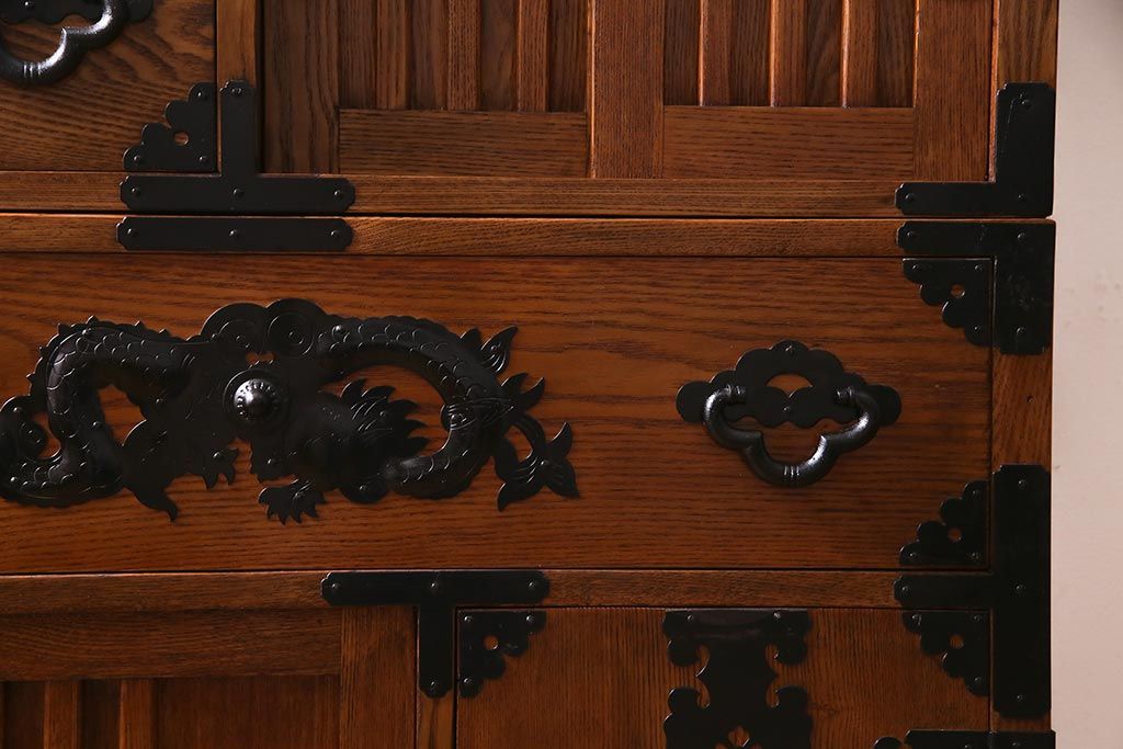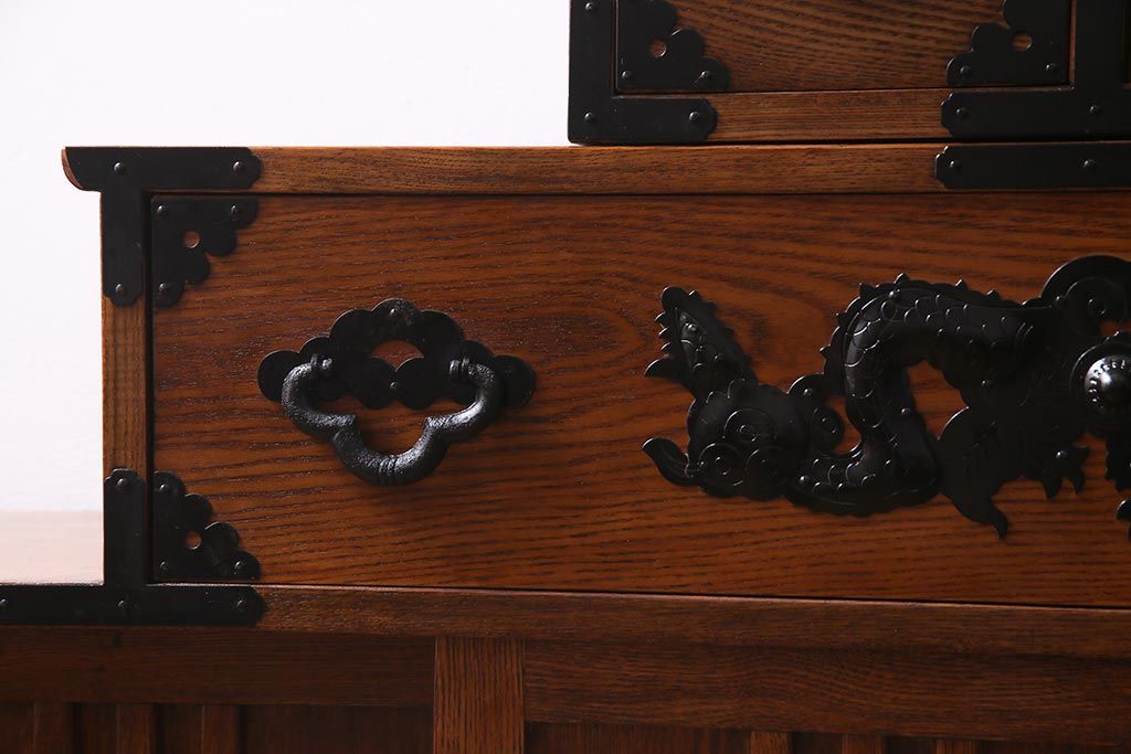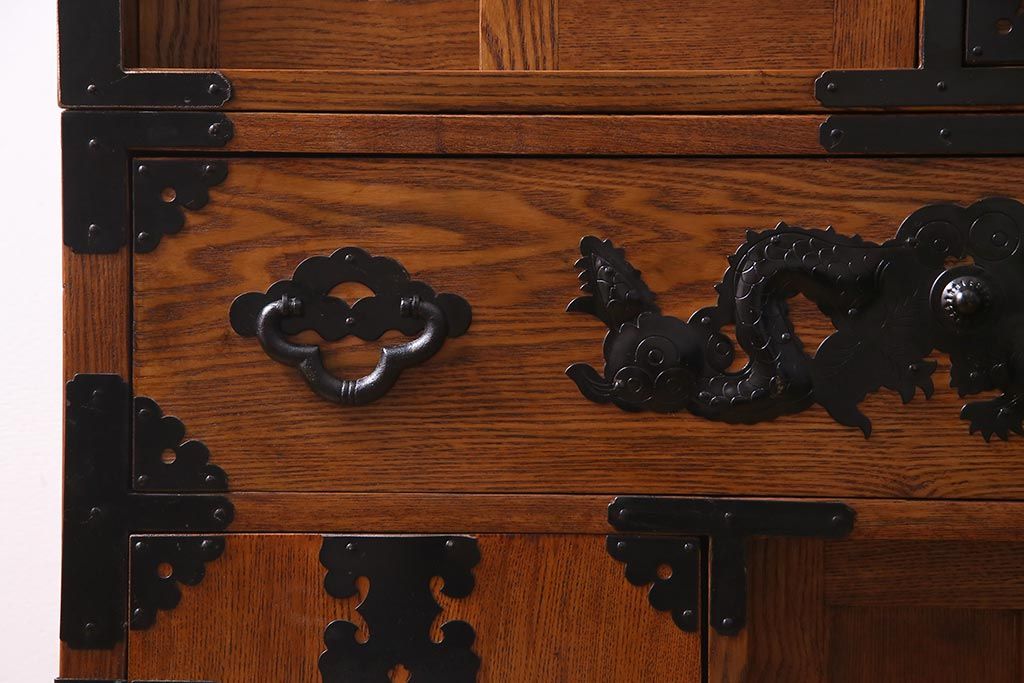 ラフジュ工房> 和箪笥> 階段箪笥 > 新古品 民芸家具 ニレ無垢材 雲竜金具 両面使い!ユニット型階段箪笥(和タンス)(R-038322)