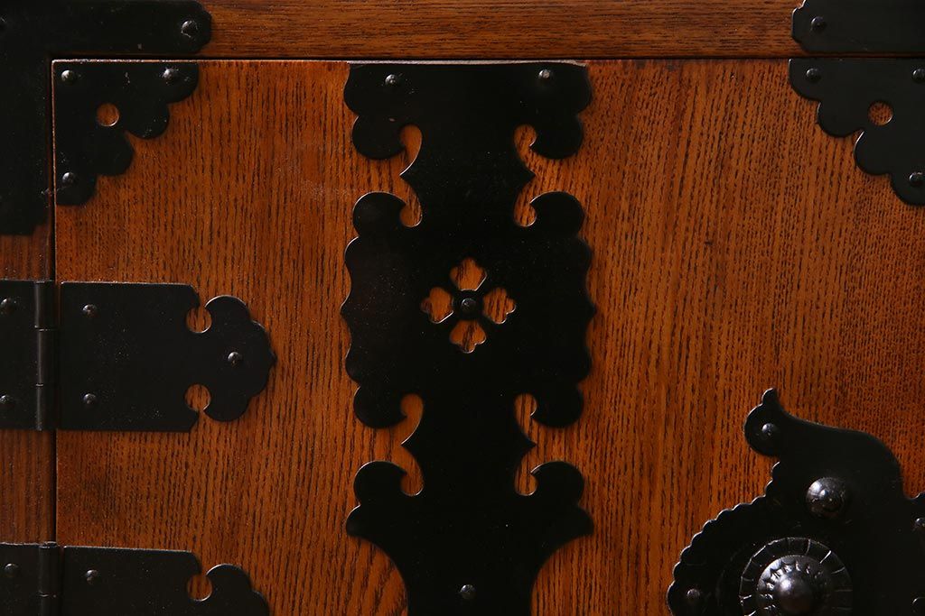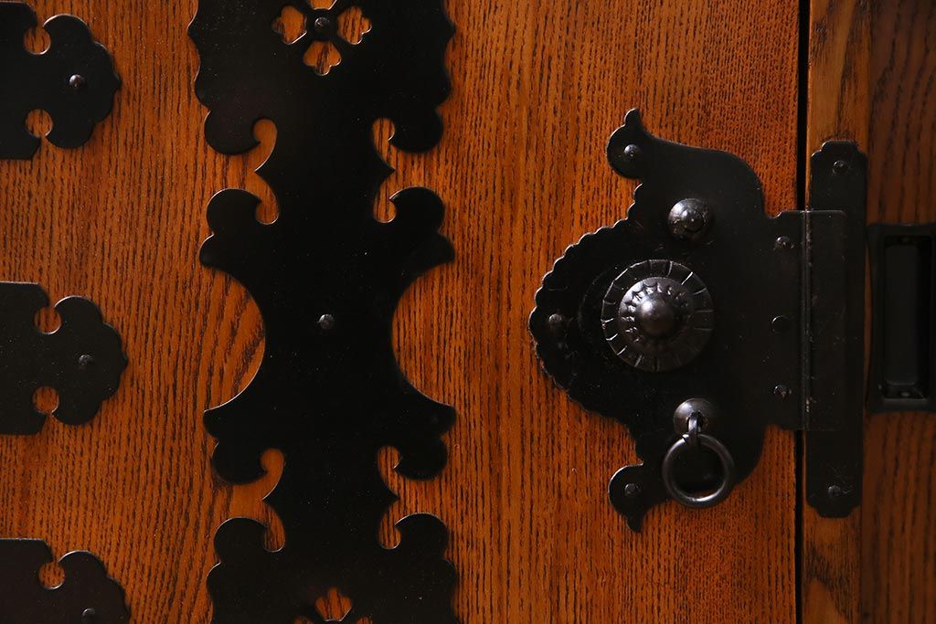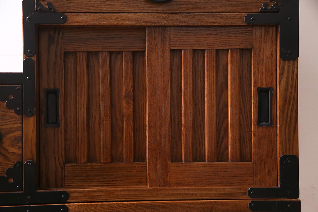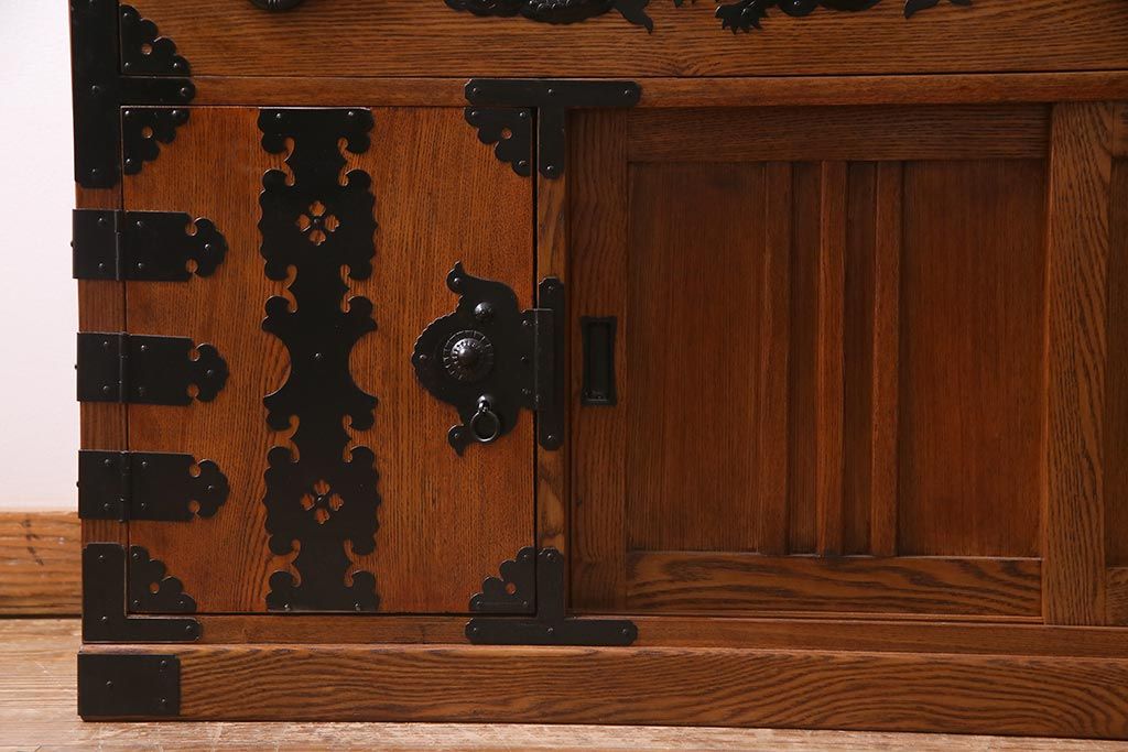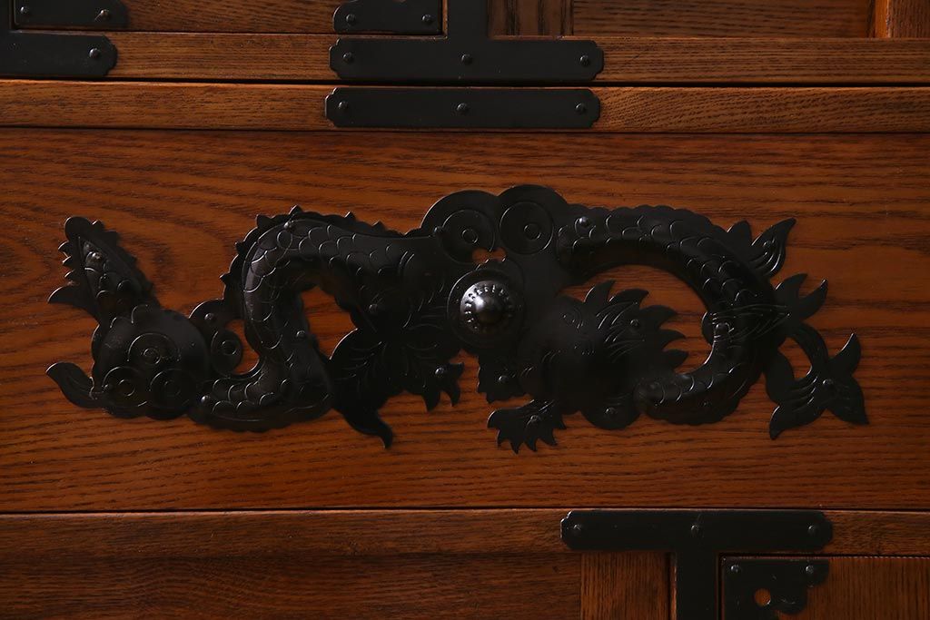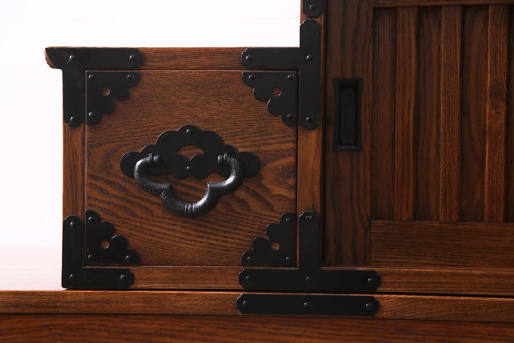 ラフジュ工房> 和箪笥> 階段箪笥 > 新古品 民芸家具 ニレ無垢材 雲竜金具 両面使い!ユニット型階段箪笥(和タンス)(R-038322)