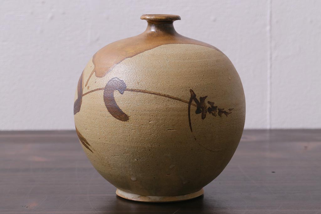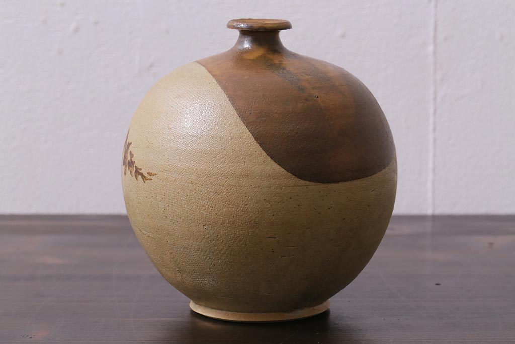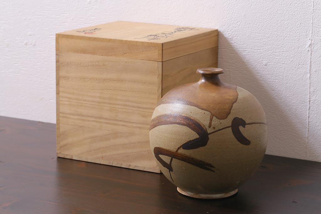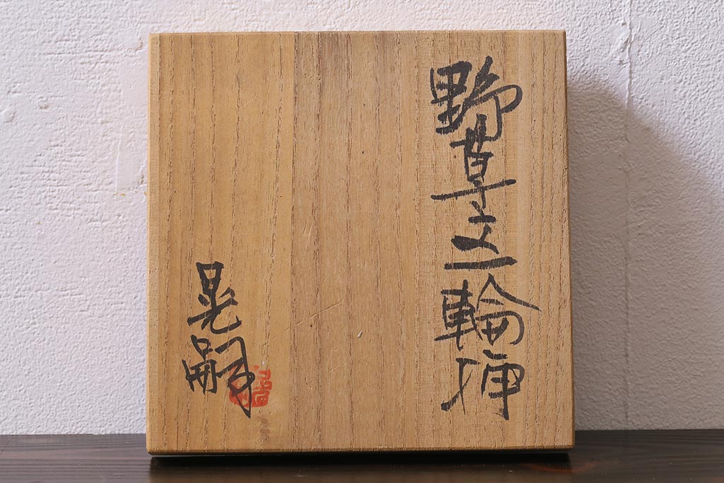 中古 笠間焼 中野晃嗣 野草文一輪挿し(花器、花瓶、共箱付き)(R-038052)です。