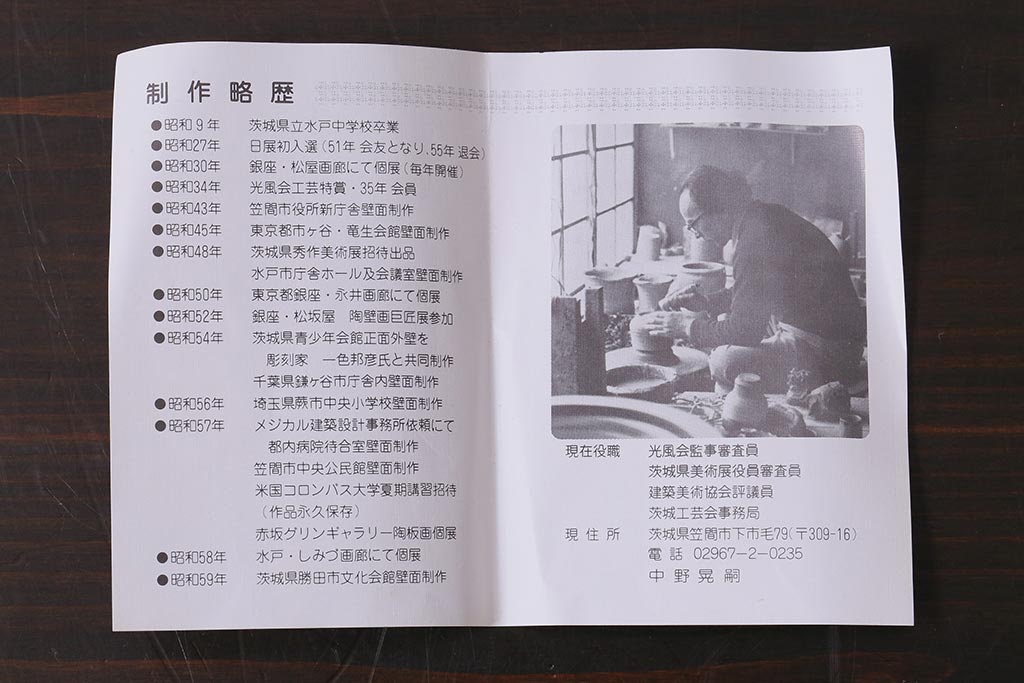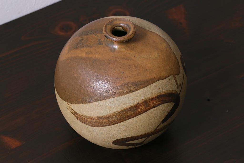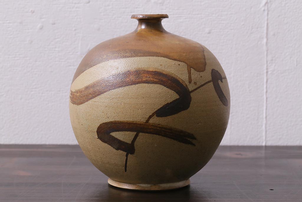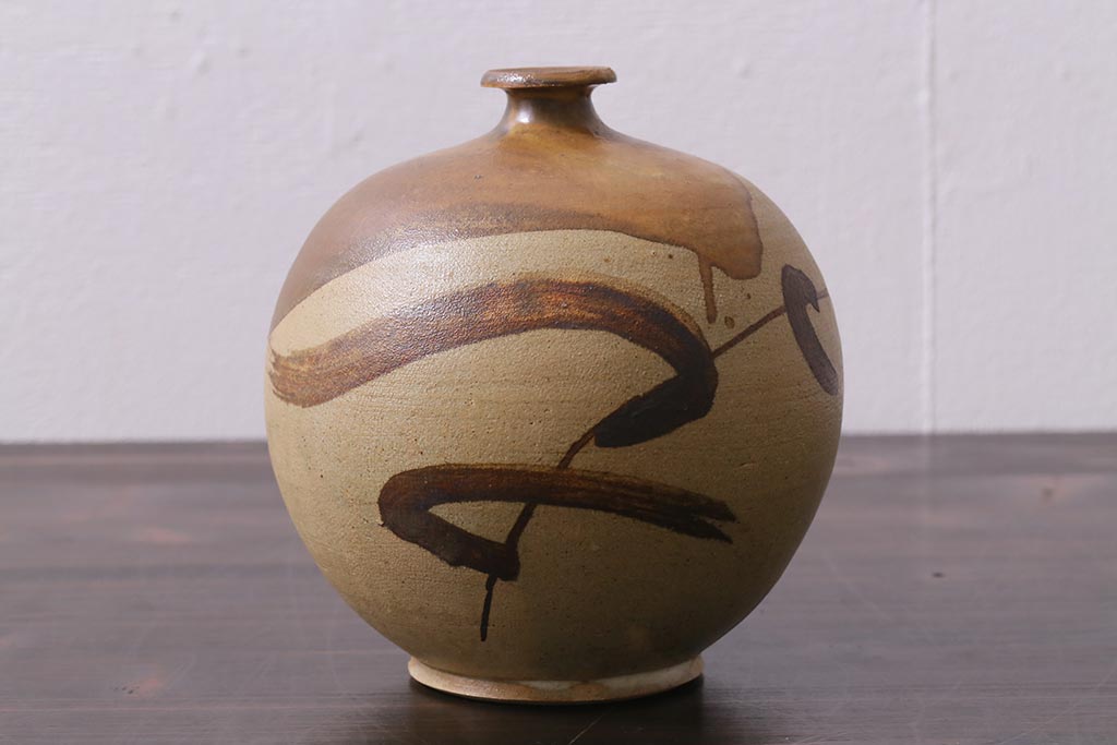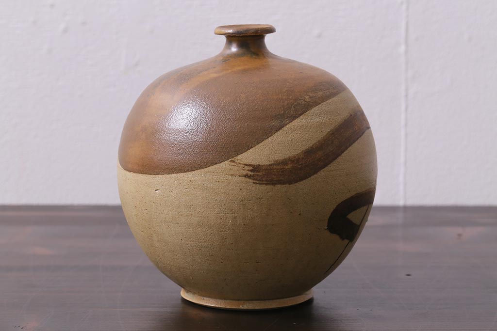 中古 笠間焼 中野晃嗣 野草文一輪挿し(花器、花瓶、共箱付き)(R-038052)です。