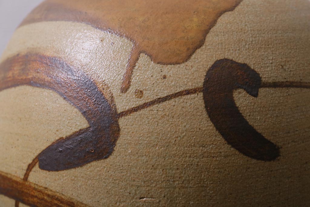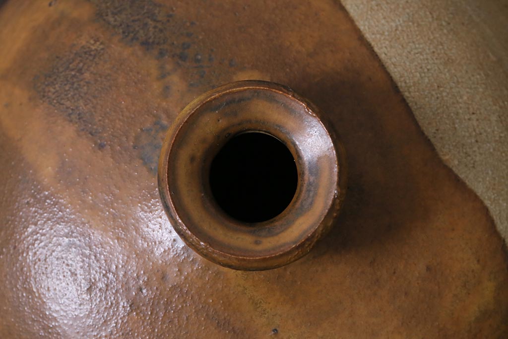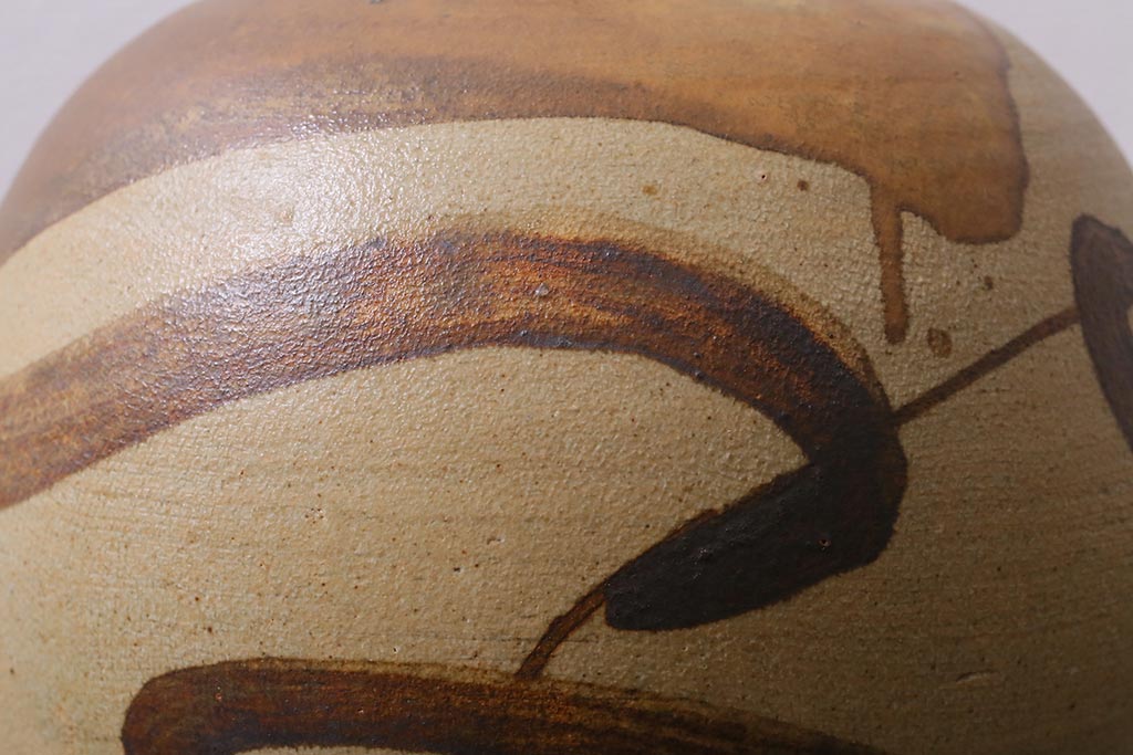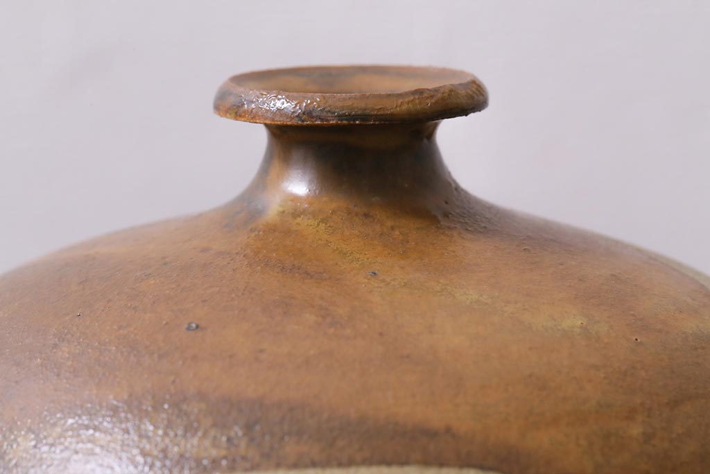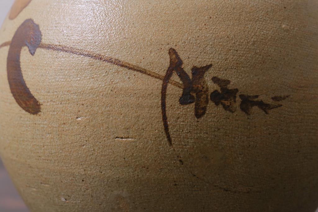 中古 笠間焼 中野晃嗣 野草文一輪挿し(花器、花瓶、共箱付き)(R-038052)
