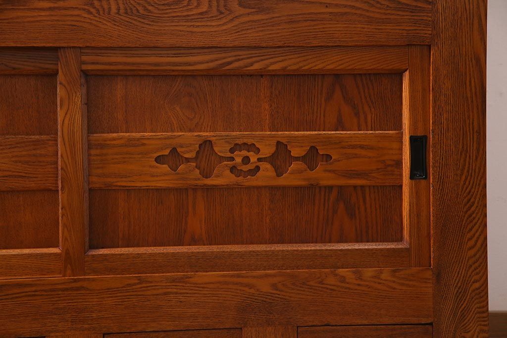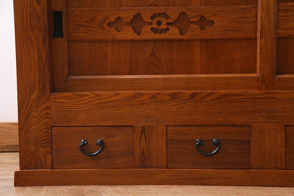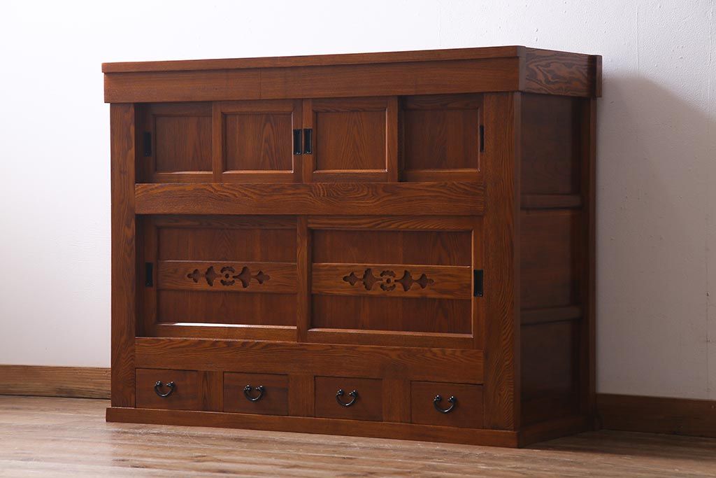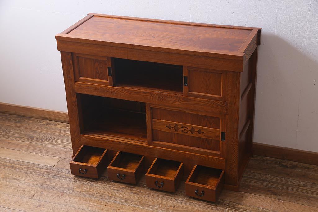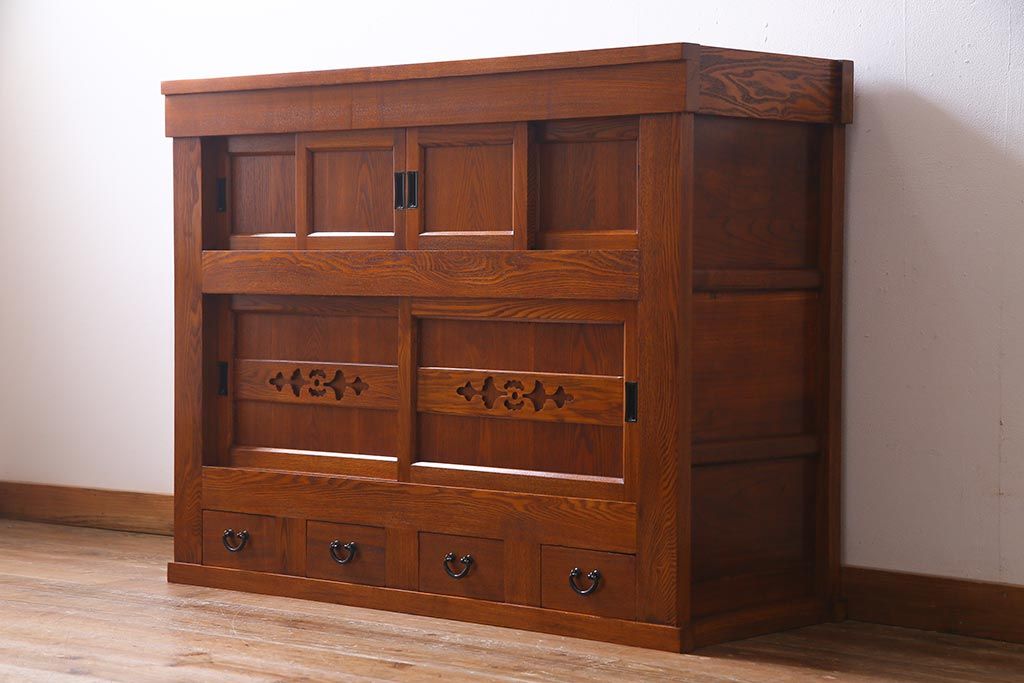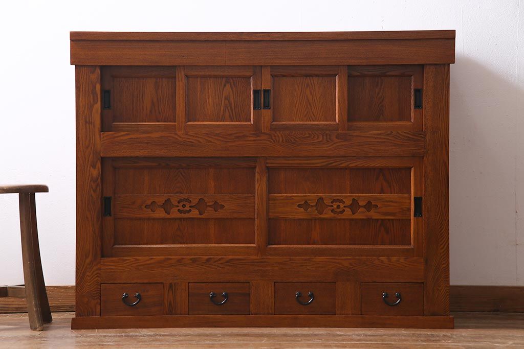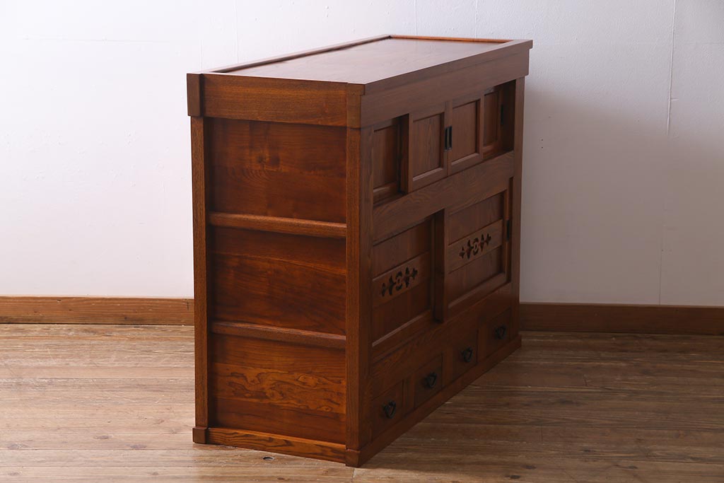 和箪笥 > 新古品 民芸家具 ニレ無垢材 上品な和の雰囲気を醸し出す水屋箪笥・上(サイドボード、戸棚)(R-038326)