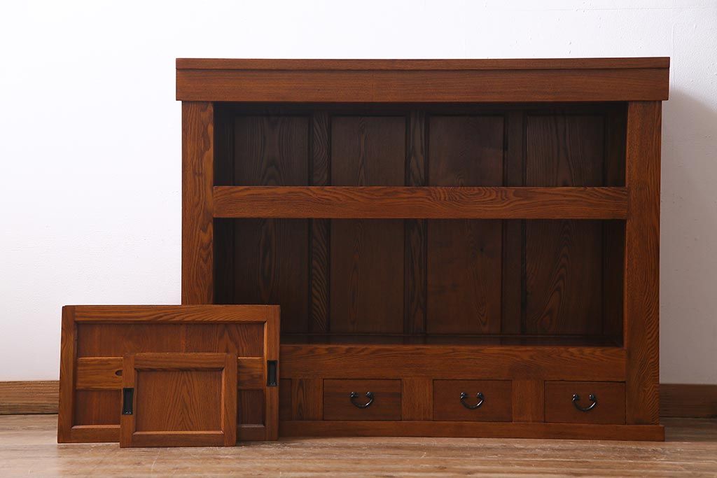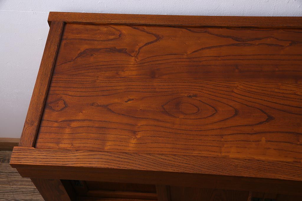 新古品 民芸家具 ニレ無垢材 上品な和の雰囲気を醸し出す水屋箪笥・上(サイドボード、戸棚)(R-038326)