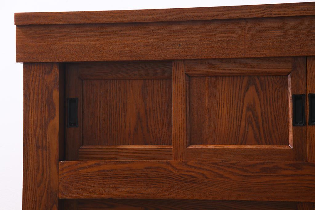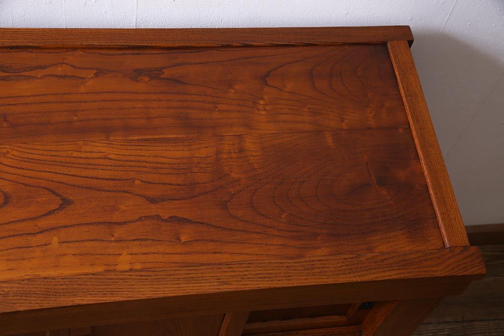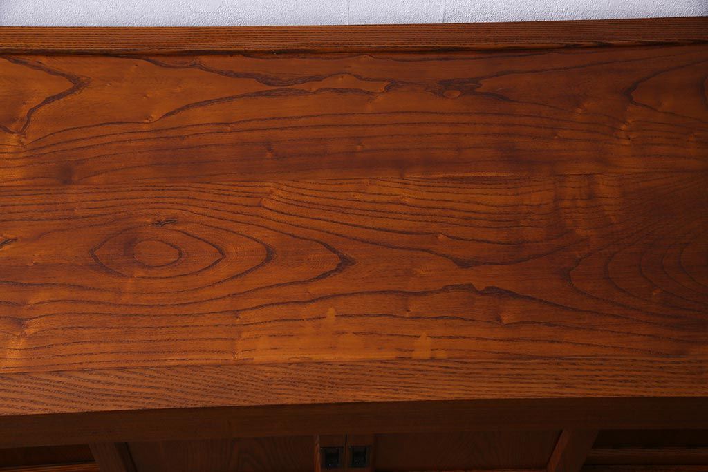 民芸家具 > 新古品 民芸家具 ニレ無垢材 上品な和の雰囲気を醸し出す水屋箪笥・上(サイドボード、戸棚)(R-038326)