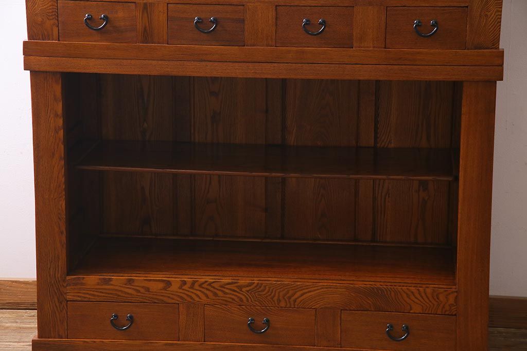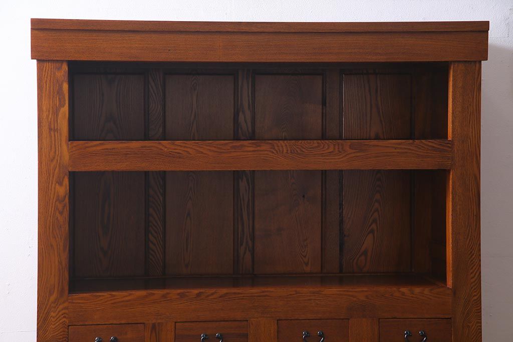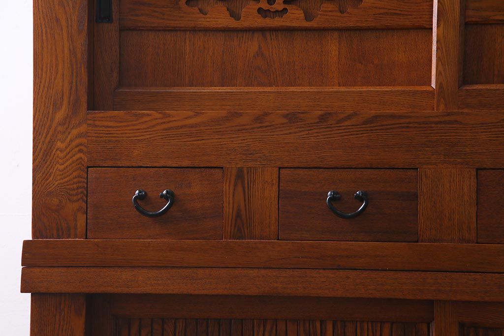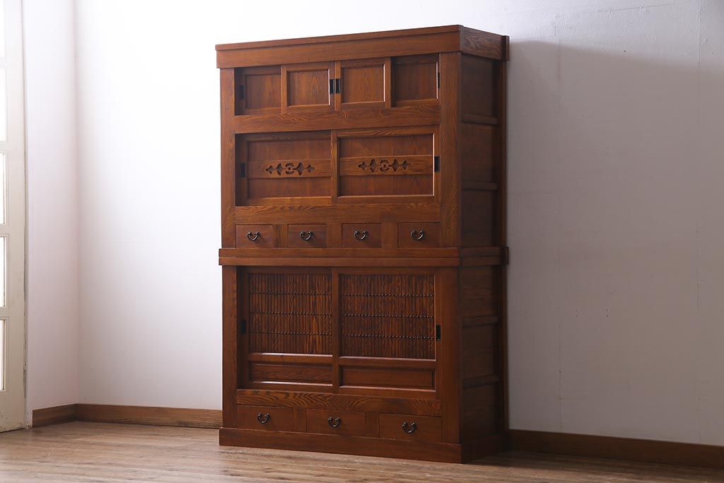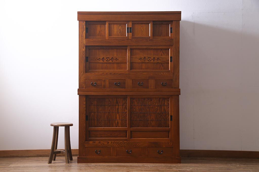 新古品 民芸家具 ニレ無垢材 上品な和の雰囲気を醸し出す重ね水屋箪笥(収納棚、戸棚)(R-038328)