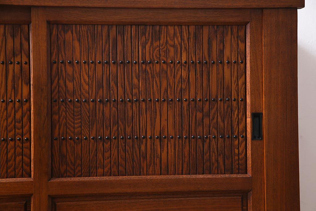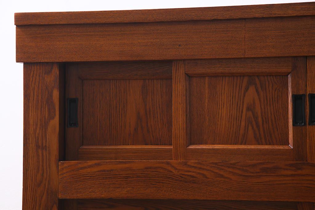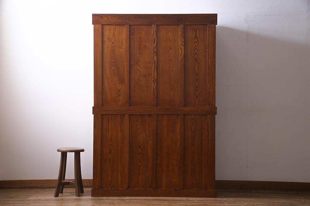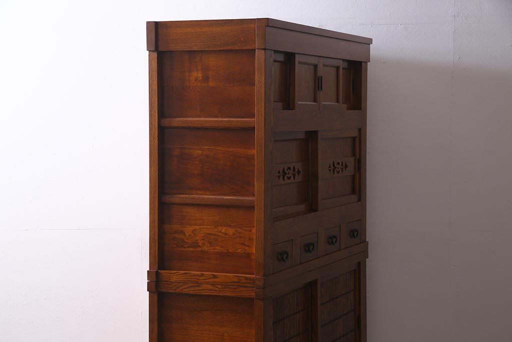 民芸家具 > 新古品 民芸家具 ニレ無垢材 上品な和の雰囲気を醸し出す重ね水屋箪笥(収納棚、戸棚)(R-038328)