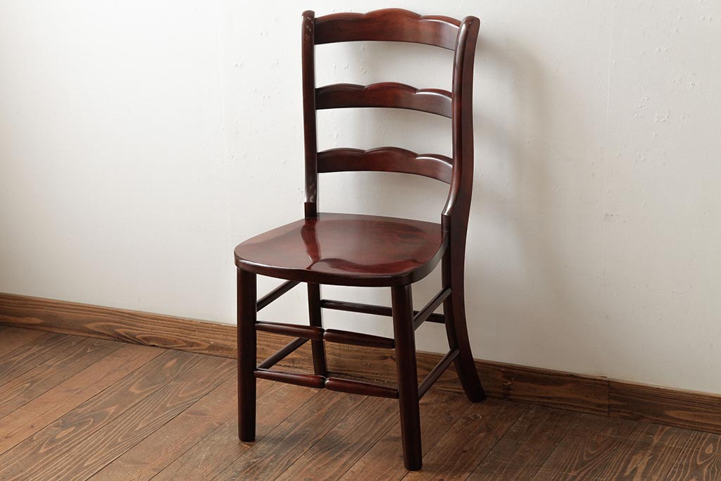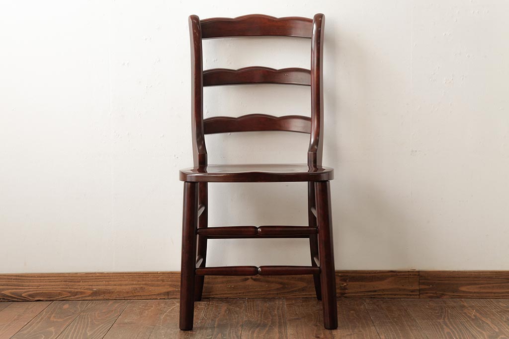 民芸家具 > 中古 日向民芸 美しい木肌が上品な印象与えるダイニングチェア(ラダーバックチェア、板座チェア、椅子)(R-038362)