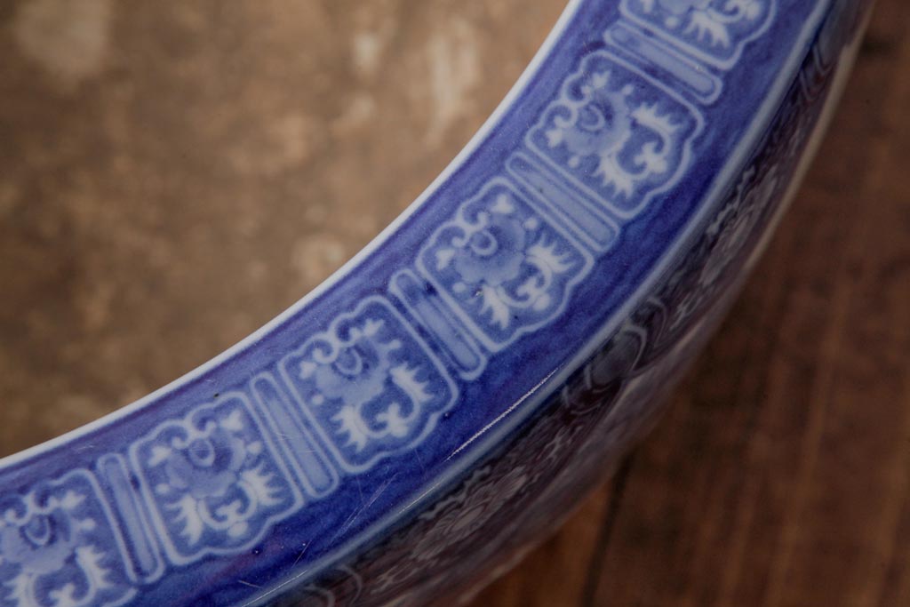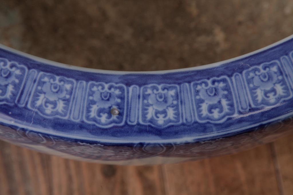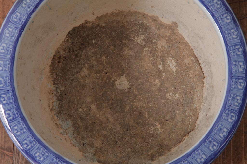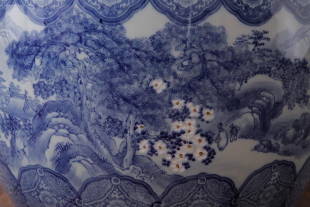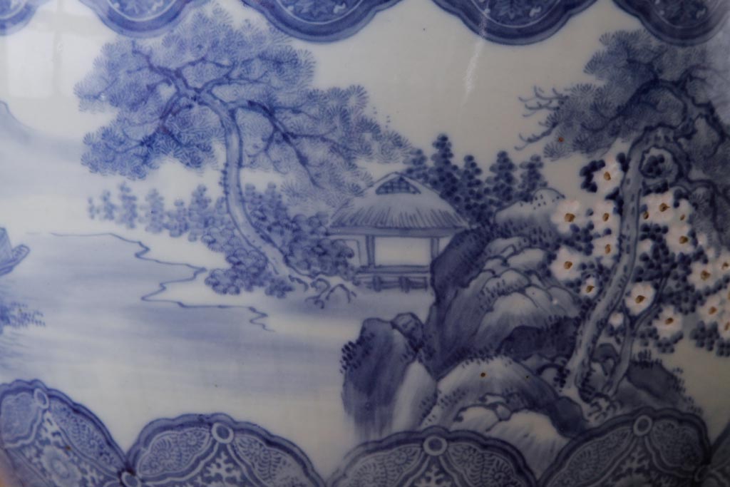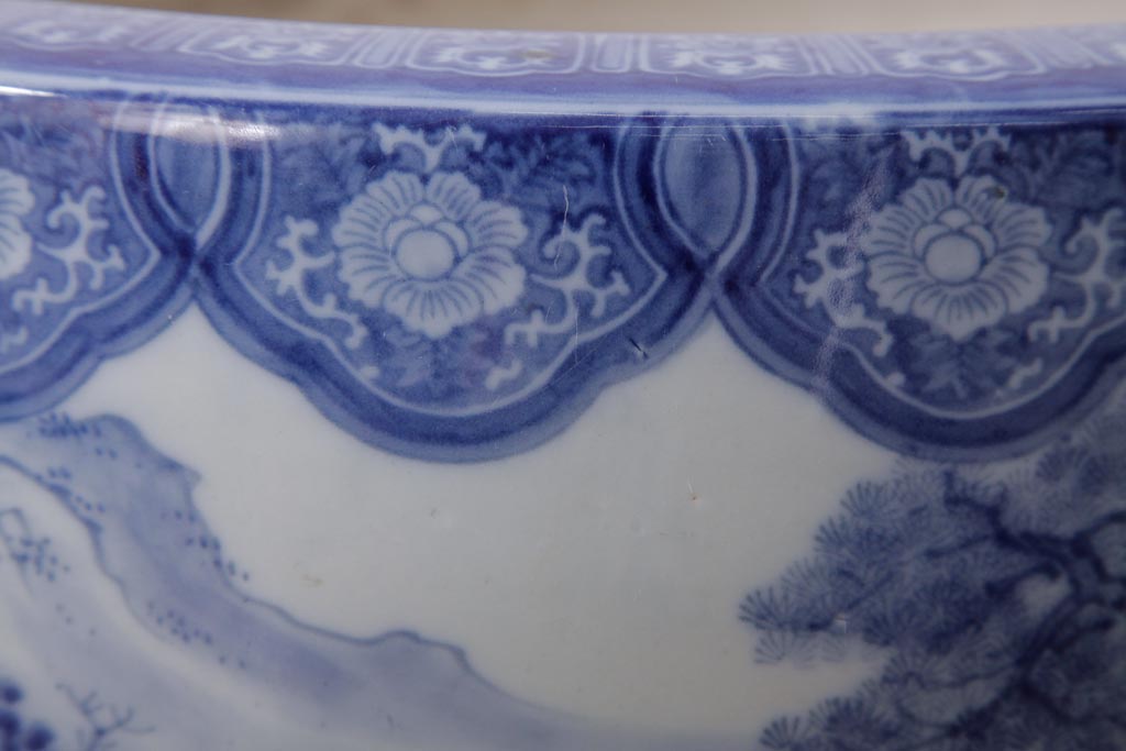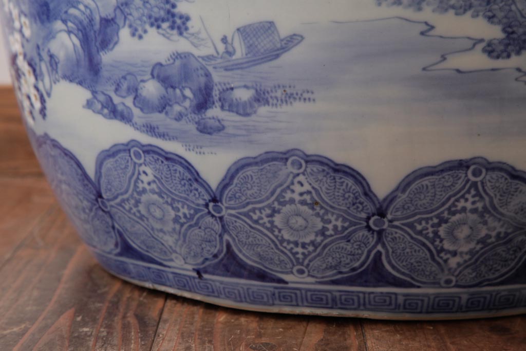 火鉢> 瀬戸火鉢 > アンティーク雑貨 昭和初期 山水図 繊細で優しげな風景画の瀬戸火鉢(R-038406)