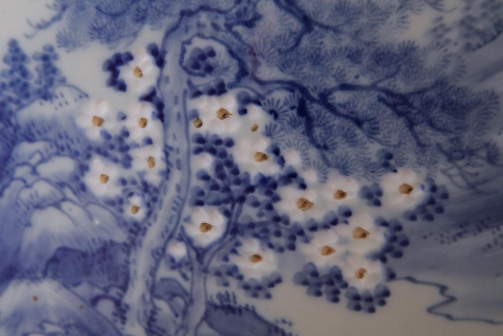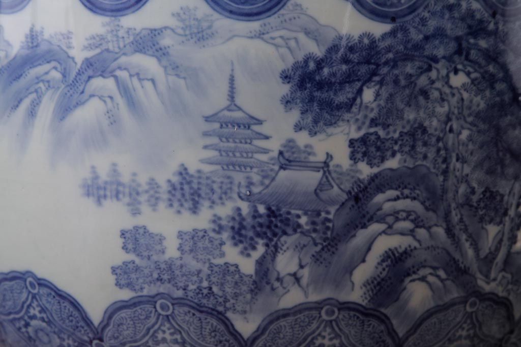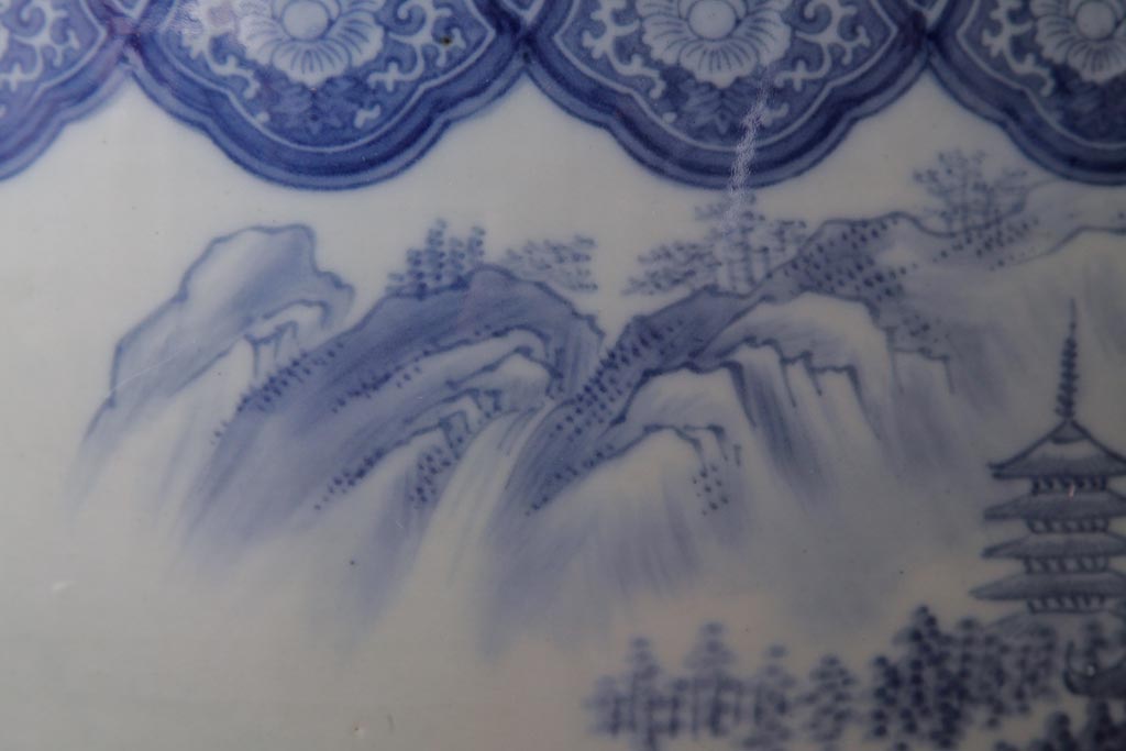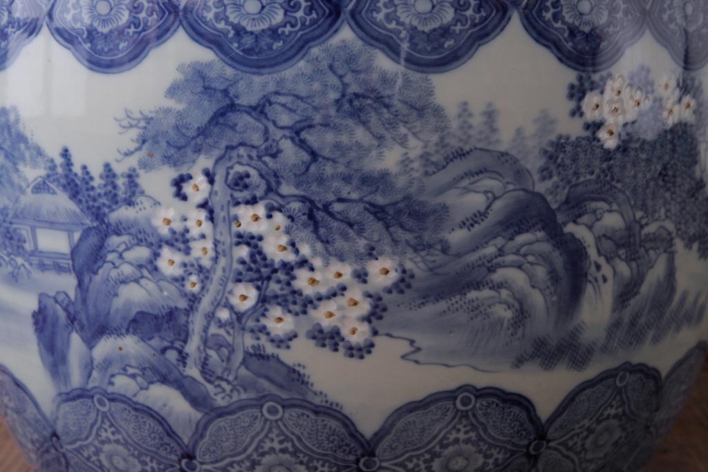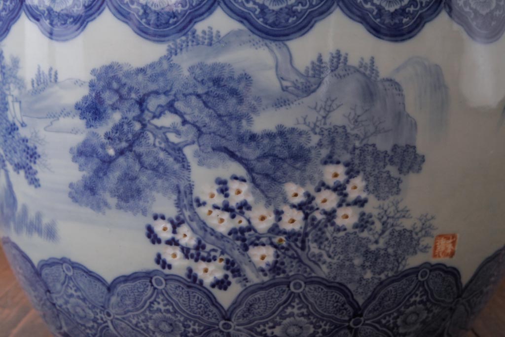 アンティーク雑貨 昭和初期 山水図 繊細で優しげな風景画の瀬戸火鉢(R-038406)