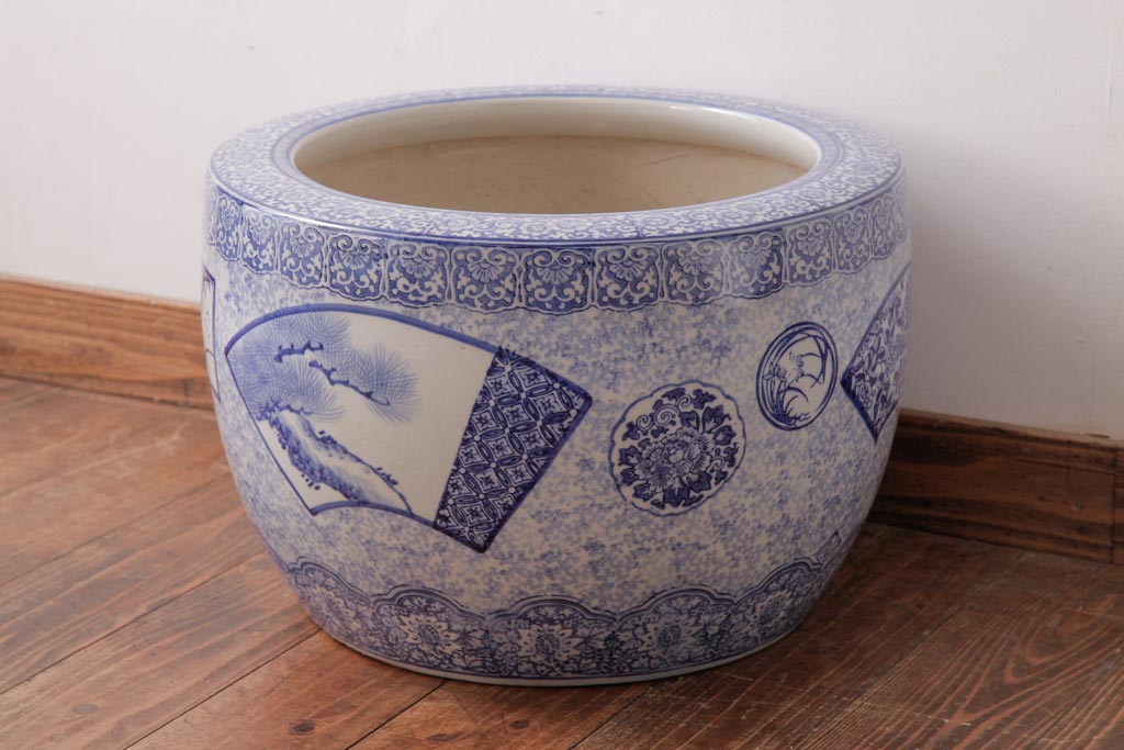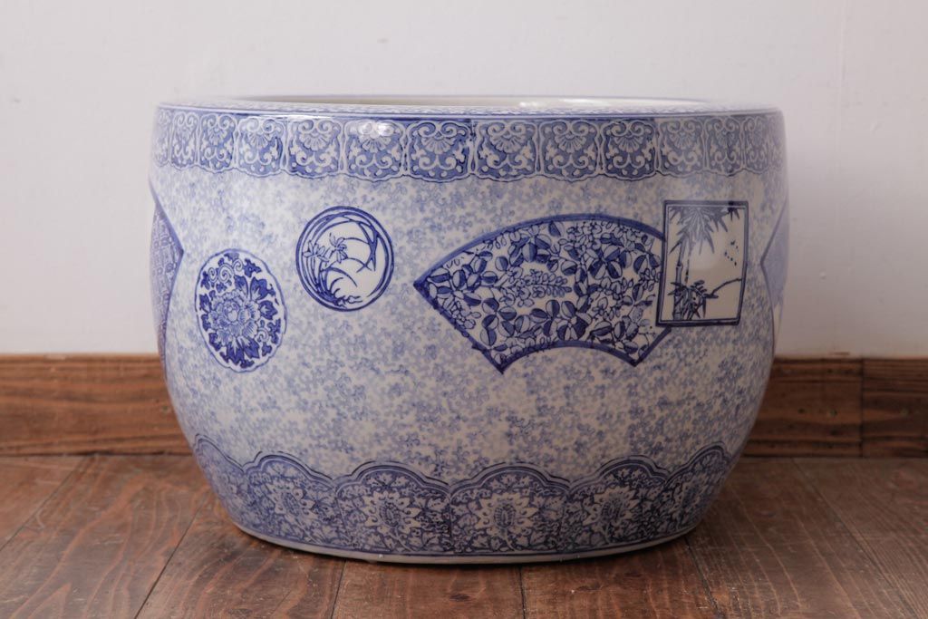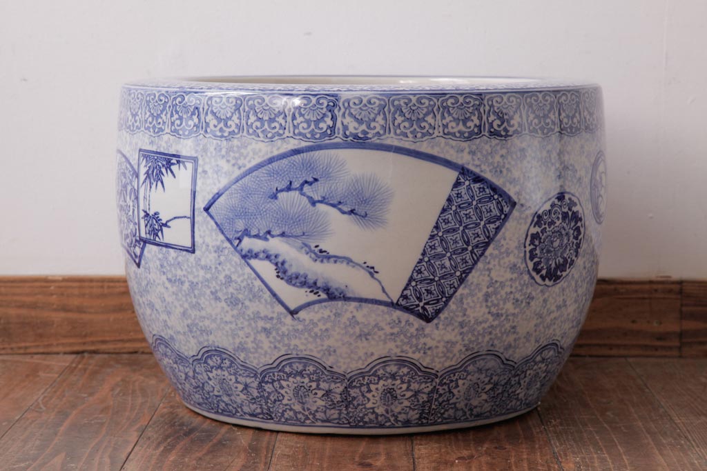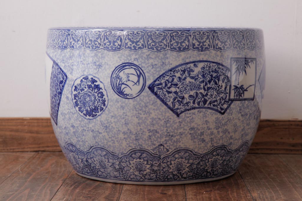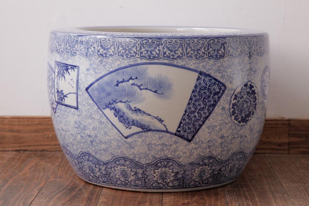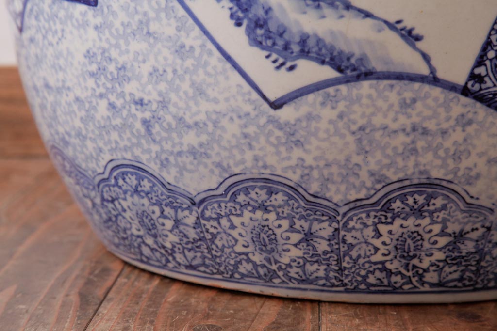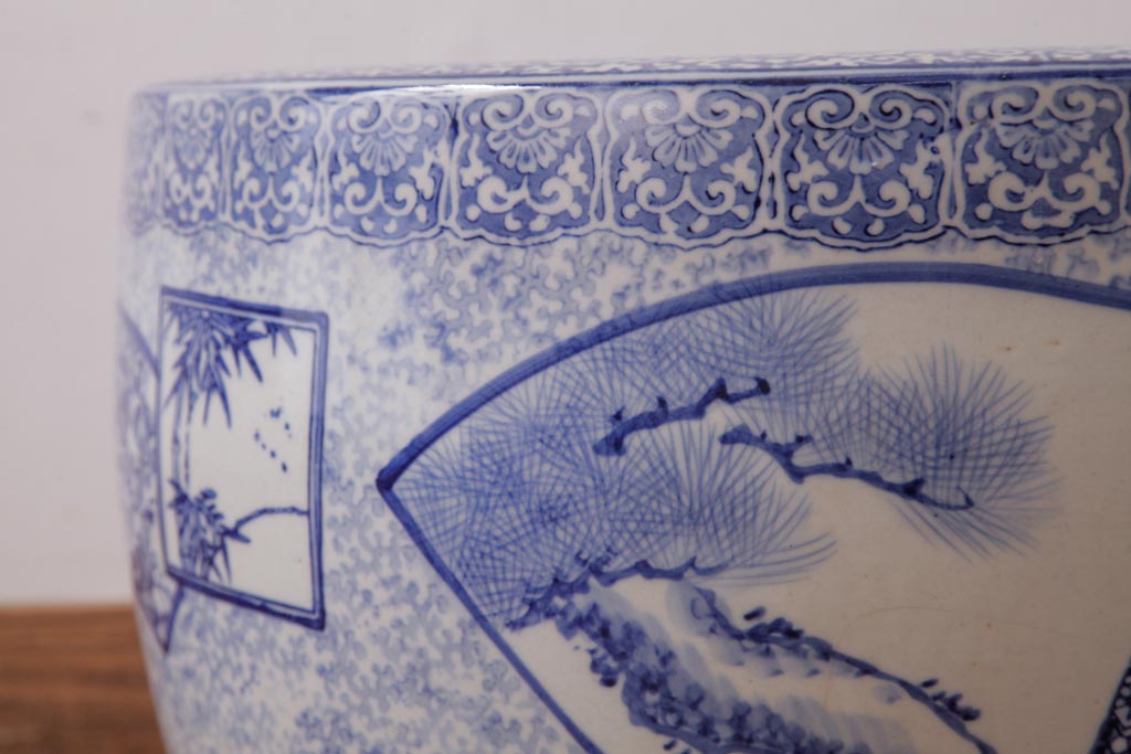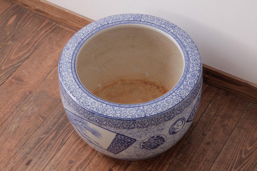 アンティーク雑貨 昭和初期 窓絵 細かな絵柄が趣深い瀬戸火鉢(R-038407)